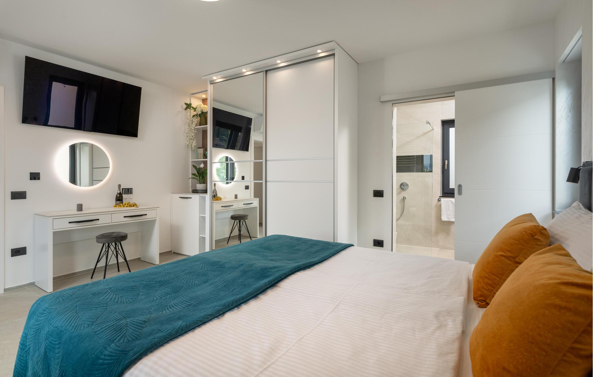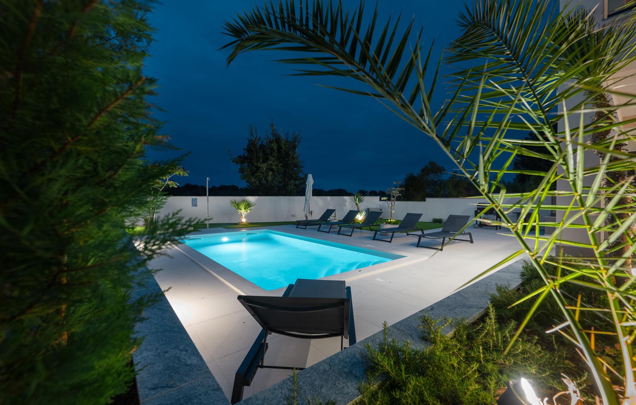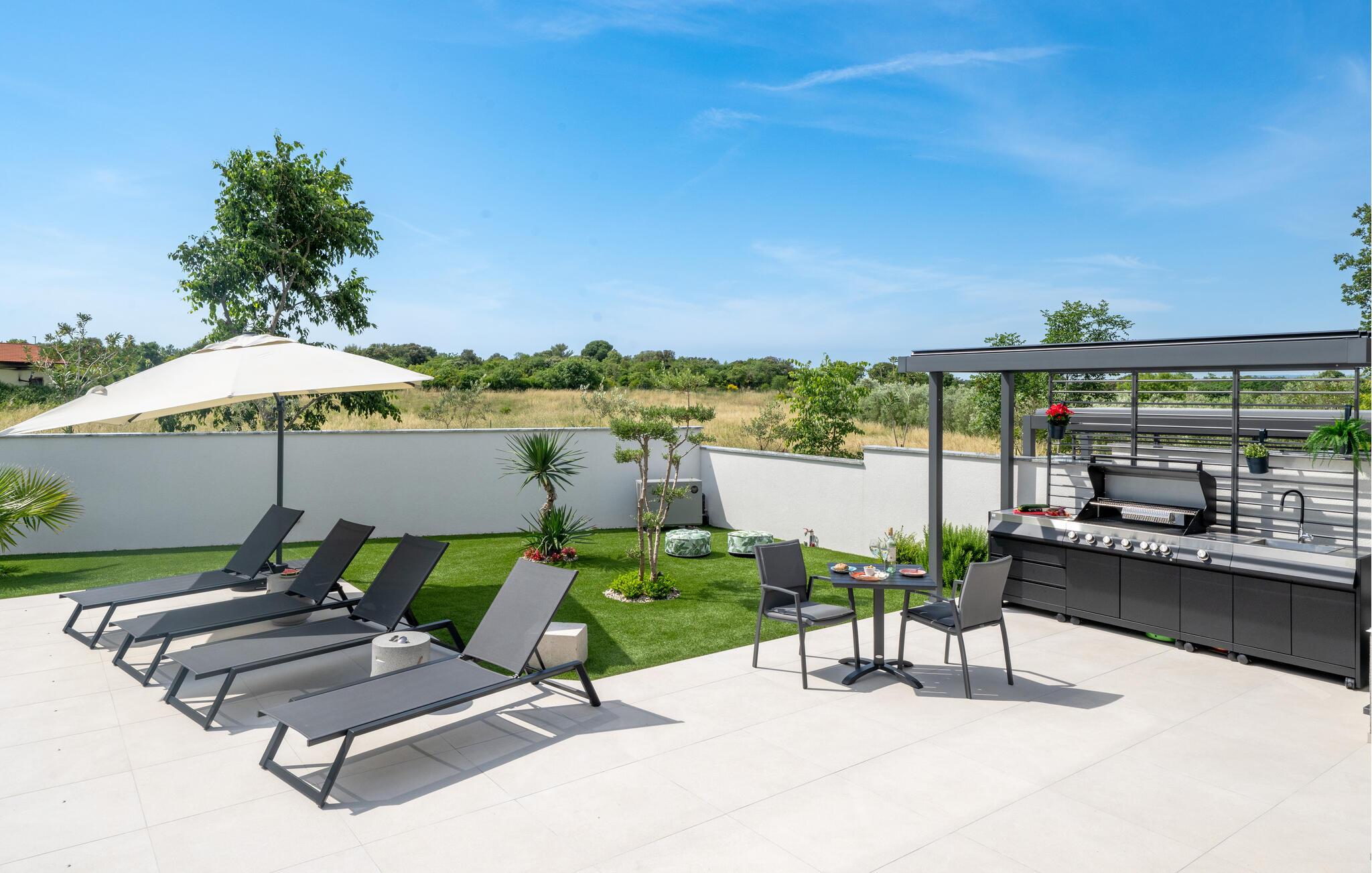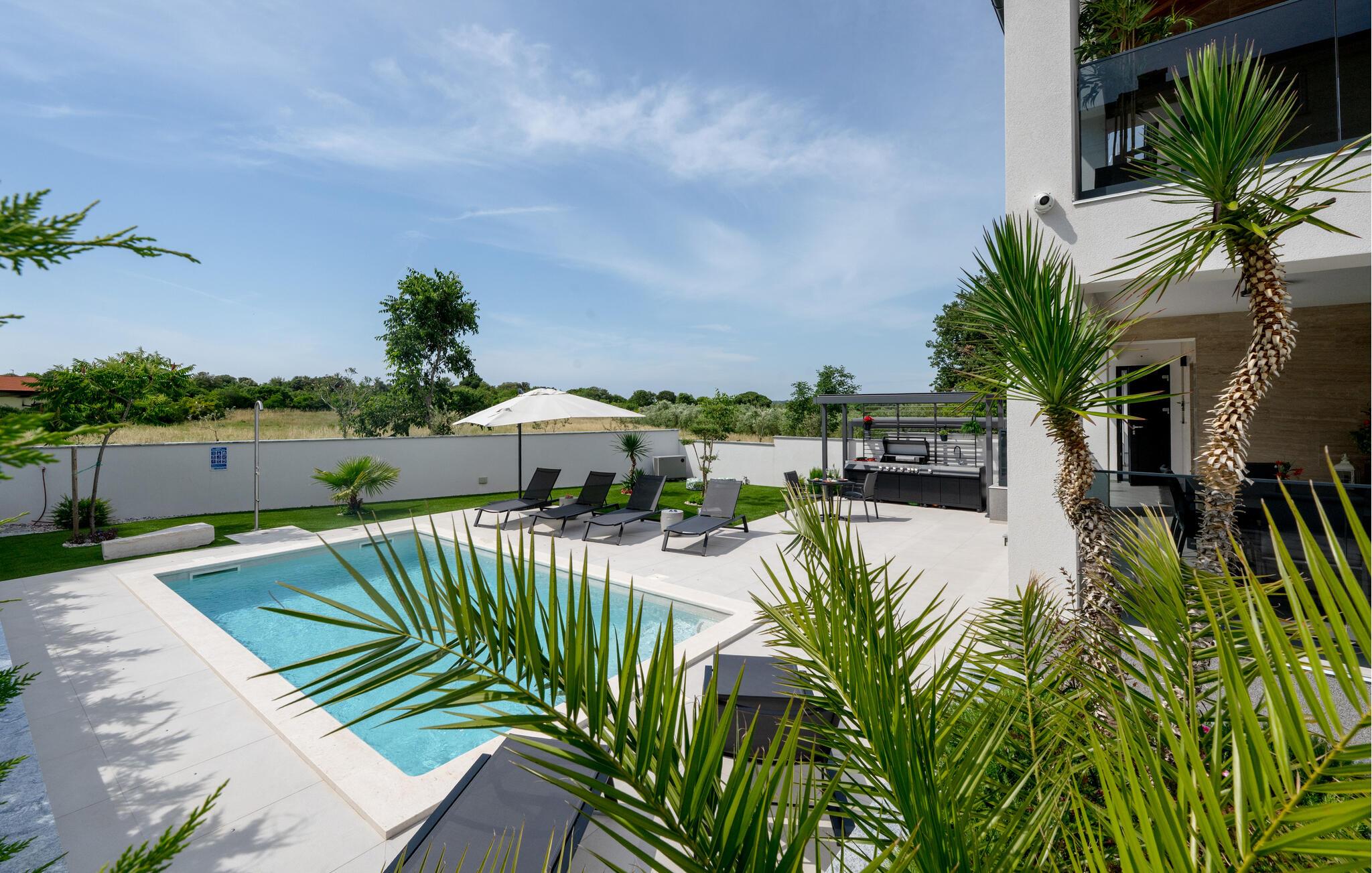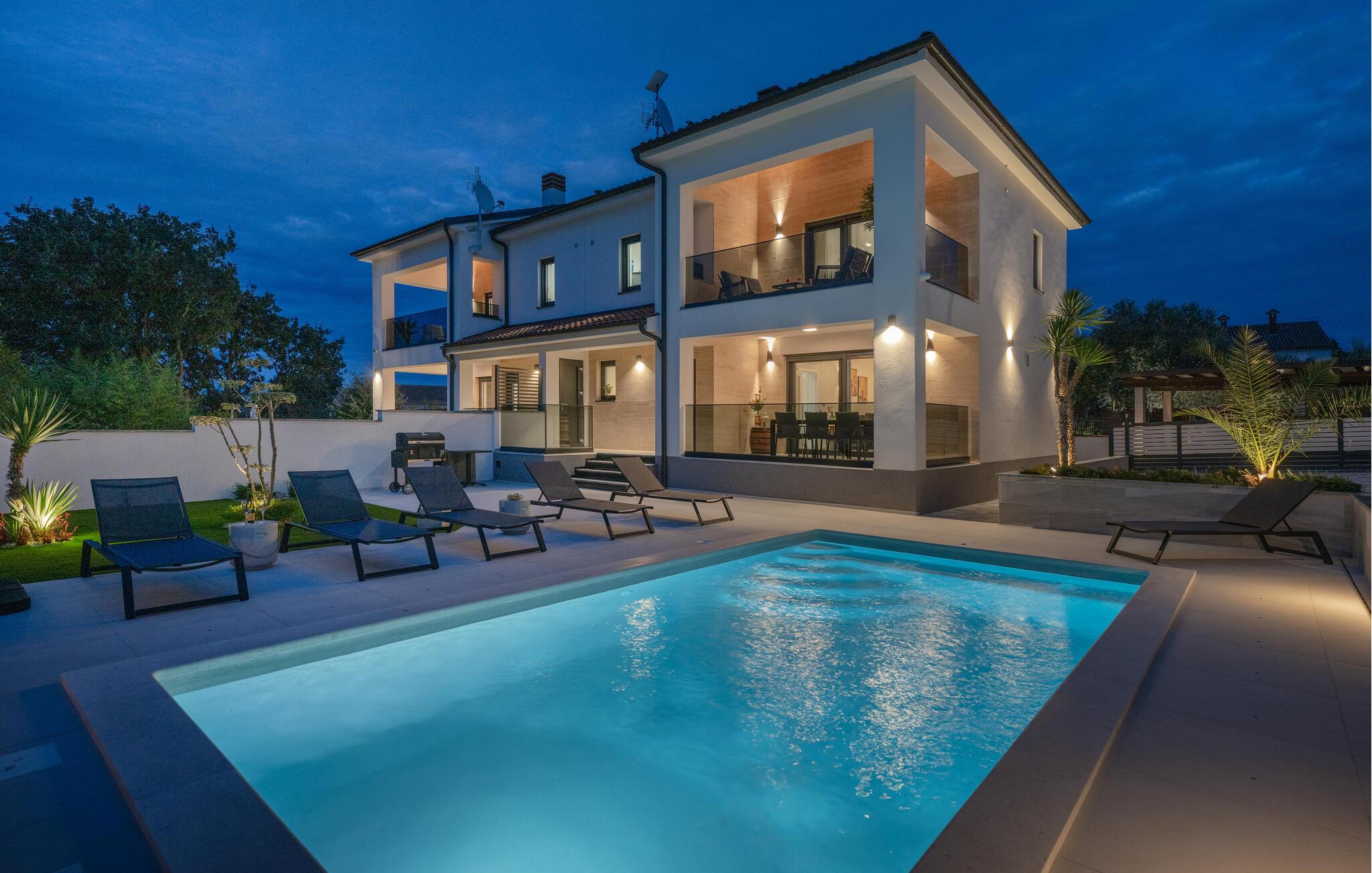Dette luksuriøse huset i Stinjan, på kysten av Istria, tilbyr deg og dine kjære en herlig oase hvor dere kan slappe av. Start dagen på den romslige terrassen, hvor et spisebord inviterer deg til å nyte en koselig frokost utendørs. Nyt utsikten over det innbydende bassengområdet og de fredelige omgivelsene mens du puster inn den friske morgenluften. Inne venter en elegant og åpen planløsning på deg. Len deg tilbake i den komfortable sofaen og tilbring avslappende kvelder med favorittfilmene dine. Den stilfulle spiseplassen skaper en hyggelig atmosfære for felles måltider, og det moderne, velutstyrte kjøkkenet gir deg mulighet til å utfolde deg fritt i matlagingen.