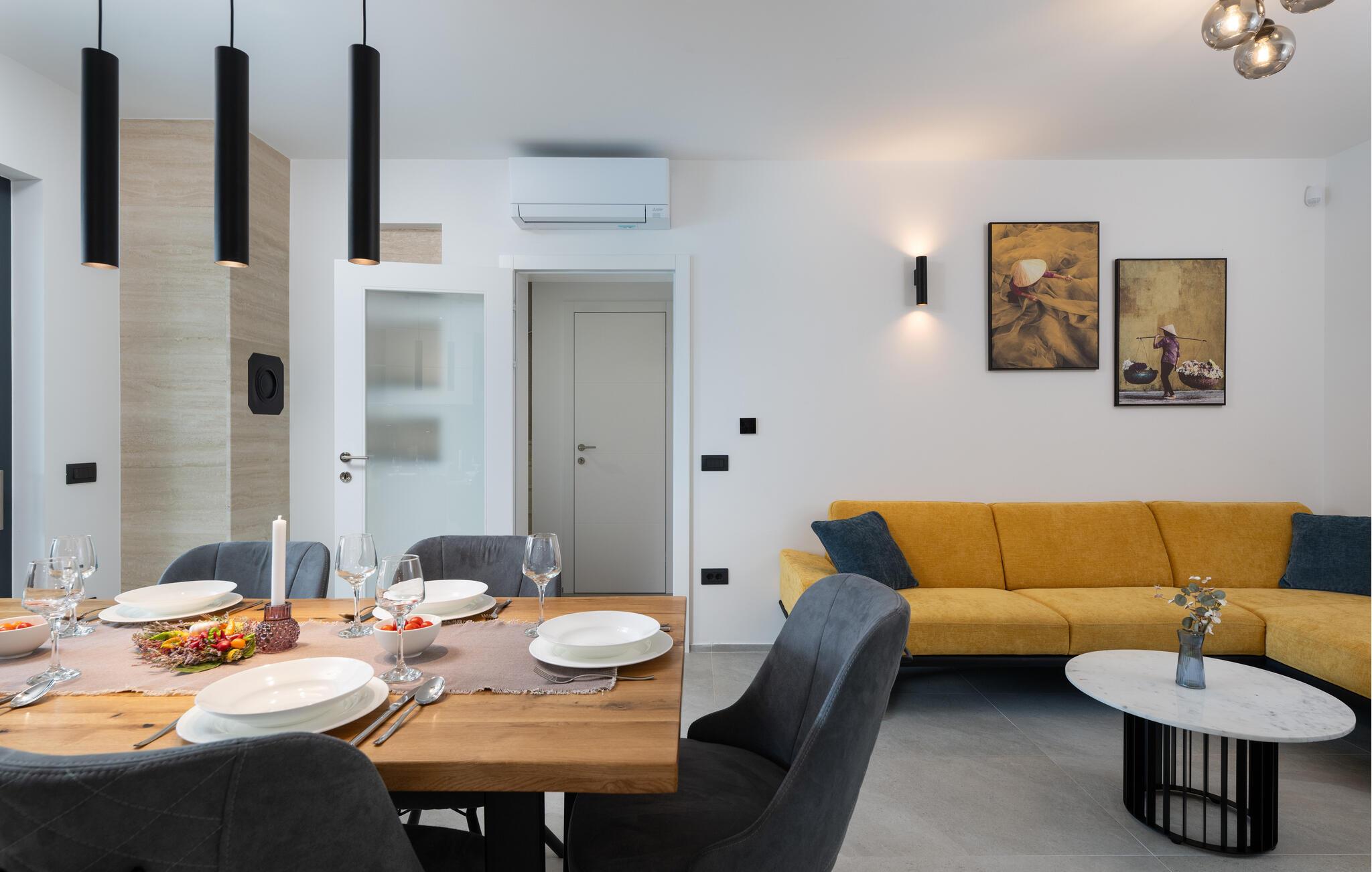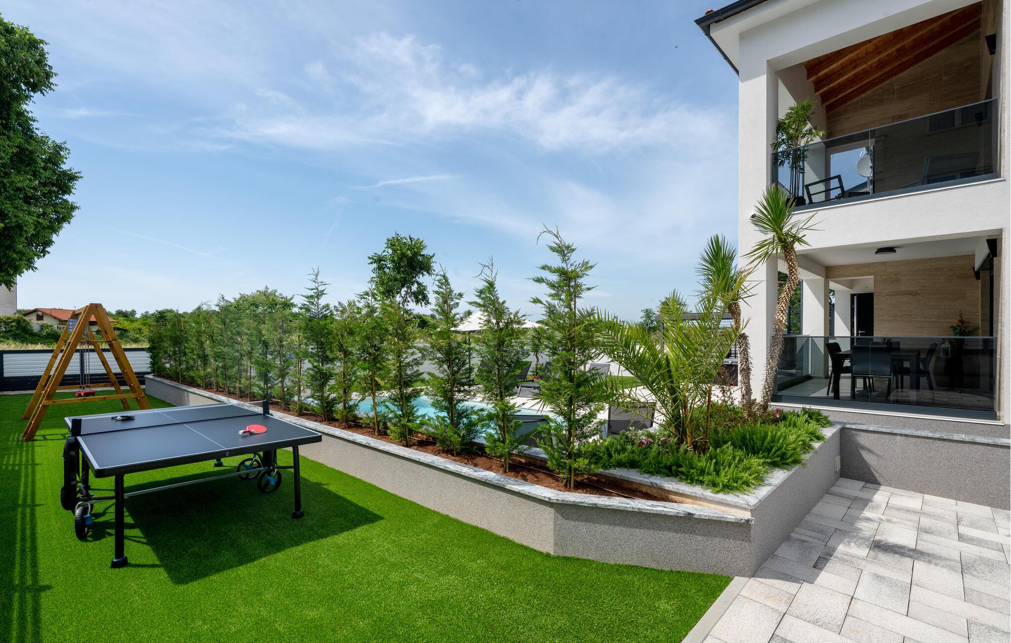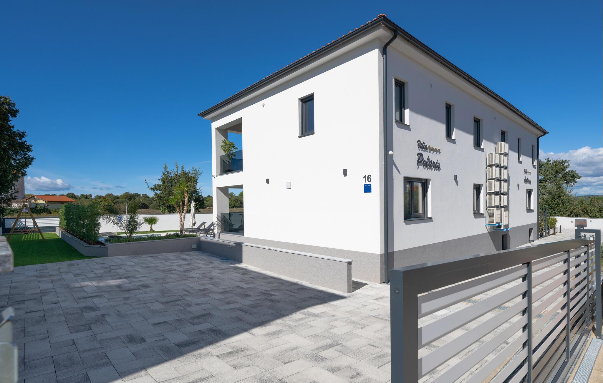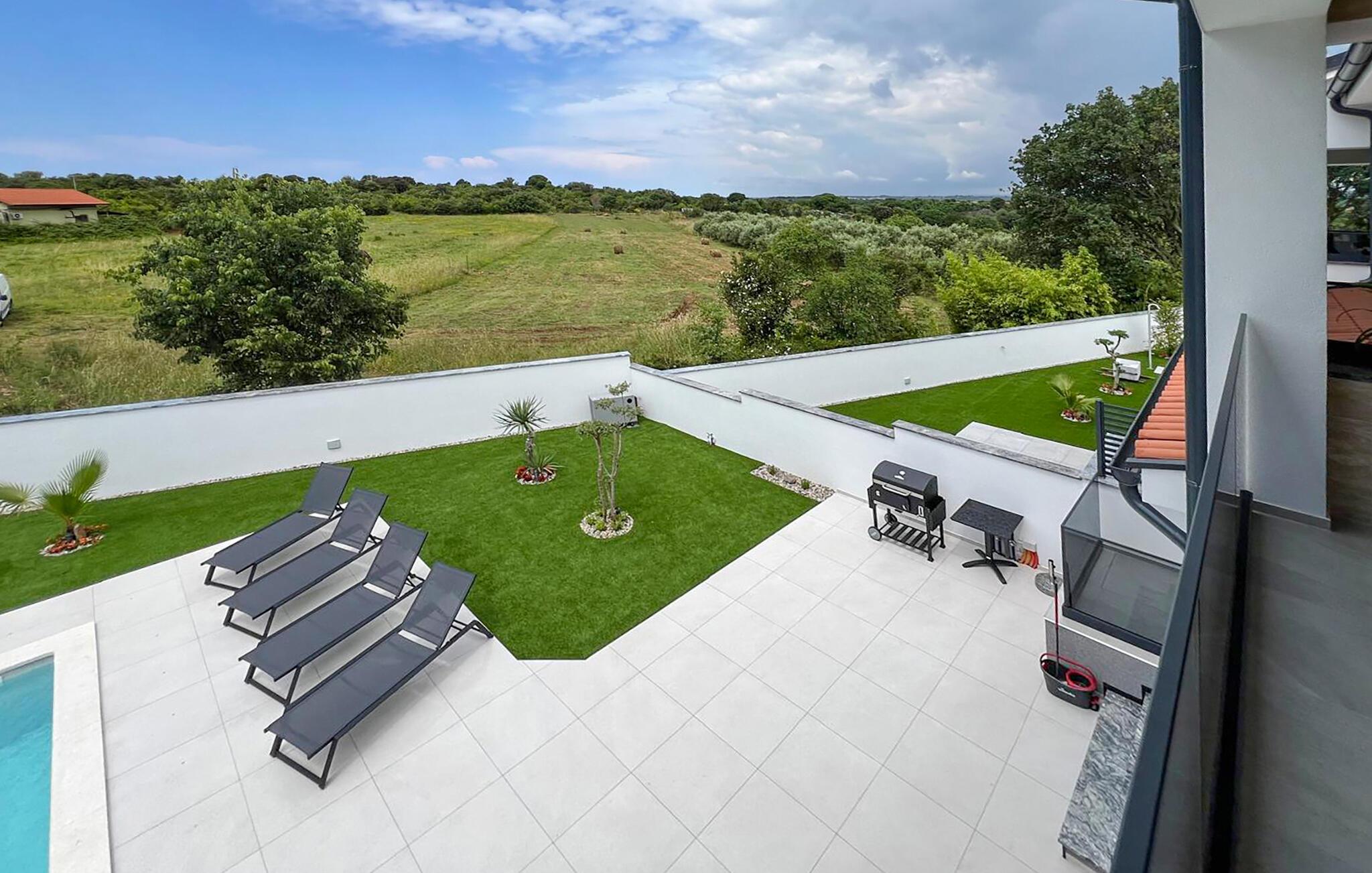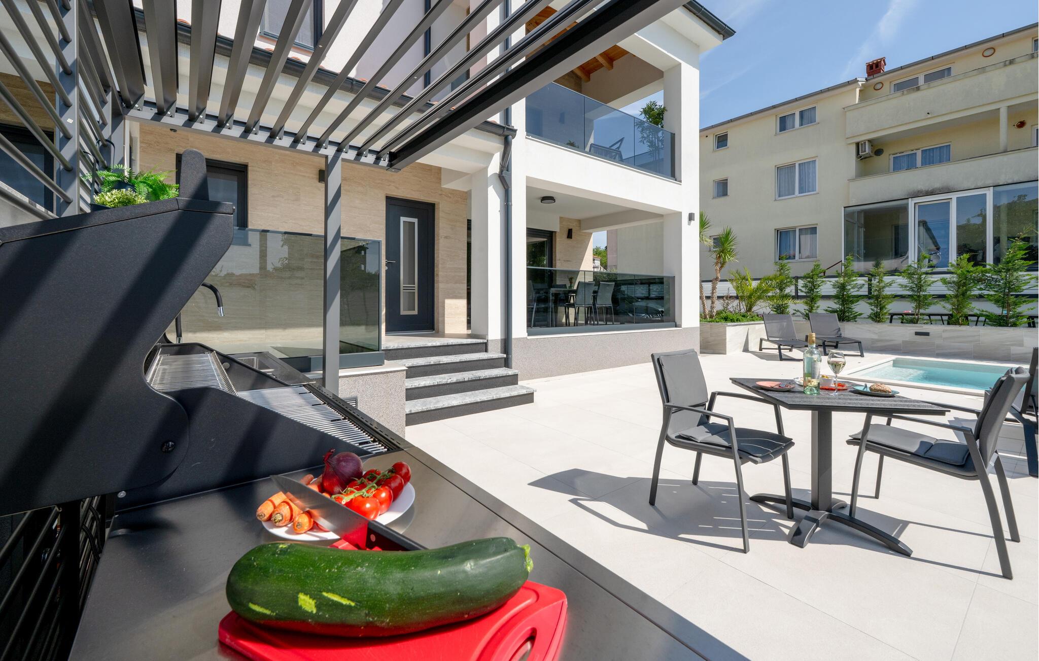 Dette luksuriøse huset i Stinjan, på kysten av Istria, tilbyr deg og dine kjære en herlig oase hvor dere kan slappe av. Start dagen på den romslige terrassen, hvor et spisebord inviterer deg til å nyte en koselig frokost utendørs. Nyt utsikten over det innbydende bassengområdet og de fredelige omgivelsene mens du puster inn den friske morgenluften. Inne venter en elegant og åpen planløsning på deg. Len deg tilbake i den komfortable sofaen og tilbring avslappende kvelder med favorittfilmene dine. Den stilfulle spiseplassen skaper en hyggelig atmosfære for felles måltider, og det moderne, velutstyrte kjøkkenet gir deg mulighet til å utfolde deg fritt i matlagingen.