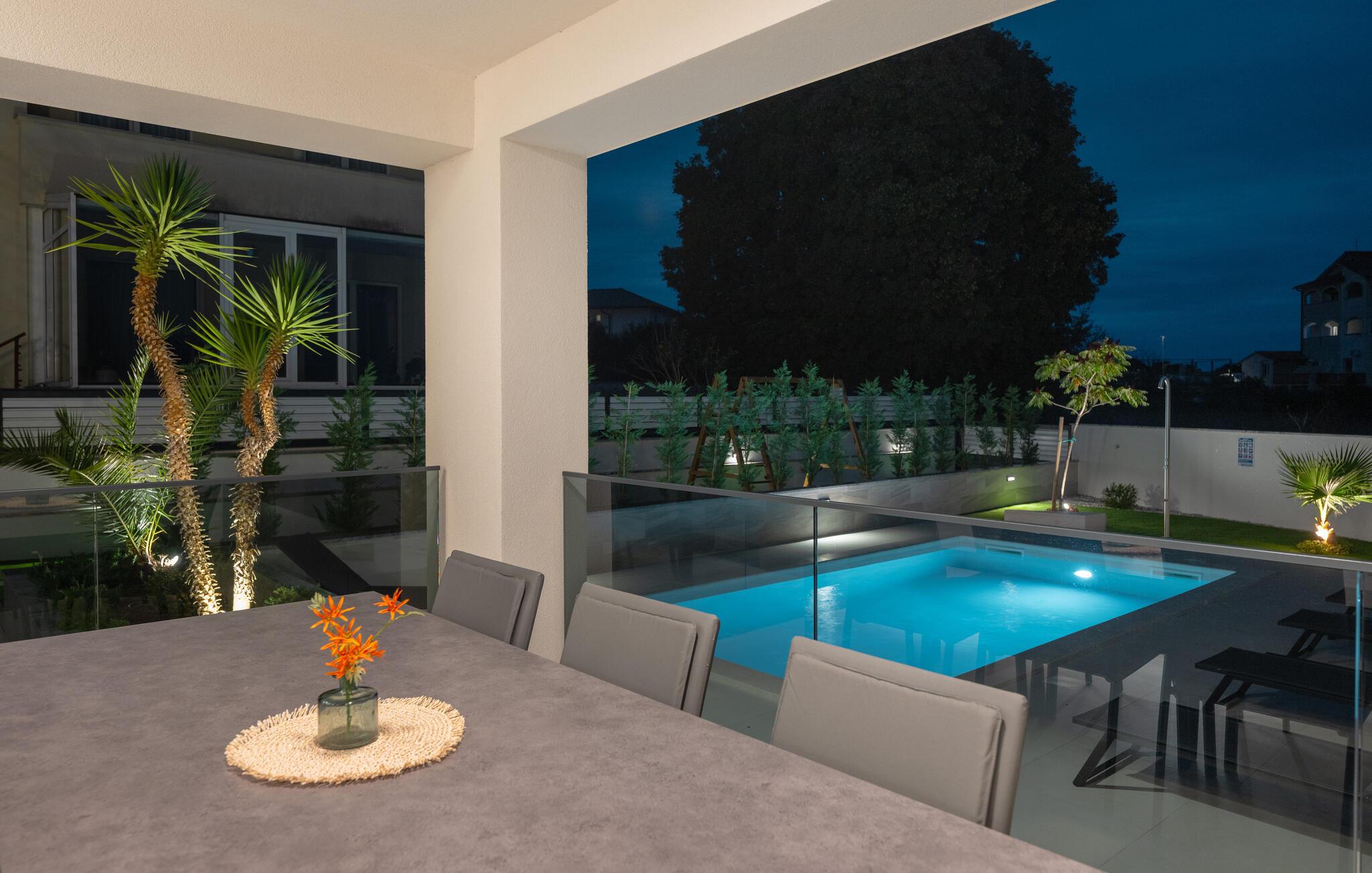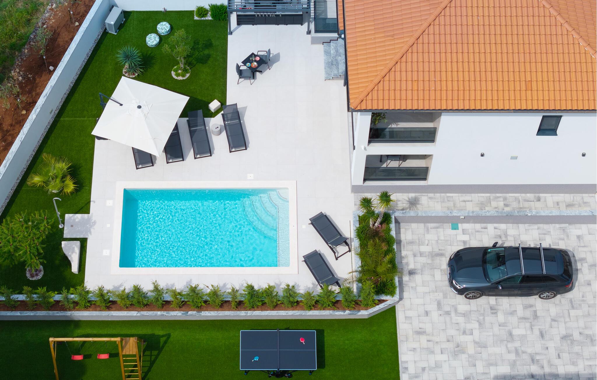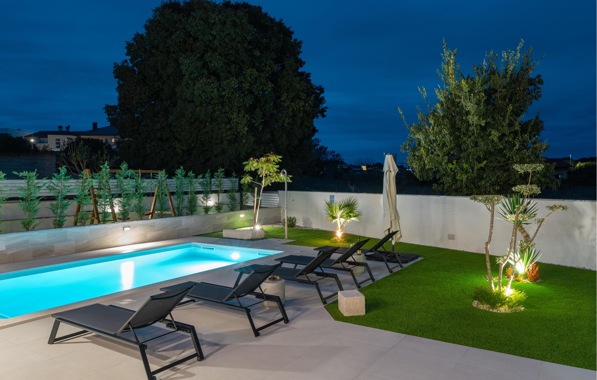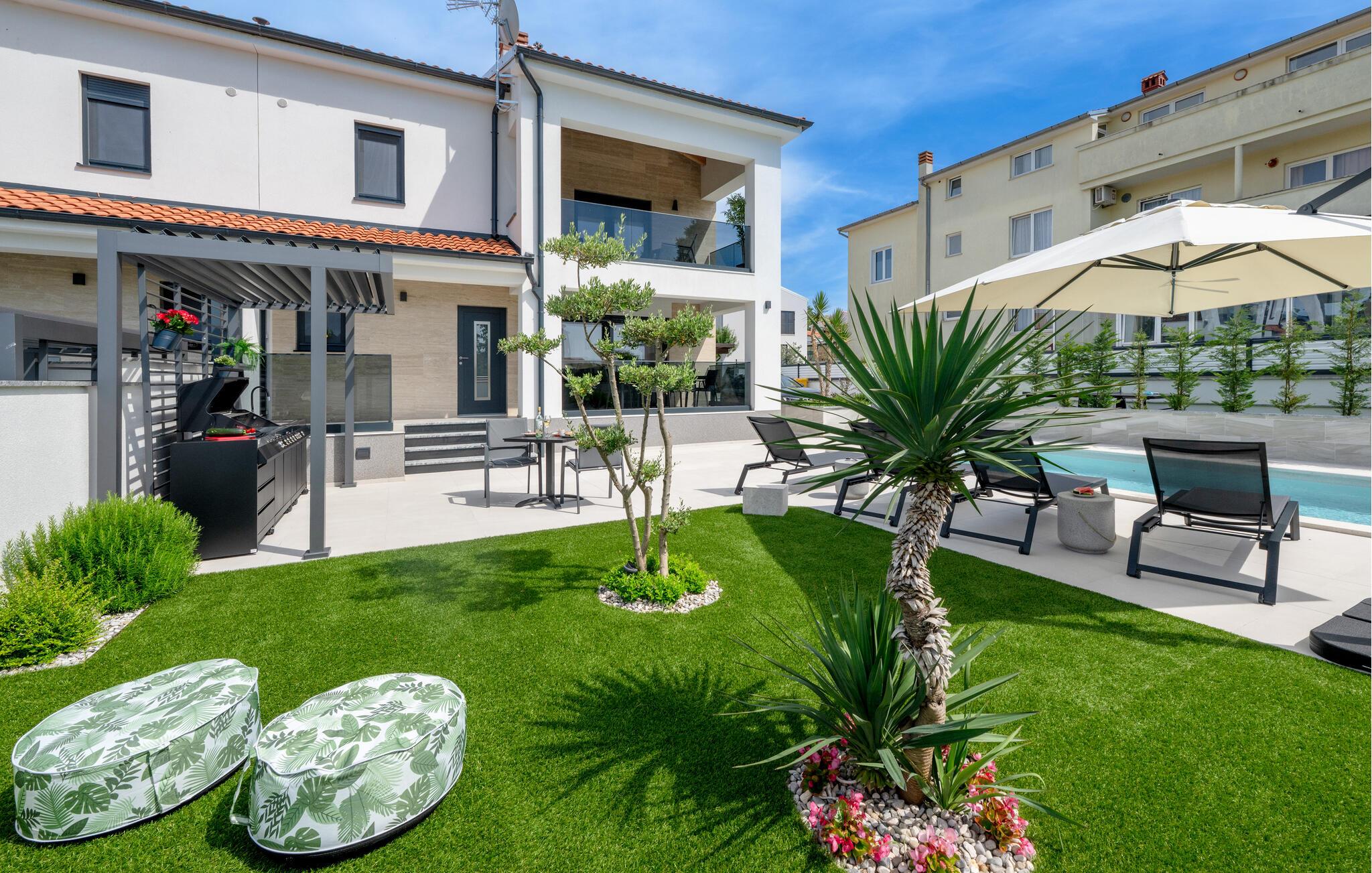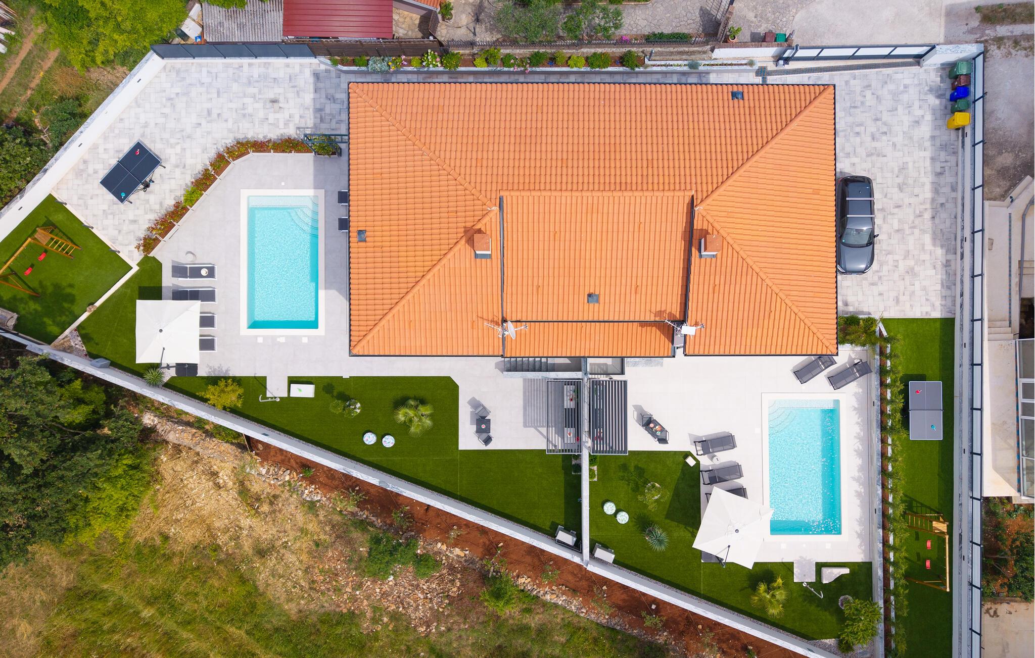 Dette luksuriøse huset i Stinjan, på kysten av Istria, tilbyr deg og dine kjære en herlig oase hvor dere kan slappe av. Start dagen på den romslige terrassen, hvor et spisebord inviterer deg til å nyte en koselig frokost utendørs. Nyt utsikten over det innbydende bassengområdet og de fredelige omgivelsene mens du puster inn den friske morgenluften. Inne venter en elegant og åpen planløsning på deg. Len deg tilbake i den komfortable sofaen og tilbring avslappende kvelder med favorittfilmene dine. Den stilfulle spiseplassen skaper en hyggelig atmosfære for felles måltider, og det moderne, velutstyrte kjøkkenet gir deg mulighet til å utfolde deg fritt i matlagingen.