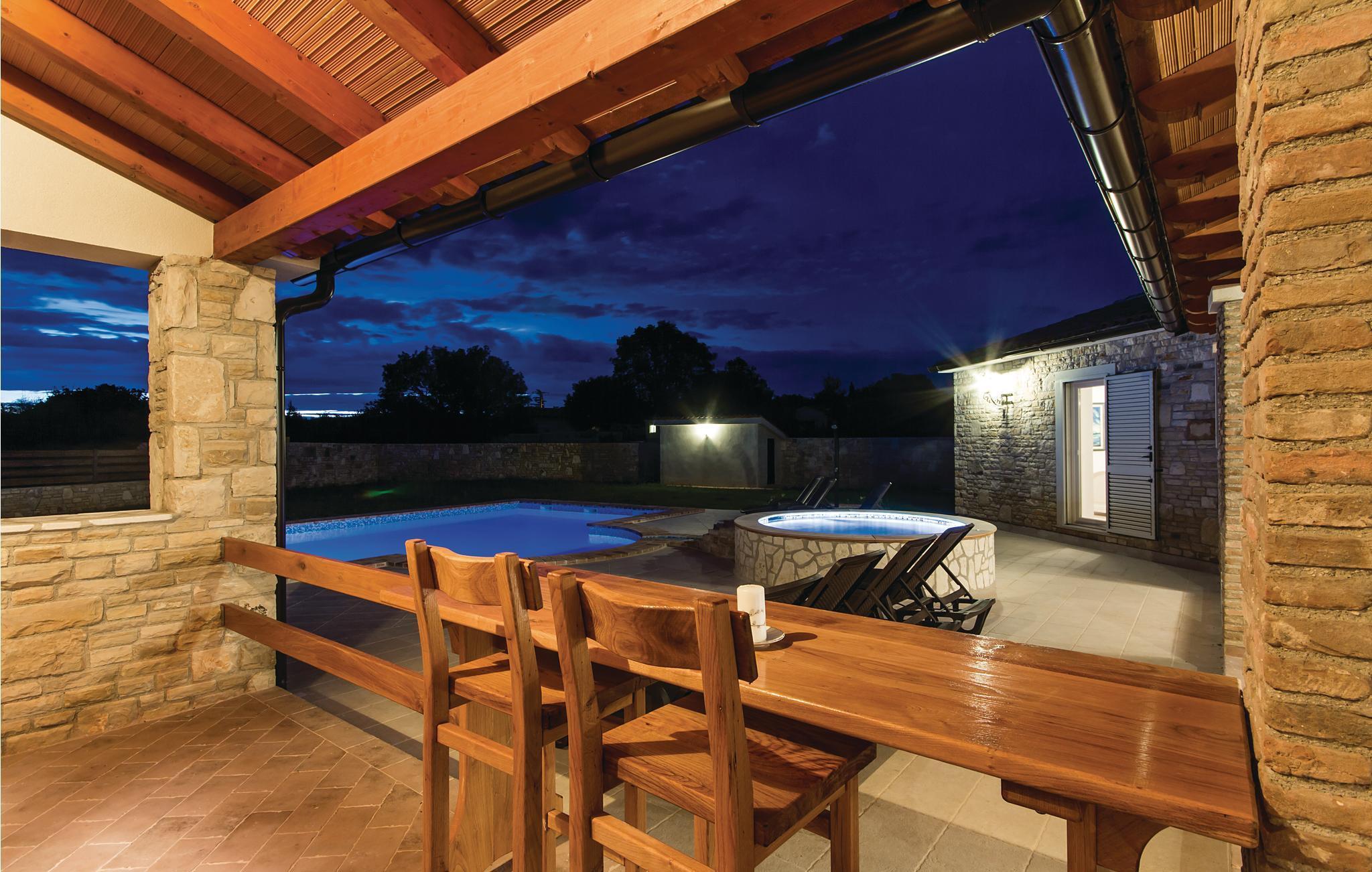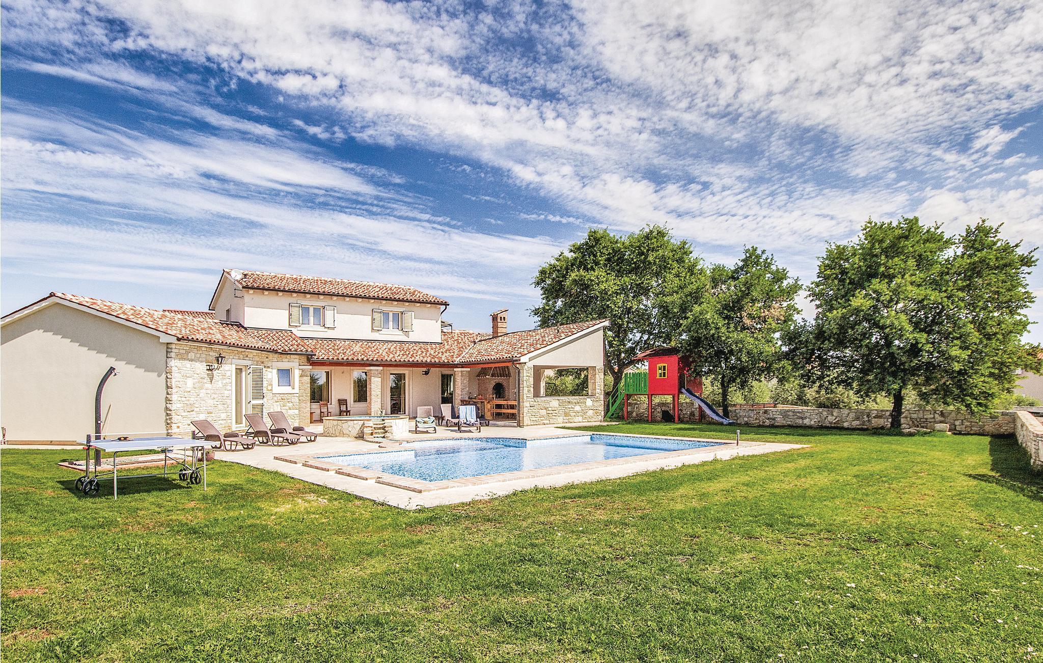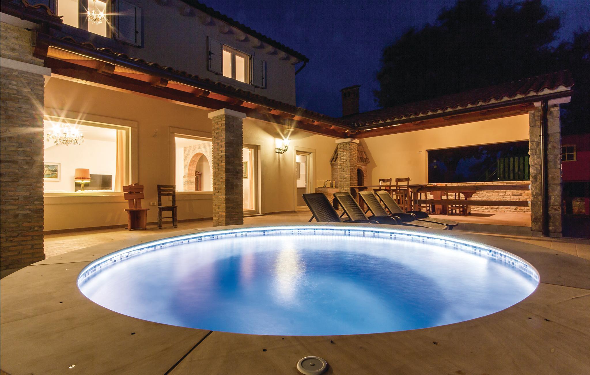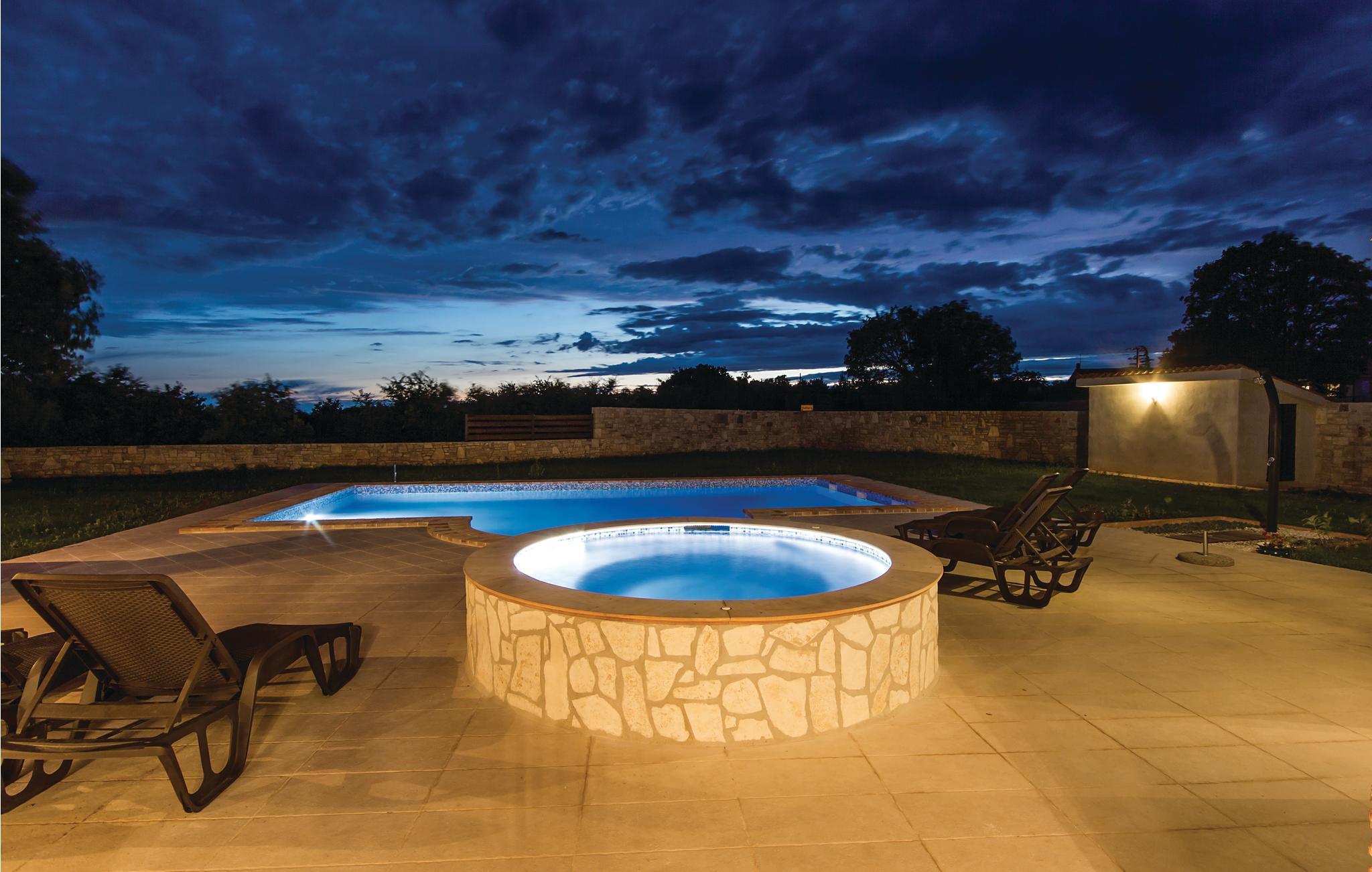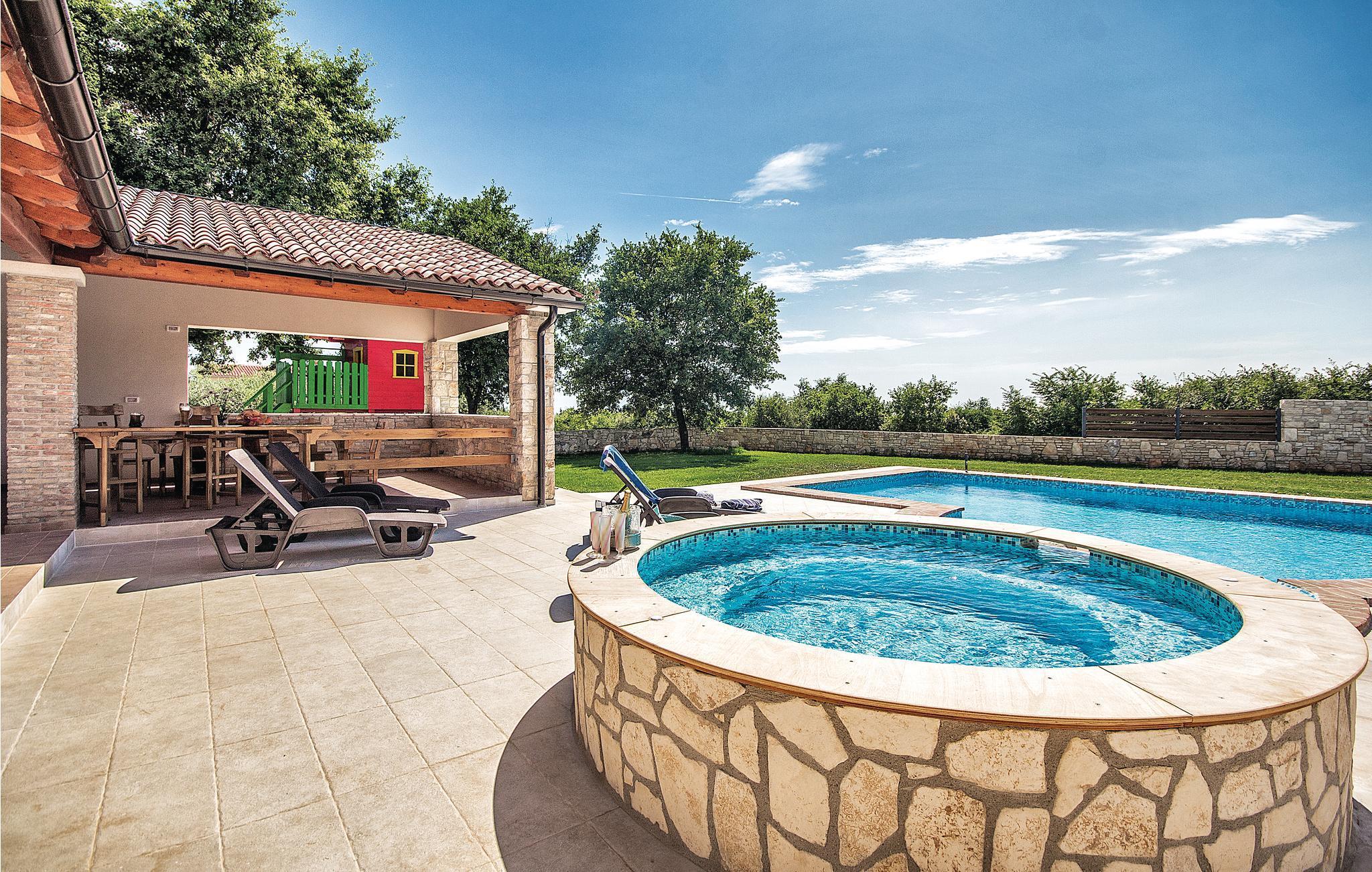 Dette feriehuset ligger i en liten landsby i nærheten av Pula. Det romslige interiøret er innredet for et hyggelig opphold. Eiendommen inkluderer et stort svømmebasseng for moro og forfriskning på varme sommerdager, og rett ved siden av har du et boblebad hvor du i tillegg kan slappe av. Tilbring sommerkveldene også ute på terrassen med deilige spesialiteter fra grillen og et glass Malvasia i hånden. Elskere av aktiv rekreasjon og syklister vil glede seg over nærheten til sykkelstier. Besøk Nesactium, et nærliggende utgravningssted fra romertiden og den gamle byen Pula, hvor du også kan oppdage monumenter fra romertiden.