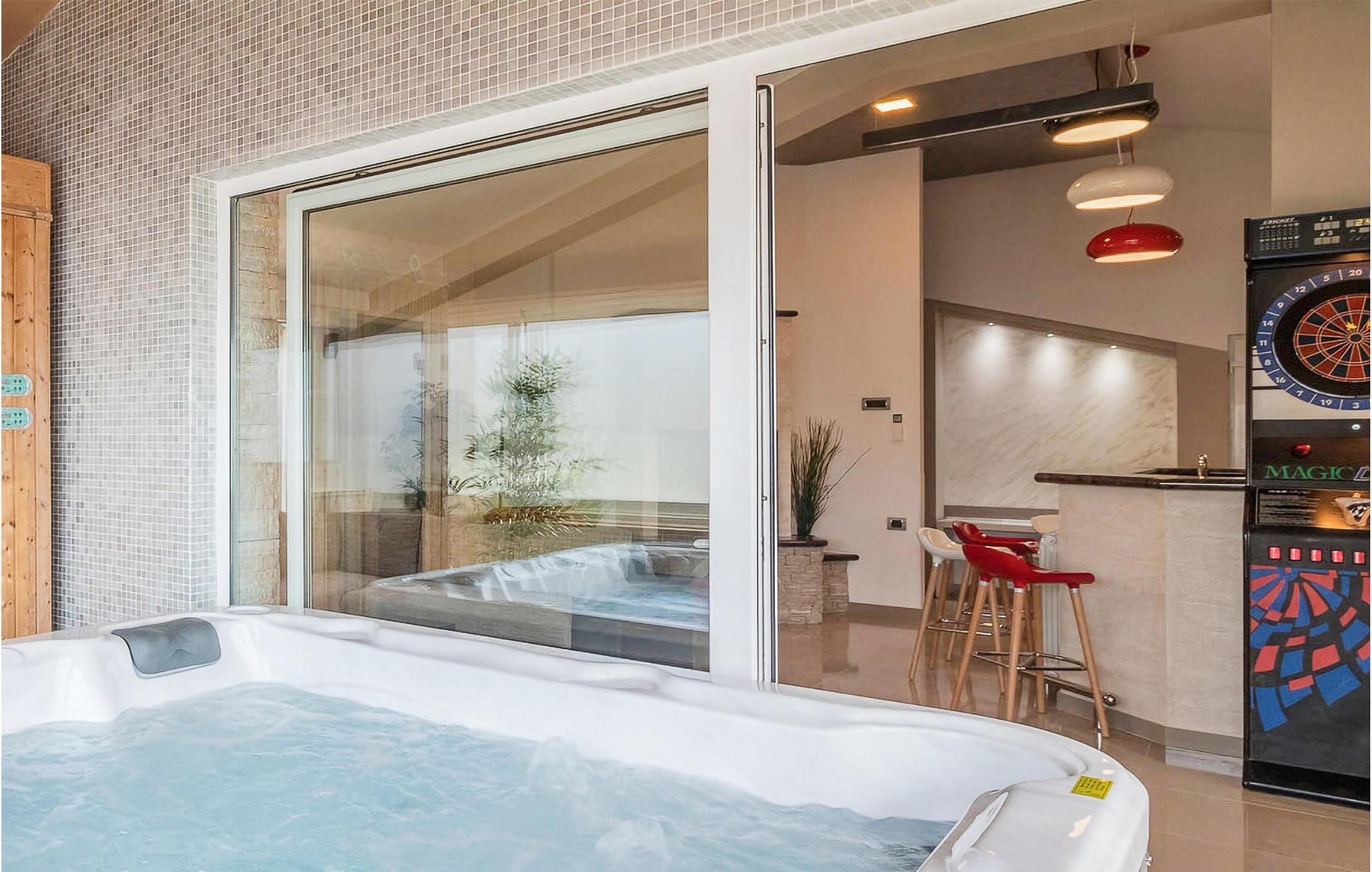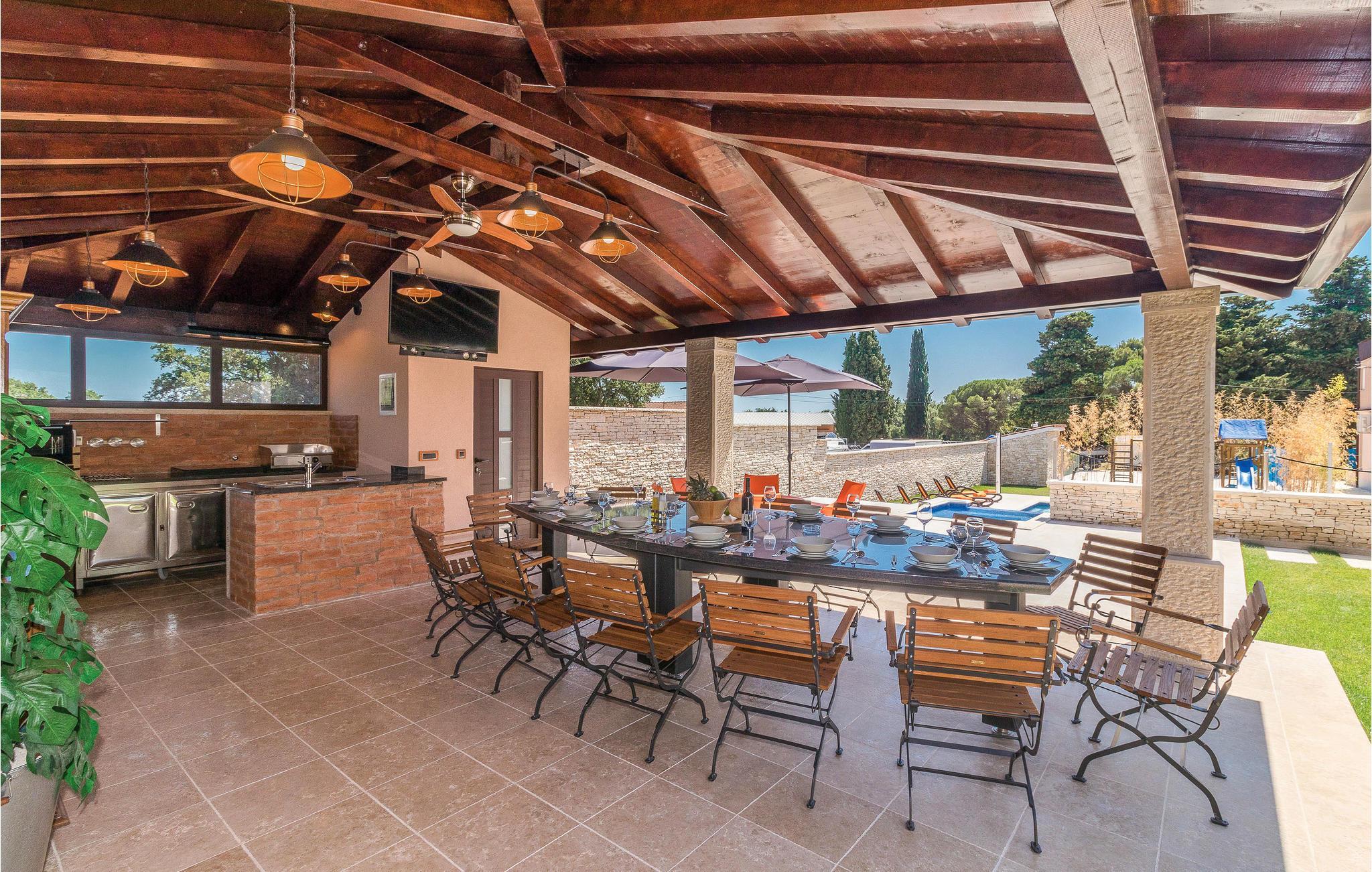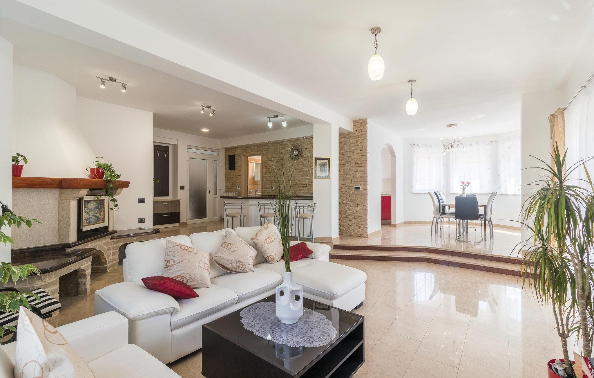 Dieses traumhafte Ferienhaus mit Pool befindet sich unweit der Stadt Pula und bietet Luxus pur für mehrere Familien oder Freunde, die gerne zusammen verreisen. Die Aufteilung der Räumlichkeiten lässt keine Wünsche offen, sie bietet das richtige Umfeld für ein gemütliches Beieinander und auch Privatsphäre. Im Außenpool ist der Whirlpool integriert, er grenzt an die überdachte Terrasse. Für die Kinder sind Spielgeräte und Trampolin vorhanden. Das einmalige Ambiente und Vergnügungsmöglichkeiten werden dazu beitragen, dass Ihnen dieser Urlaub noch lange in schöner Erinnerung bleiben wird. In unmittelbarer Nähe befindet sich der moderne Steinmetzbetrieb des Eigentümers. Die Arbeiten finden in komplett schallisolierten Räumen statt.