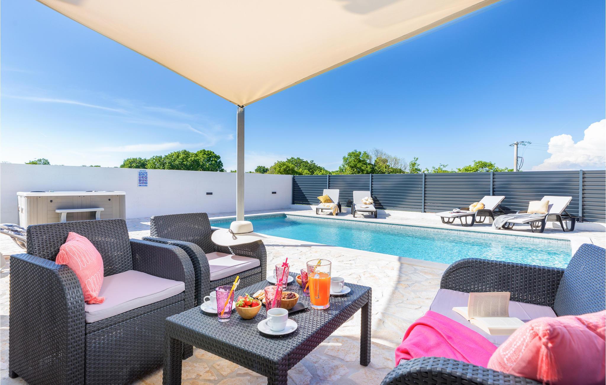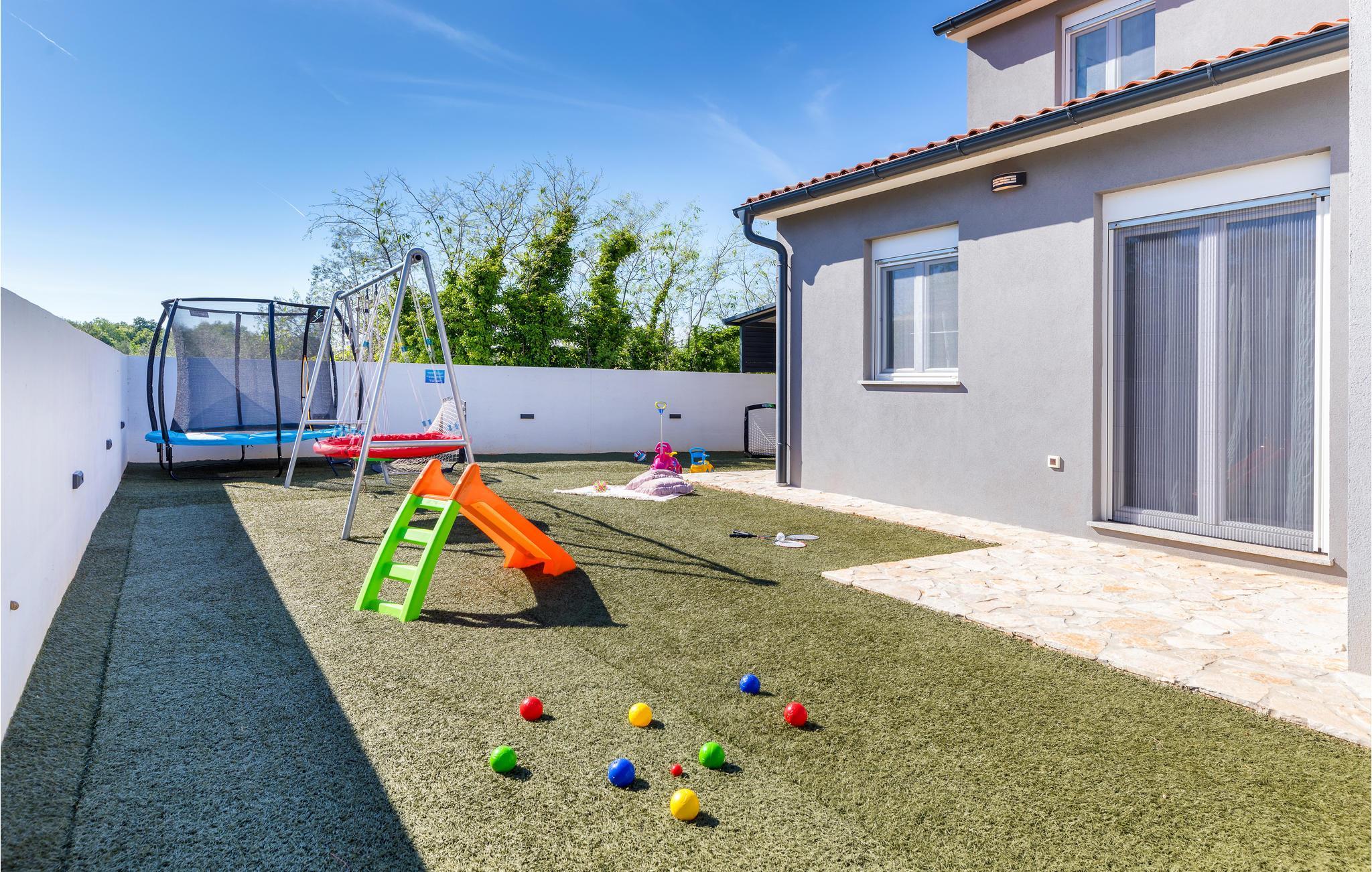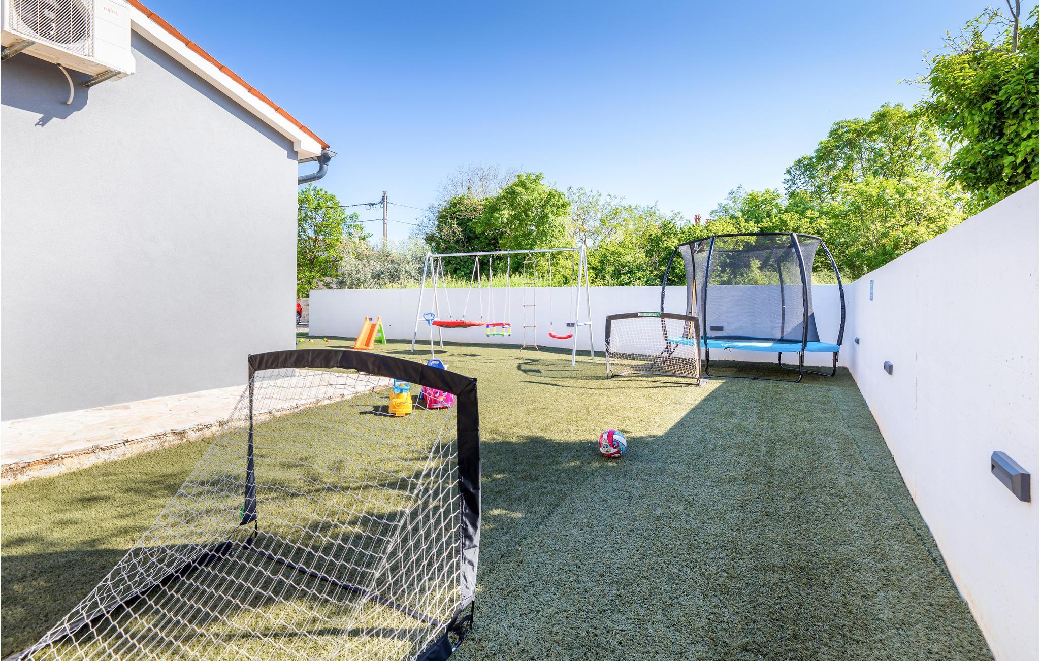 Første etasje har en romslig stue med kjøkken og spiseplass, soverom og bad. Ovenpå er det tre soverom og et annet bad. I den inngjerdede hagen er det lekeapparater for de yngste gjestene, mens de voksne kan slappe av i boblebadet. Avslutt dagen i sittegruppen med en god dråpe istrisk vin eller lag mat på grillen.