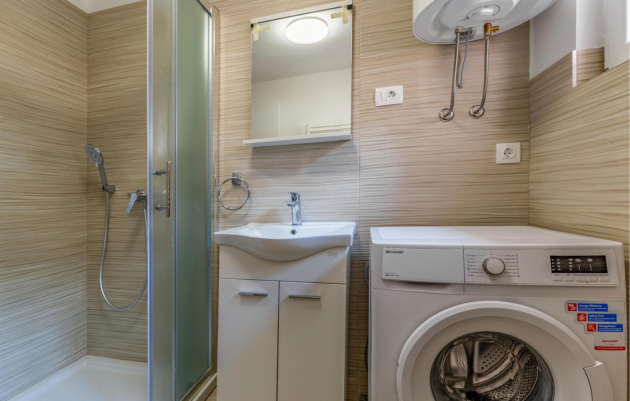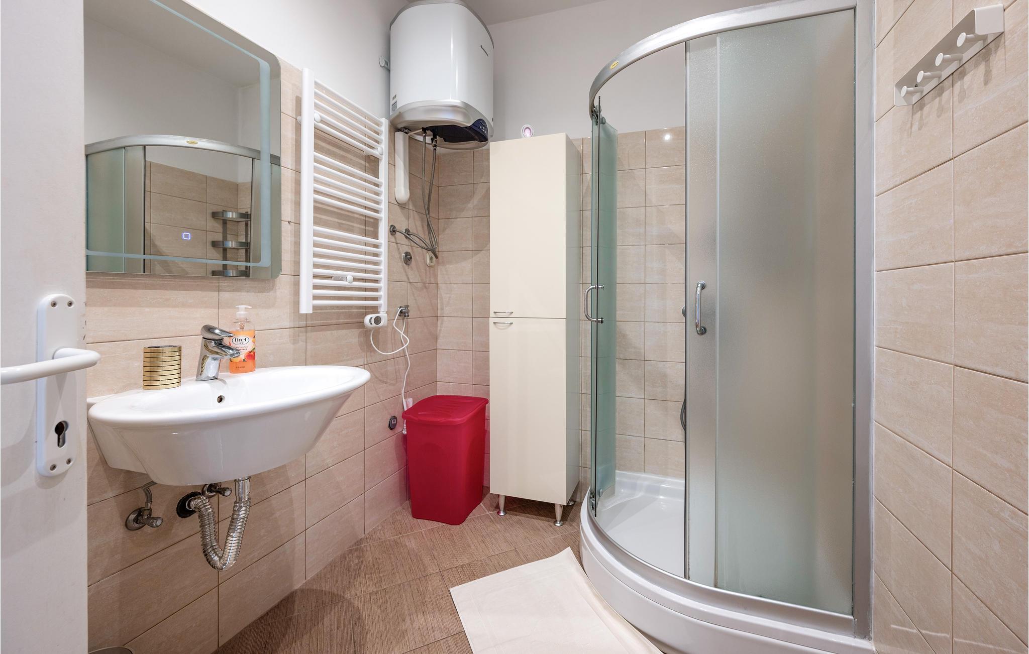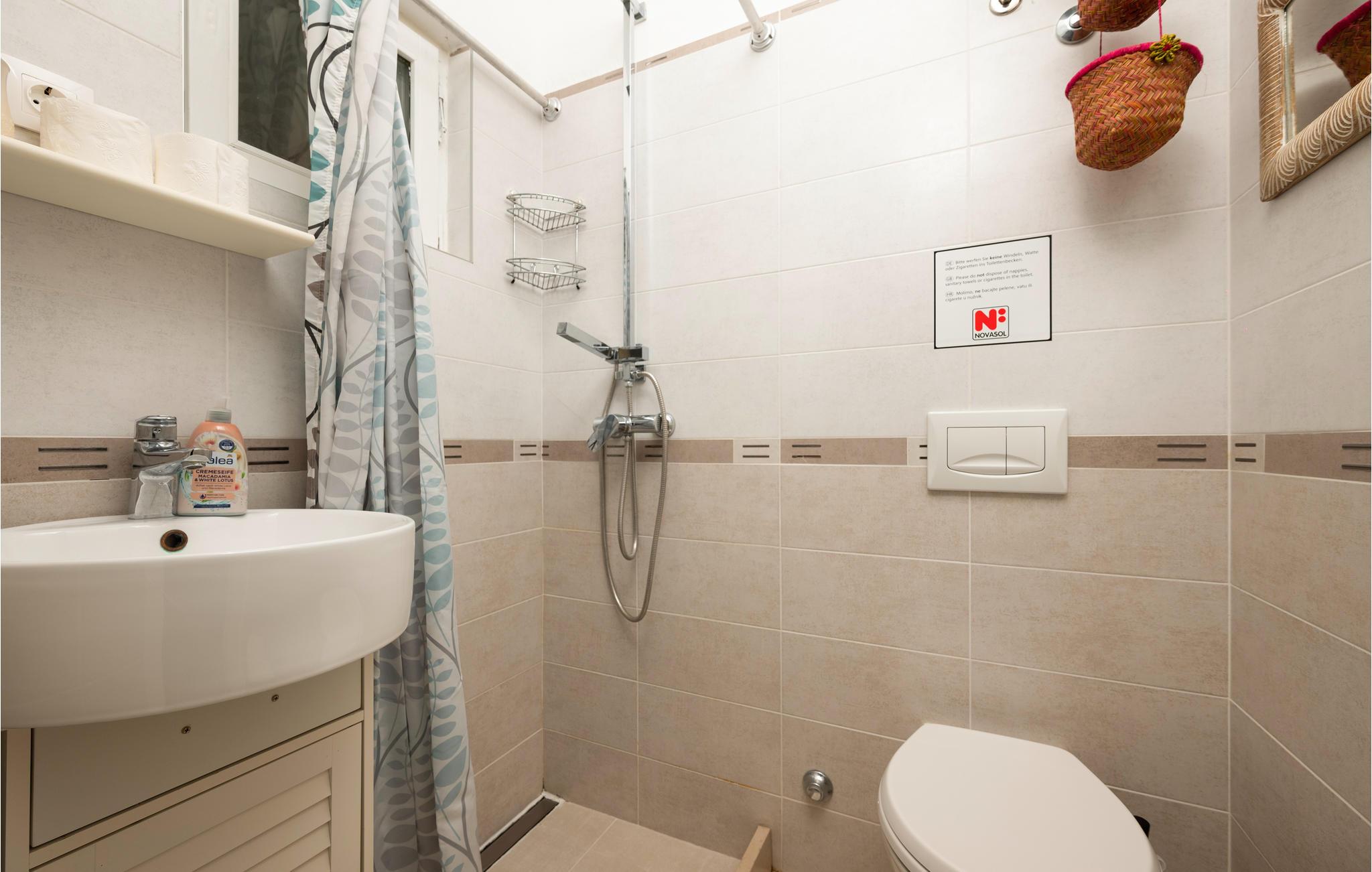 - WC med varmt og kaldt vann, Dusj