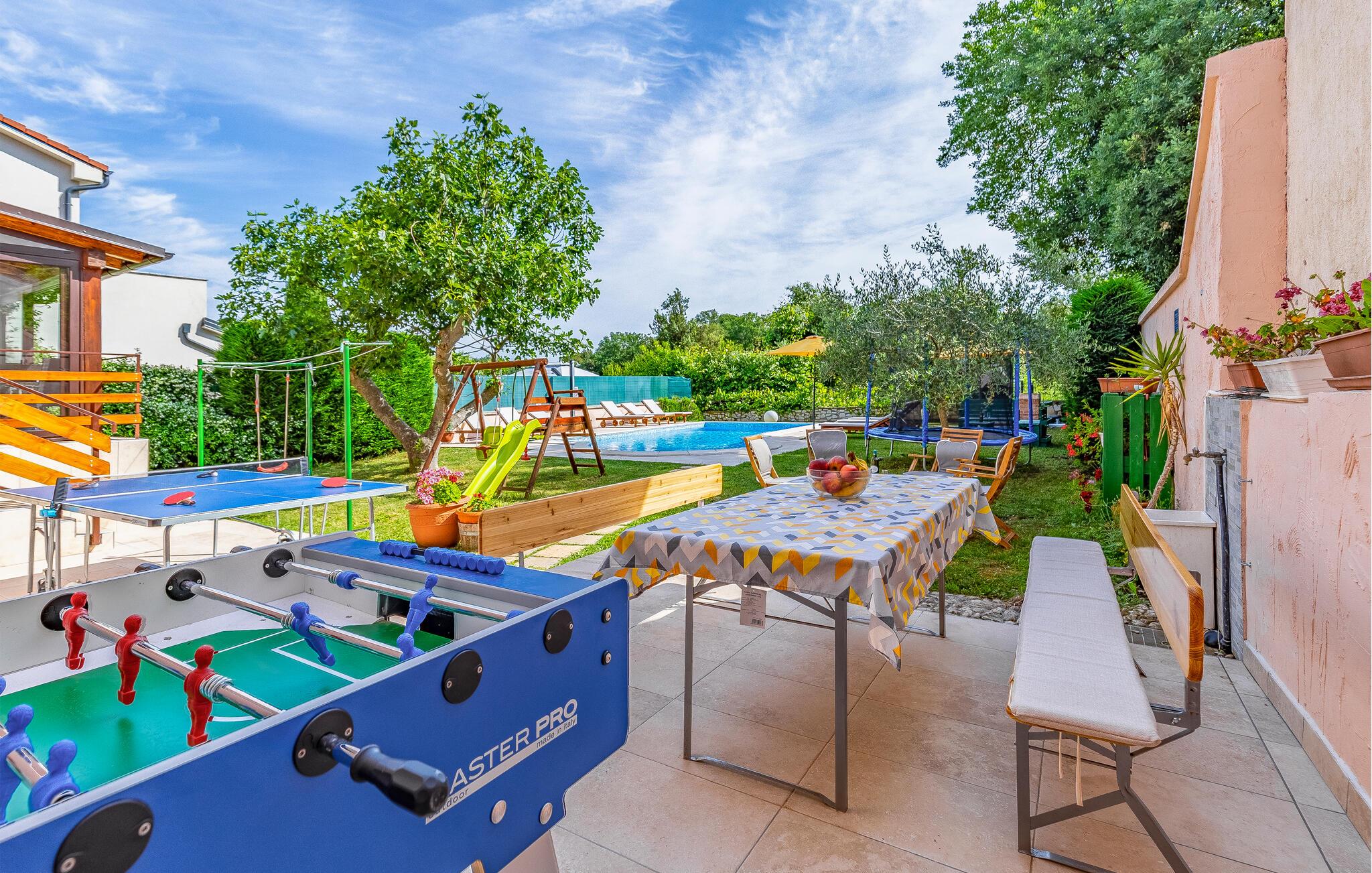 Familievennlig feriehus med basseng.