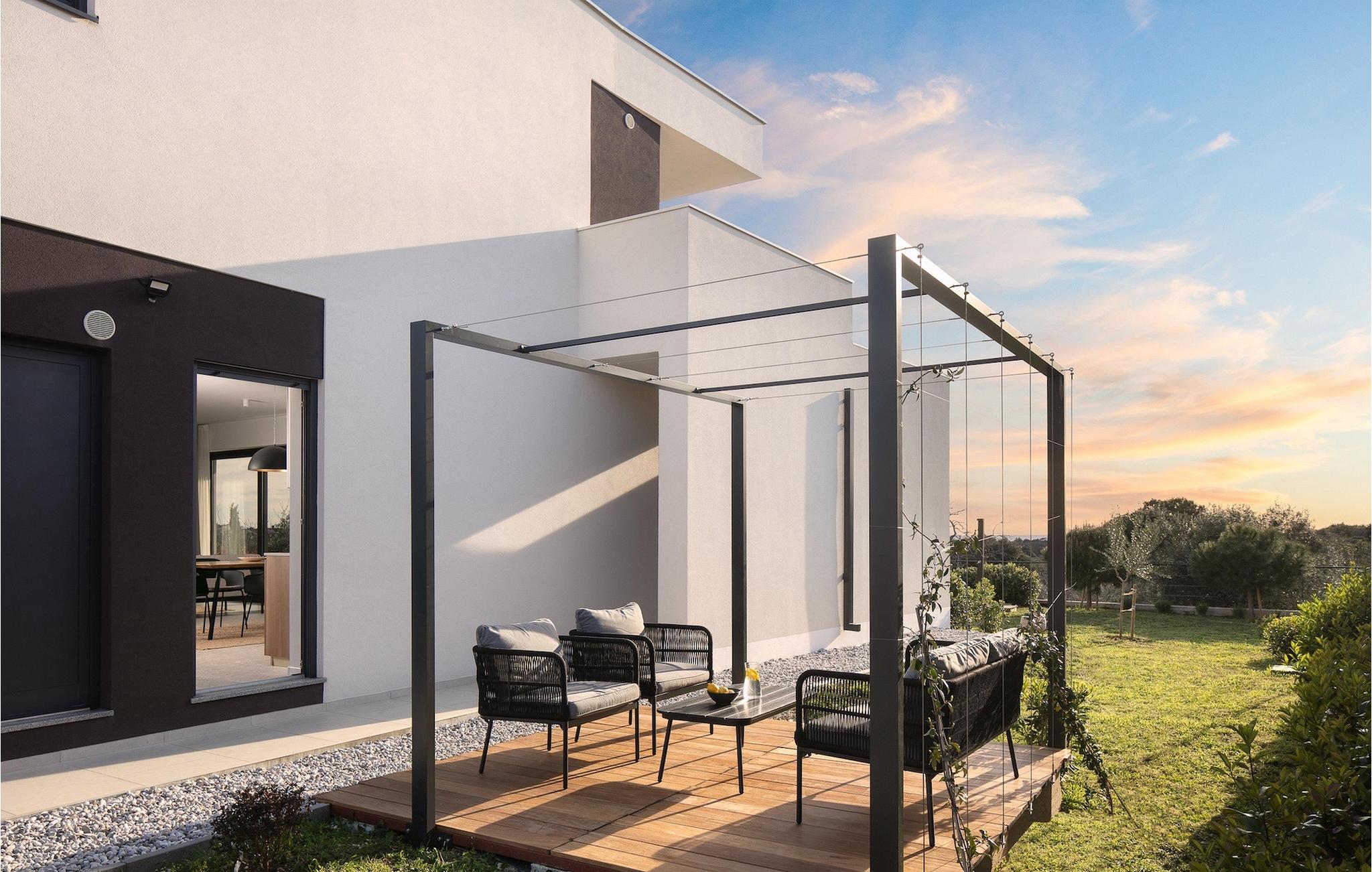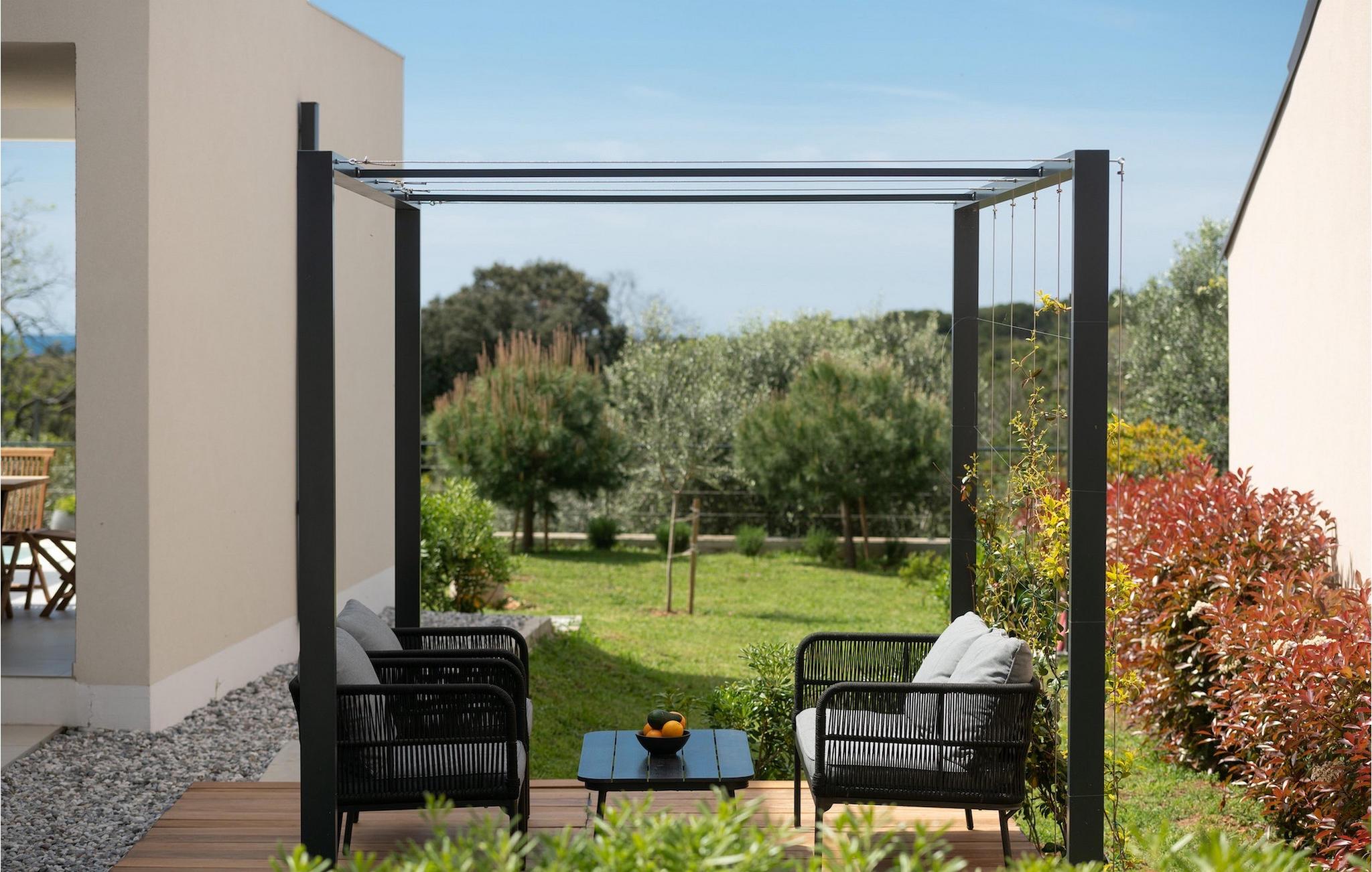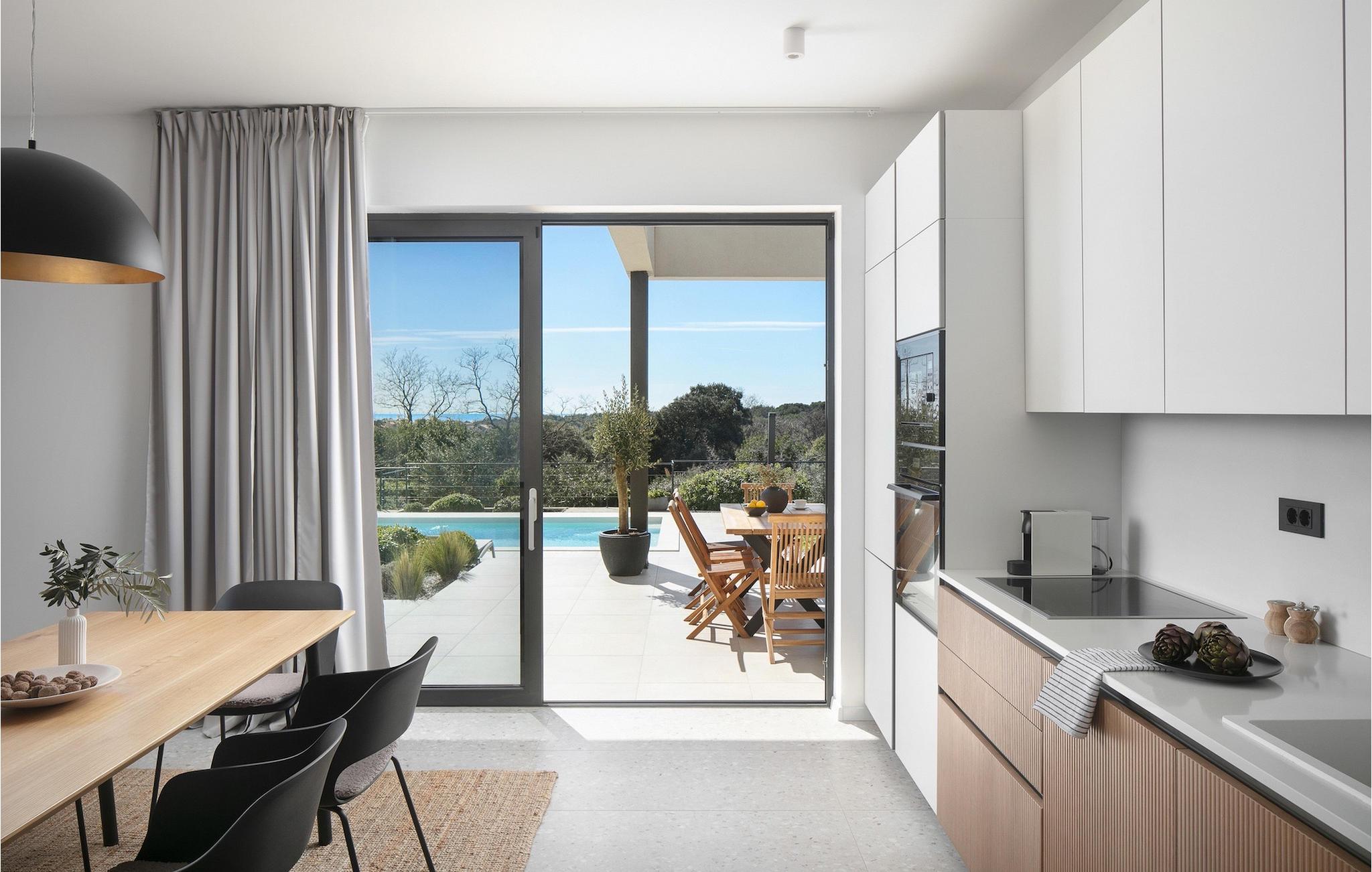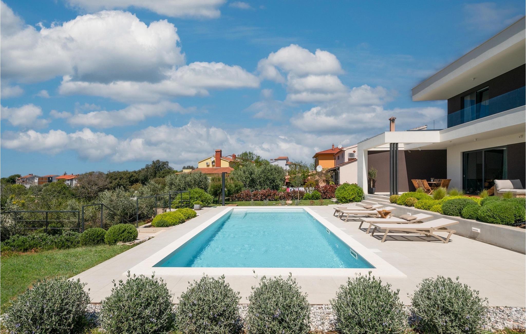 Den luksuriøse Villa Sealine i nærheten av byen Pula er ideell for deg som søker ro og avslapning. Villaen ble bygget i 2022, ligger ca. 400 meter fra sjøen og har plass til opptil 8 personer i 4 soverom og 4 bad fordelt på 2 etasjer. Fasilitetene til Villa Sealine vil garantert gi gjestene alt de trenger når de besøker Istria. Villaens uteområde er et herlig stort sted å slappe av med en vakker og velholdt hage. Det 40 m² store private bassenget med hydromassasje tilbyr gjestene en måte å kjøle seg ned på varme sommerdager og vil være høydepunktet på barnas ferie. Voksne kan for eksempel slappe av ved bassenget på de komfortable solsengene og nyte solstrålene mens de leser en god bok og nyter en forfriskende drink. Eksperimenter med kroatisk mat ved å tilberede gode måltider på kullgrillen og dele dem med familie og venner i det overbygde spiseområdet på terrassen. Interiøret vil heller ikke skuffe, med en ren, lys og moderne design i hele huset. I første etasje er det en stor stue, et fullt utstyrt kjøkken med spiseplass, et separat toalett og et moderne soverom med dobbeltseng og eget bad med dusj. I andre etasje finner du ytterligere tre soverom med dobbeltseng, eget bad og terrasse med fantastisk utsikt. Nesten alle rommene har vakker utsikt over omgivelsene og Adriaterhavet. Villaen har også klimaanlegg og Wi-Fi. Villa Sealine er vakkert designet, romslig og velutstyrt, så et opphold i denne villaen kan være det rette valget for å nyte en fantastisk tid i Istria. Planlegg en morsom og minneverdig tur med familie og venner ved å bestille Villa Sealine, som ligger i nærheten av det fantastiske turisthotellet Pula, en av de største og mest populære byene i Istria-regionen. Enten du liker havet, historie, arkitektur eller deilig mat, kan en tur til Pula by på en rekke fascinerende ting å gjøre. Ikke langt fra villaen ligger Rt Kamenjak, som ikke bare er et kjent turistmål, men også et fredelig sted med vakker natur. Ta en spasertur gjennom Soline-skogen, bruk de mange sykkelstiene for å holde deg i form. De mer eventyrlystne kan friklatre i Cave Romane. I tillegg til sine kulturelle og historiske skatter er Istria og områdene i nærheten av Villa Sealine kjent i denne delen av Europa for sine særegne kulinariske opplevelser. For en ekte smak av middelhavsmat byr Istria på deilige kulinariske godbiter som prosciutto (prut), vin og fui (fui). Huset ligger i en blindvei, og 200 meter fra huset er det en inngjerdet lekeplass for barn. Lekeplassen for futsal og basketball ligger 500 meter fra villaen, og er gratis tilgjengelig og også helt inngjerdet. Ved siden av finner du en parkeringsplass og en kafé. Dra nytte av denne rolige beliggenheten med fantastiske solnedganger og slapp helt av.