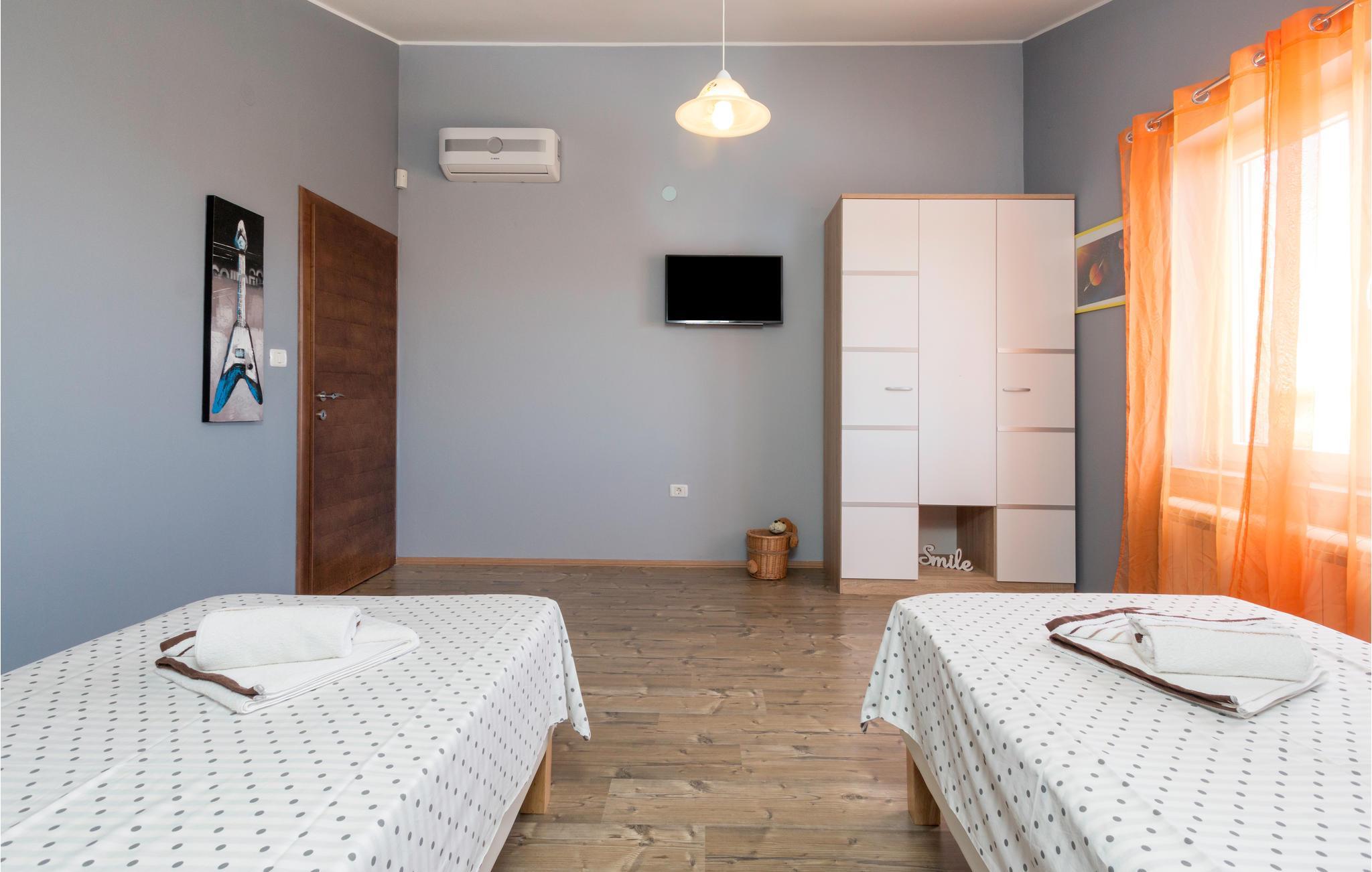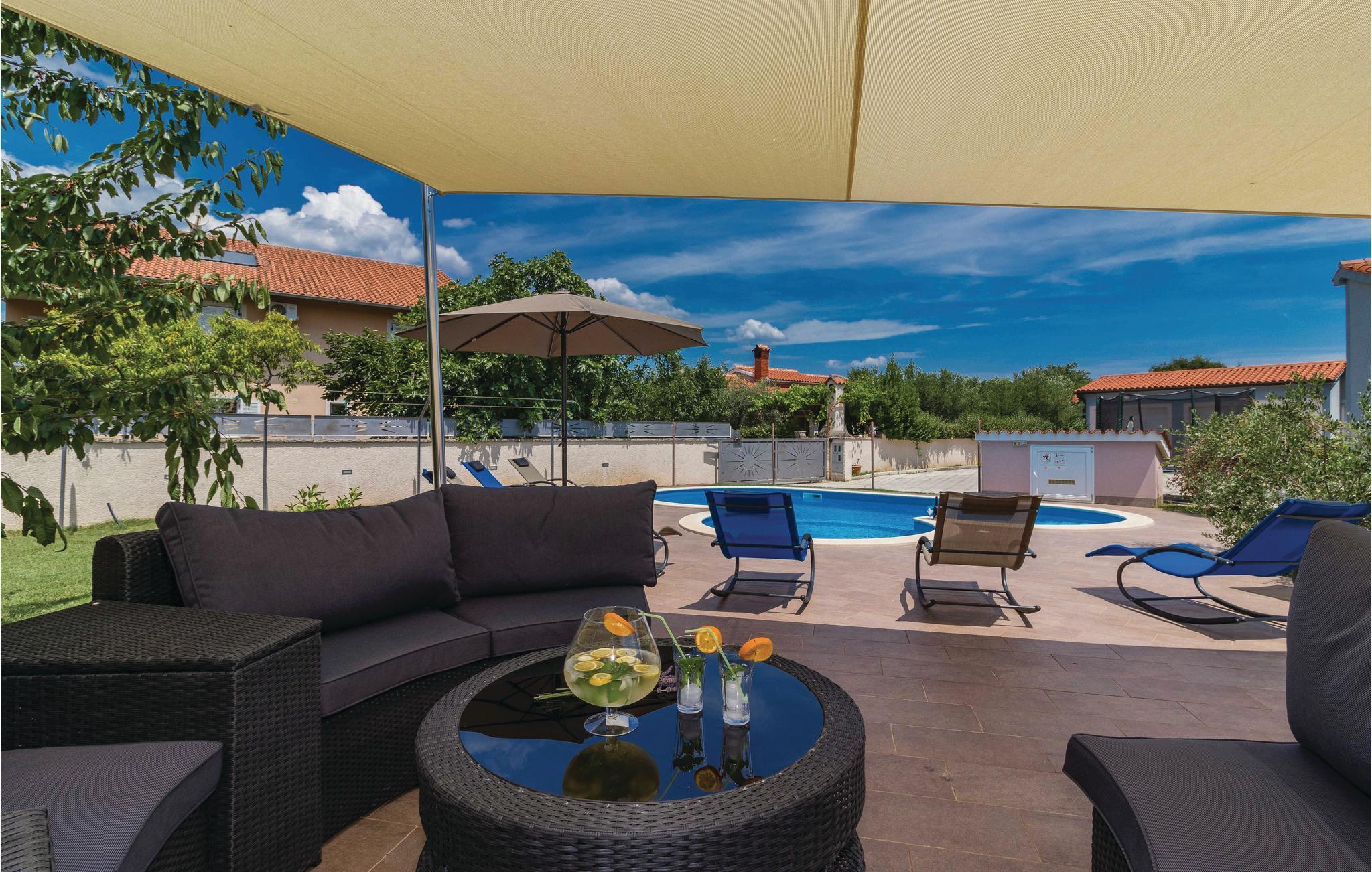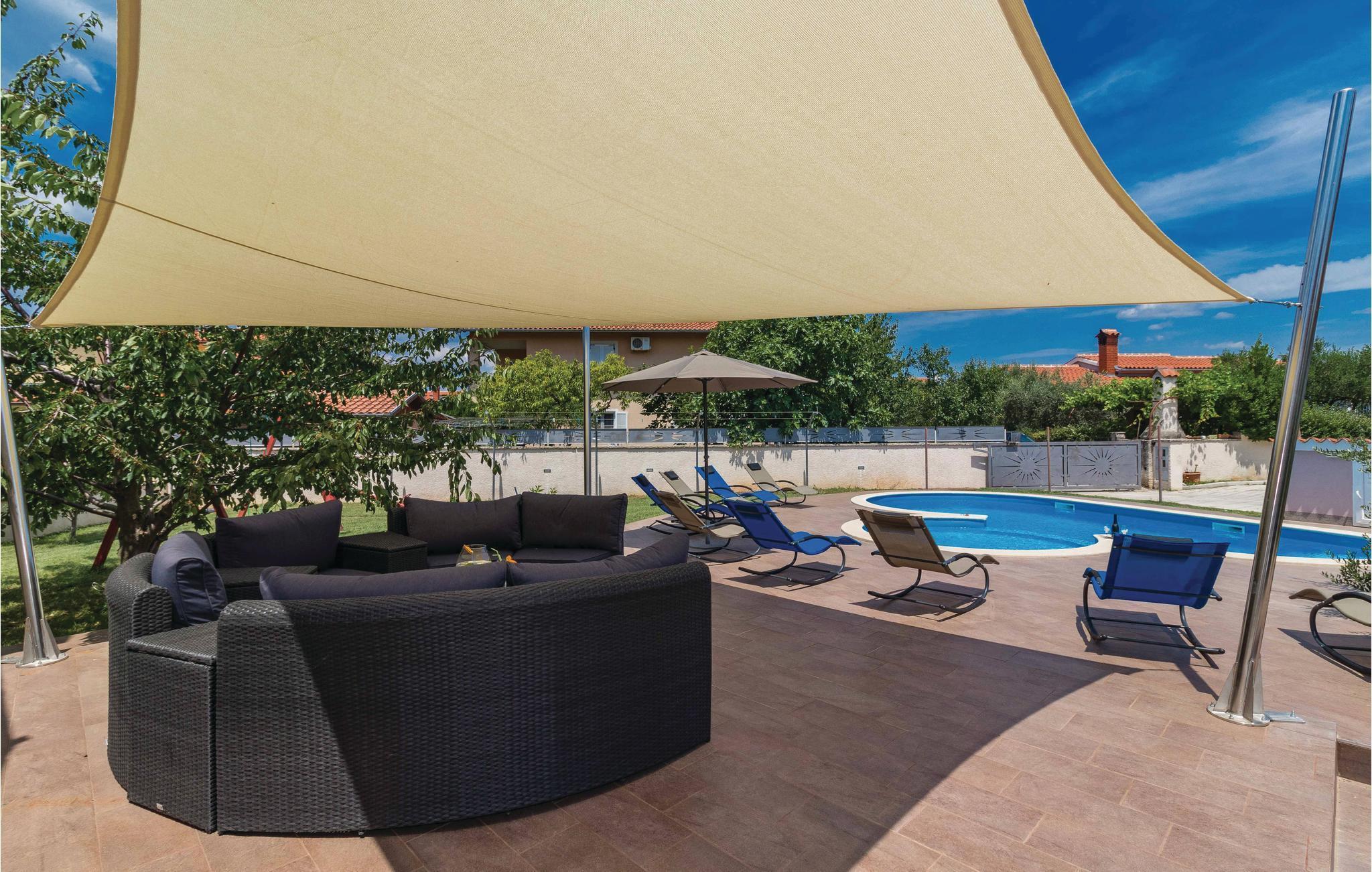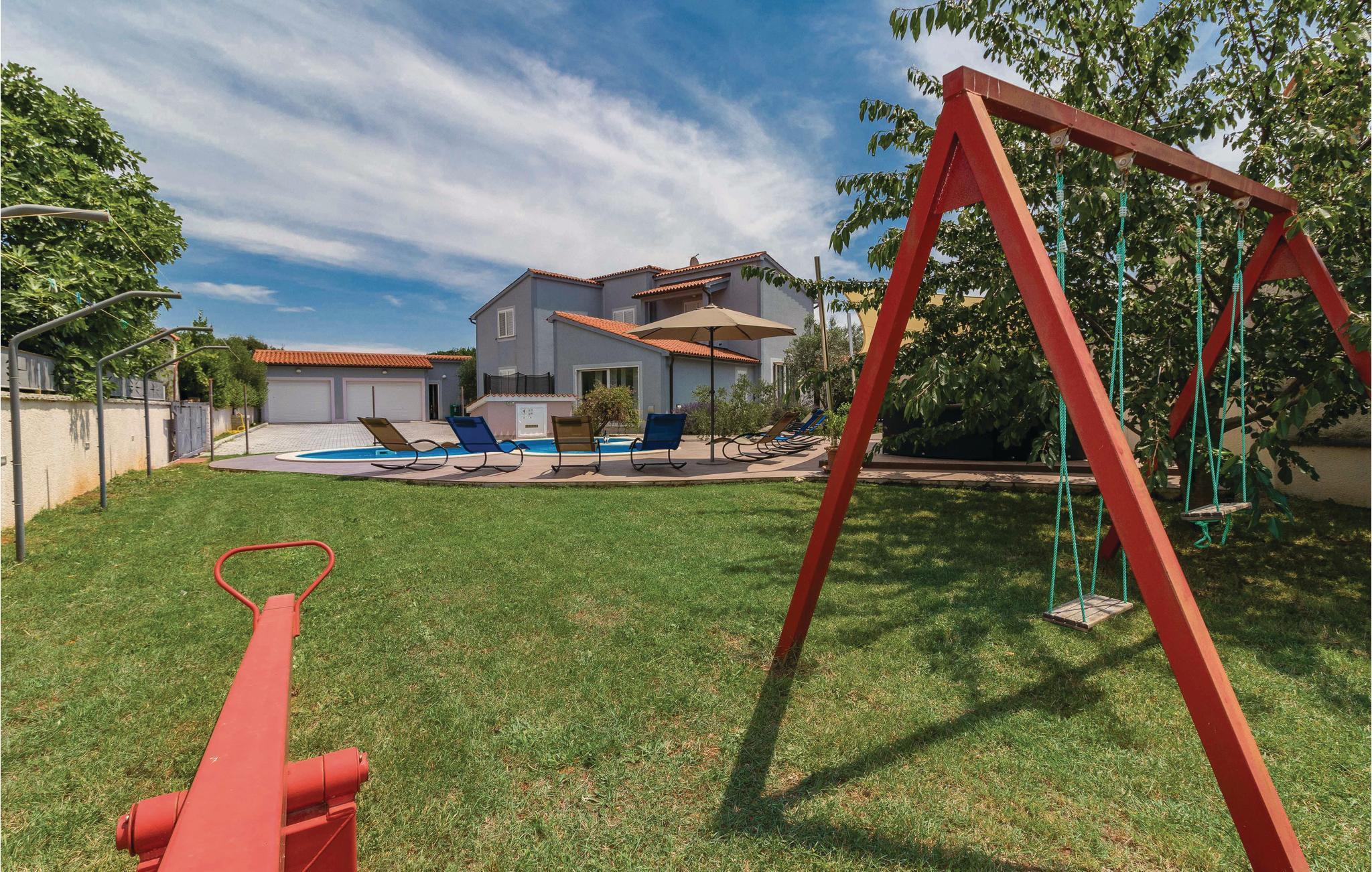 Vakkert feriehus i en forstad til Pula i en blindvei og rolige omgivelser. Godt og moderne utstyr. Det er eksepsjonelt komfortabelt og har et kjøkken samt en romslig stue og soverom. Feriehusets fasiliteter inkluderer et aktivitetsrom med biljard, bordfotball, dart og bordtennis. I den helt inngjerdede hagen kan barna leke ubekymret på husken, vippen, rutsjebanen og trampolinen. I løpet av de varme sommerdagene kan du finne forfriskning i bassenget ved siden av den vakre terrassen, hvor du kan ta din favorittdrink og tilberede deilige grillretter. I nærheten av feriehuset er det også shoppingmuligheter og restauranter med lokal mat. Besøk byen Pula, den har mye kultur å tilby om sommeren.
