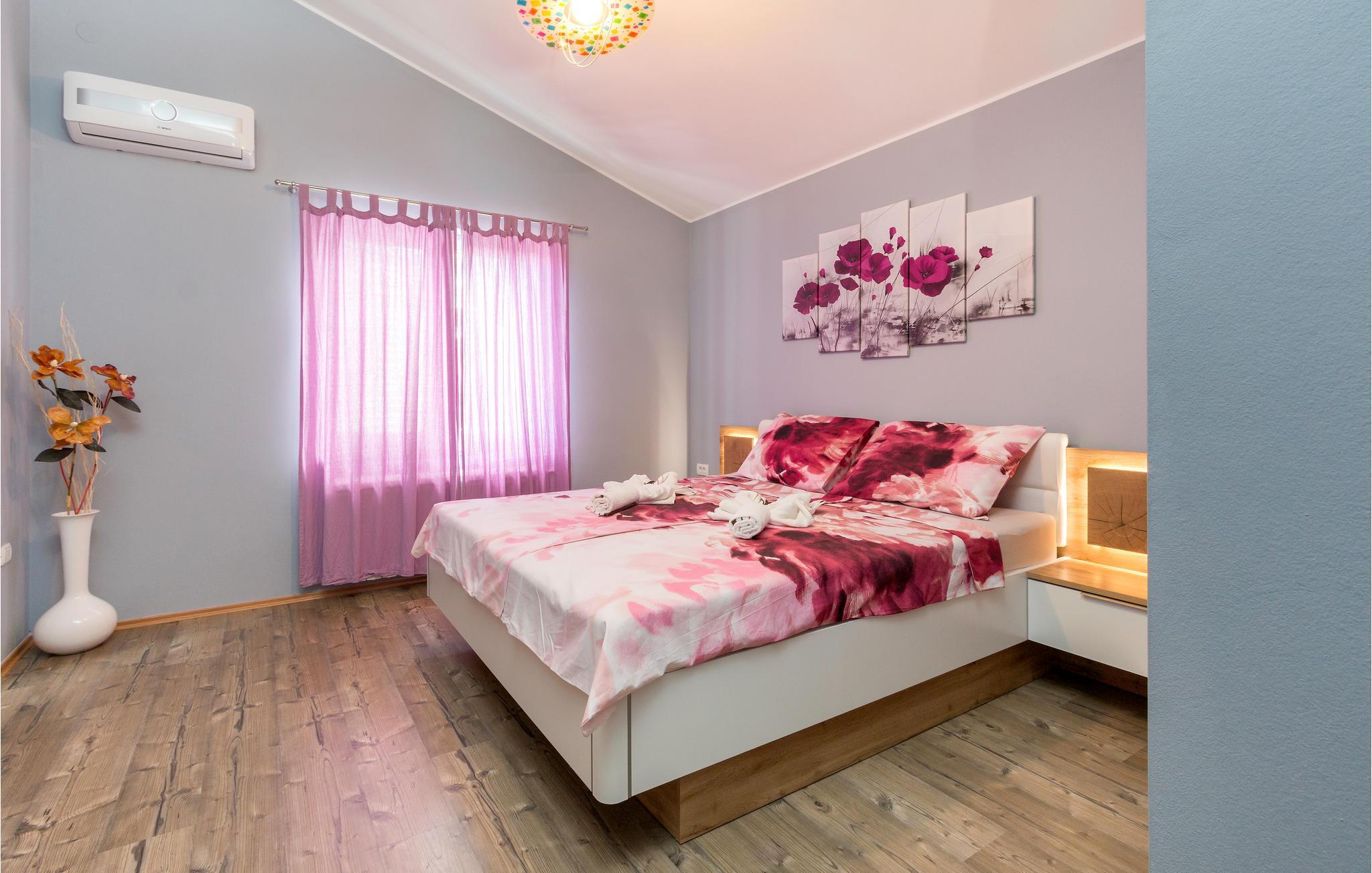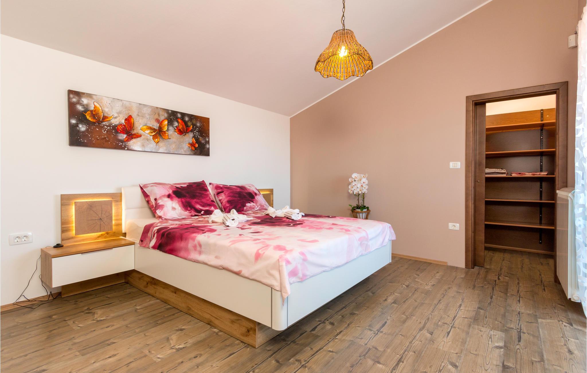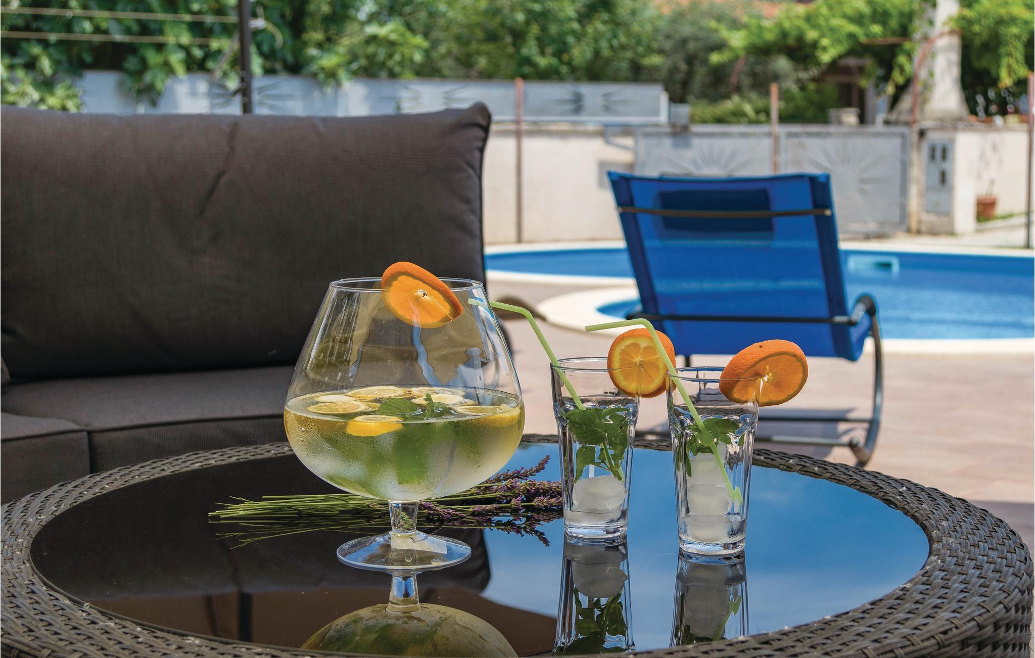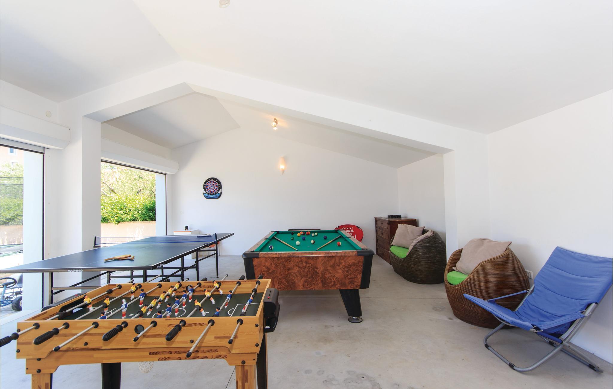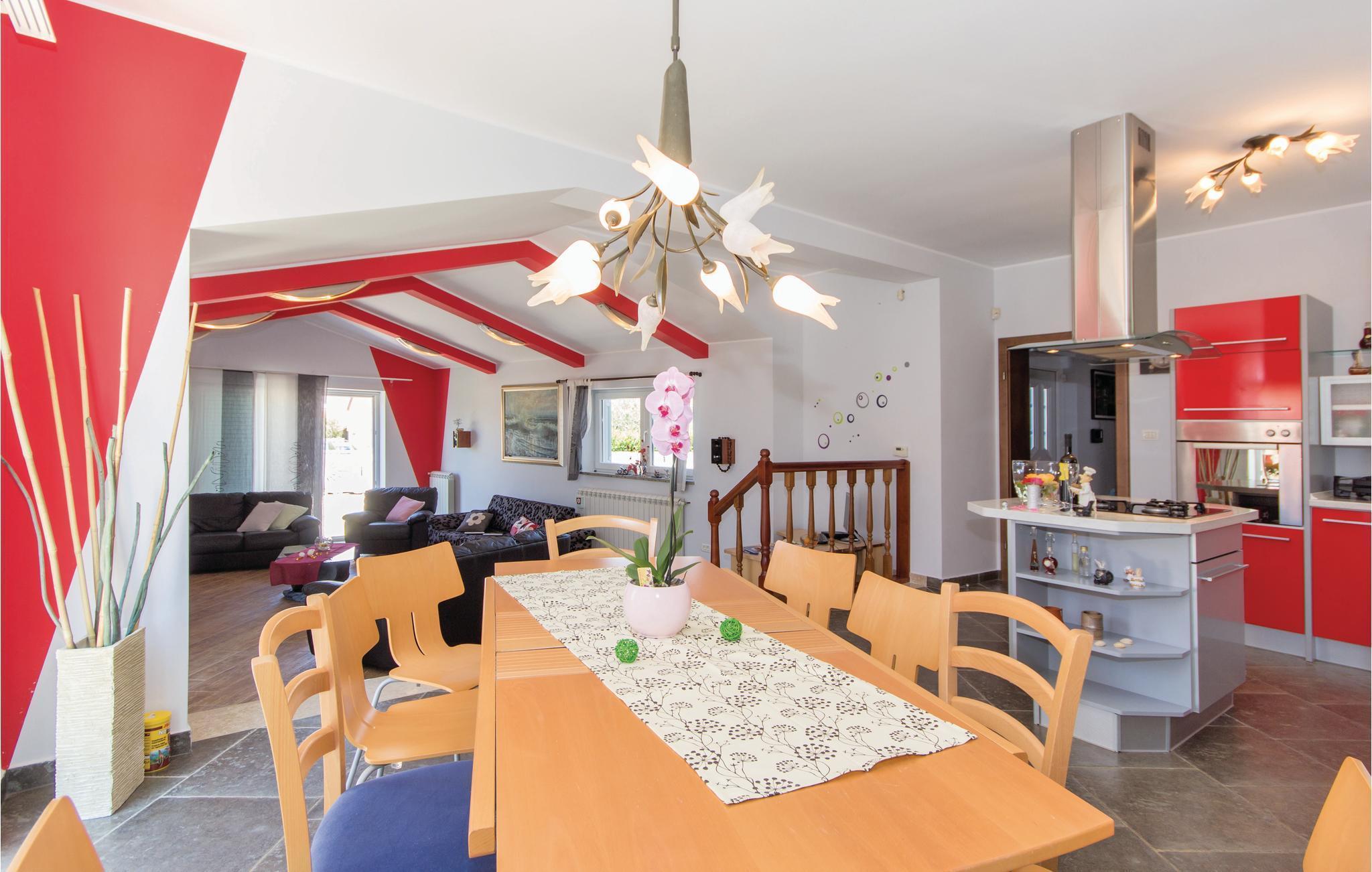 Vakkert feriehus i en forstad til Pula i en blindvei og rolige omgivelser. Godt og moderne utstyr. Det er eksepsjonelt komfortabelt og har et kjøkken samt en romslig stue og soverom. Feriehusets fasiliteter inkluderer et aktivitetsrom med biljard, bordfotball, dart og bordtennis. I den helt inngjerdede hagen kan barna leke ubekymret på husken, vippen, rutsjebanen og trampolinen. I løpet av de varme sommerdagene kan du finne forfriskning i bassenget ved siden av den vakre terrassen, hvor du kan ta din favorittdrink og tilberede deilige grillretter. I nærheten av feriehuset er det også shoppingmuligheter og restauranter med lokal mat. Besøk byen Pula, den har mye kultur å tilby om sommeren.