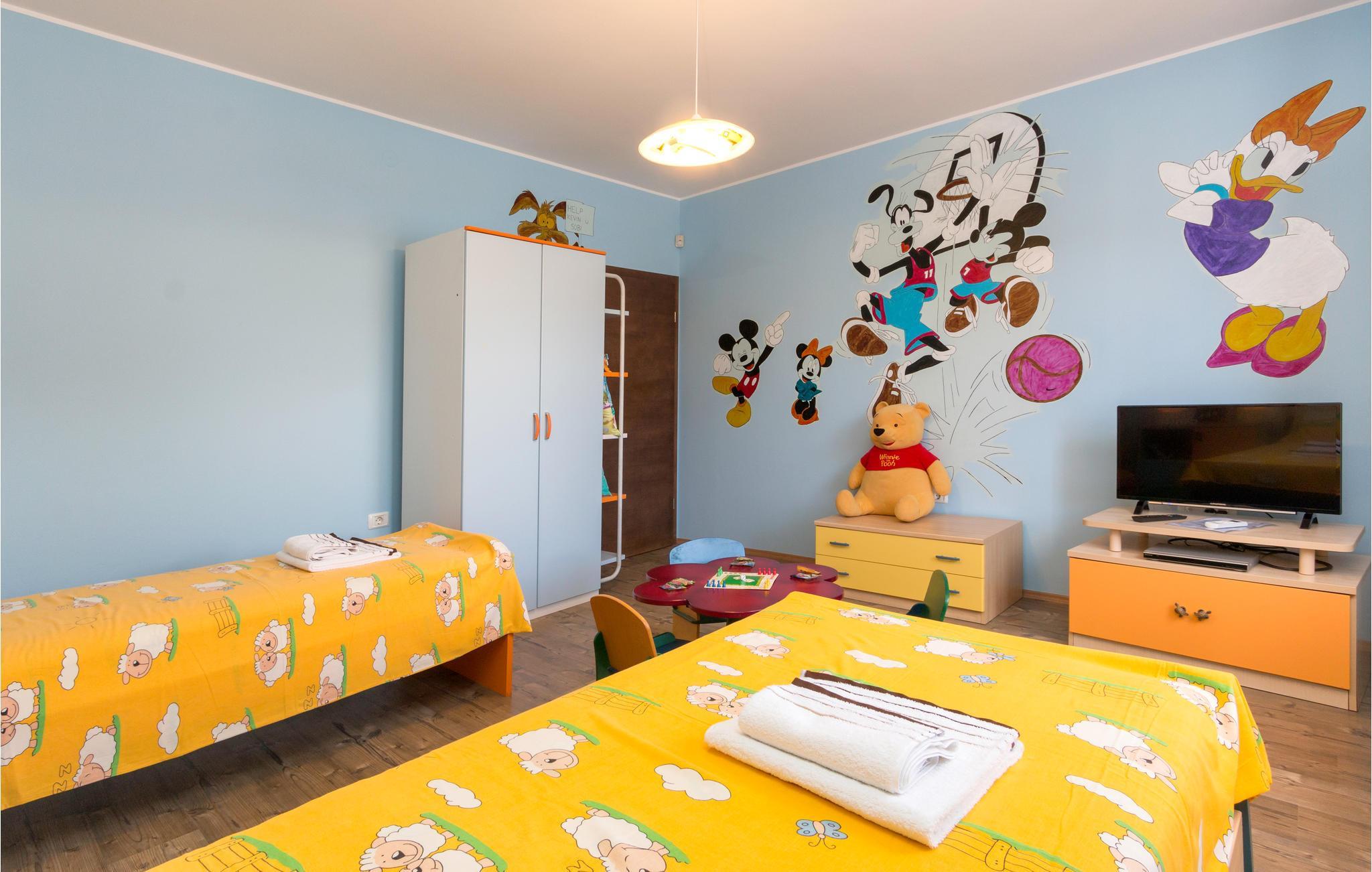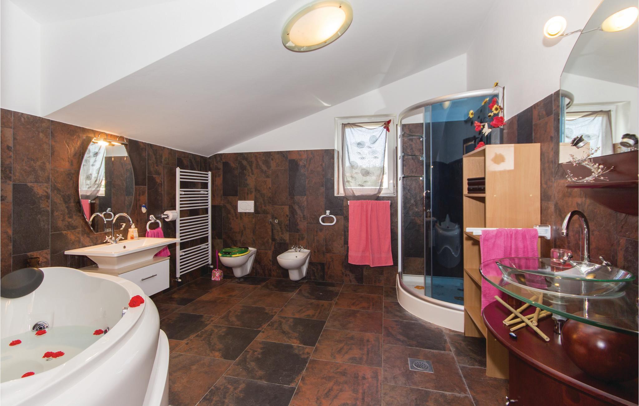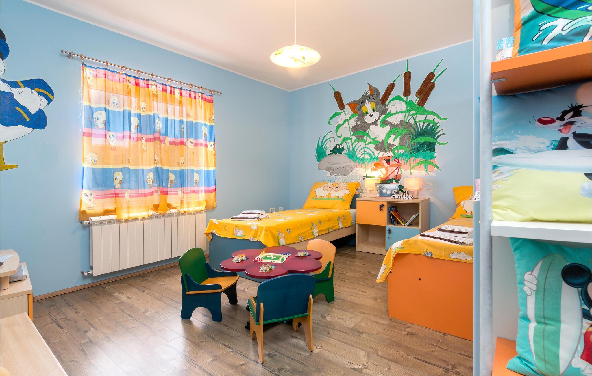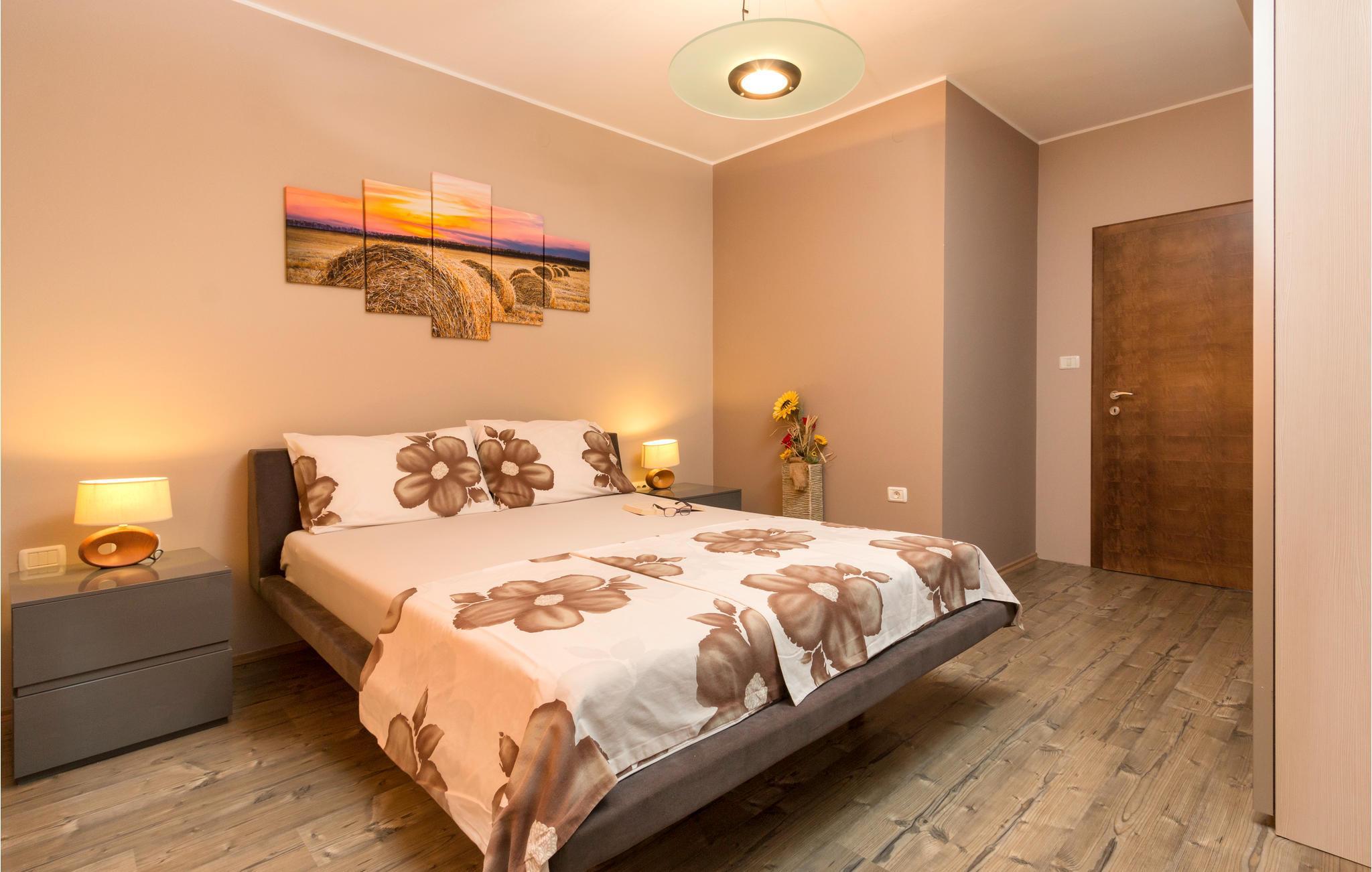 Vakkert feriehus i en forstad til Pula i en blindvei og rolige omgivelser. Godt og moderne utstyr. Det er eksepsjonelt komfortabelt og har et kjøkken samt en romslig stue og soverom. Feriehusets fasiliteter inkluderer et aktivitetsrom med biljard, bordfotball, dart og bordtennis. I den helt inngjerdede hagen kan barna leke ubekymret på husken, vippen, rutsjebanen og trampolinen. I løpet av de varme sommerdagene kan du finne forfriskning i bassenget ved siden av den vakre terrassen, hvor du kan ta din favorittdrink og tilberede deilige grillretter. I nærheten av feriehuset er det også shoppingmuligheter og restauranter med lokal mat. Besøk byen Pula, den har mye kultur å tilby om sommeren.