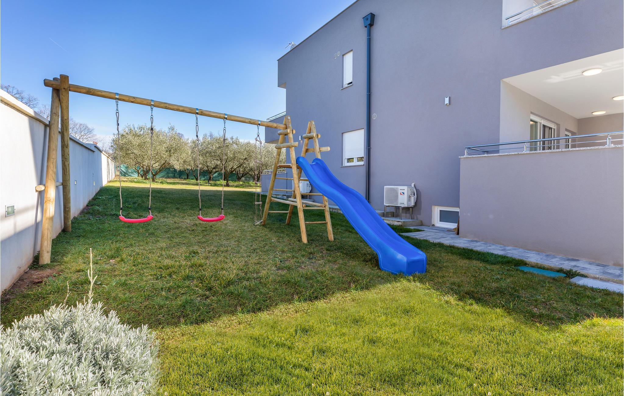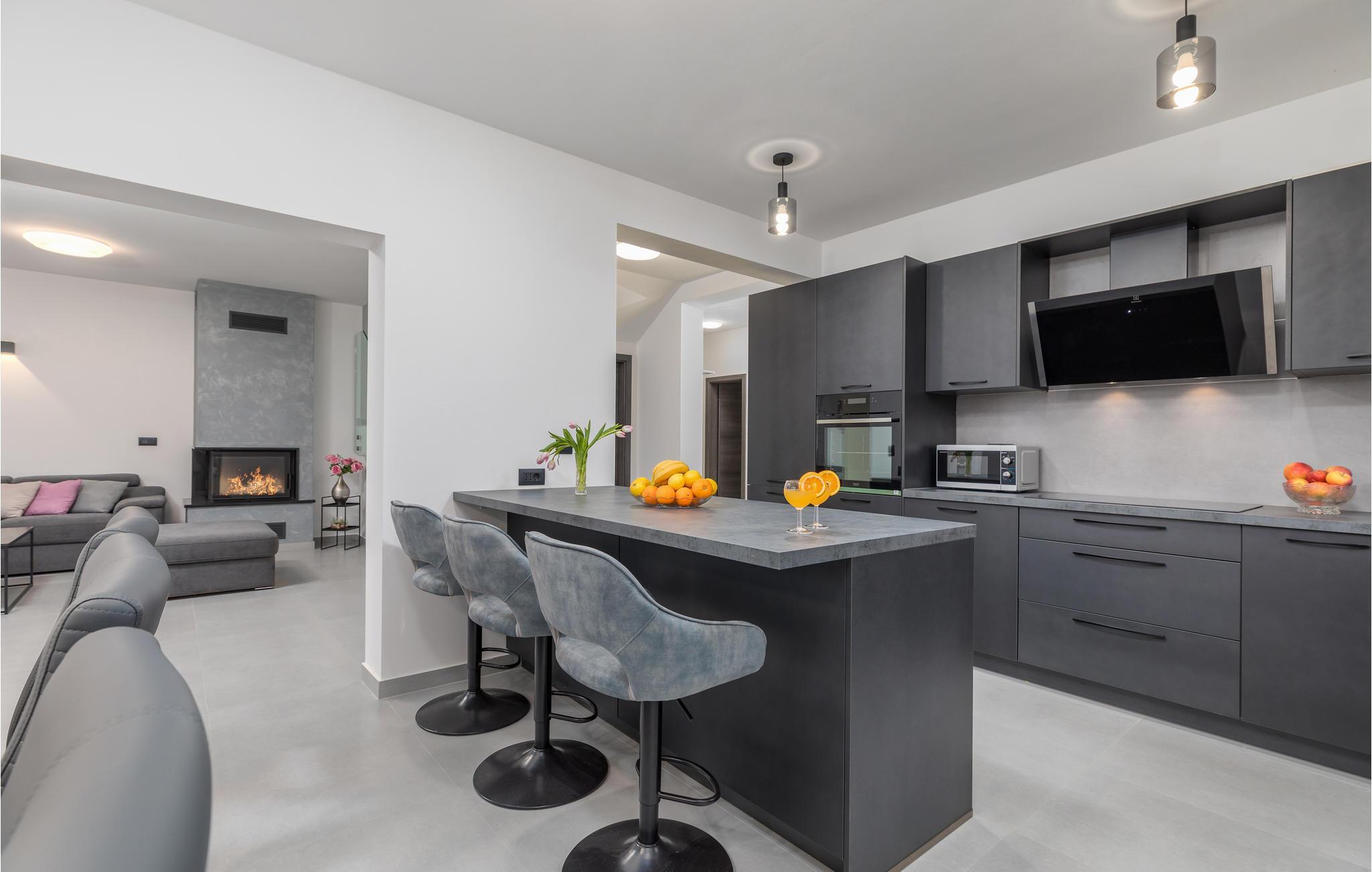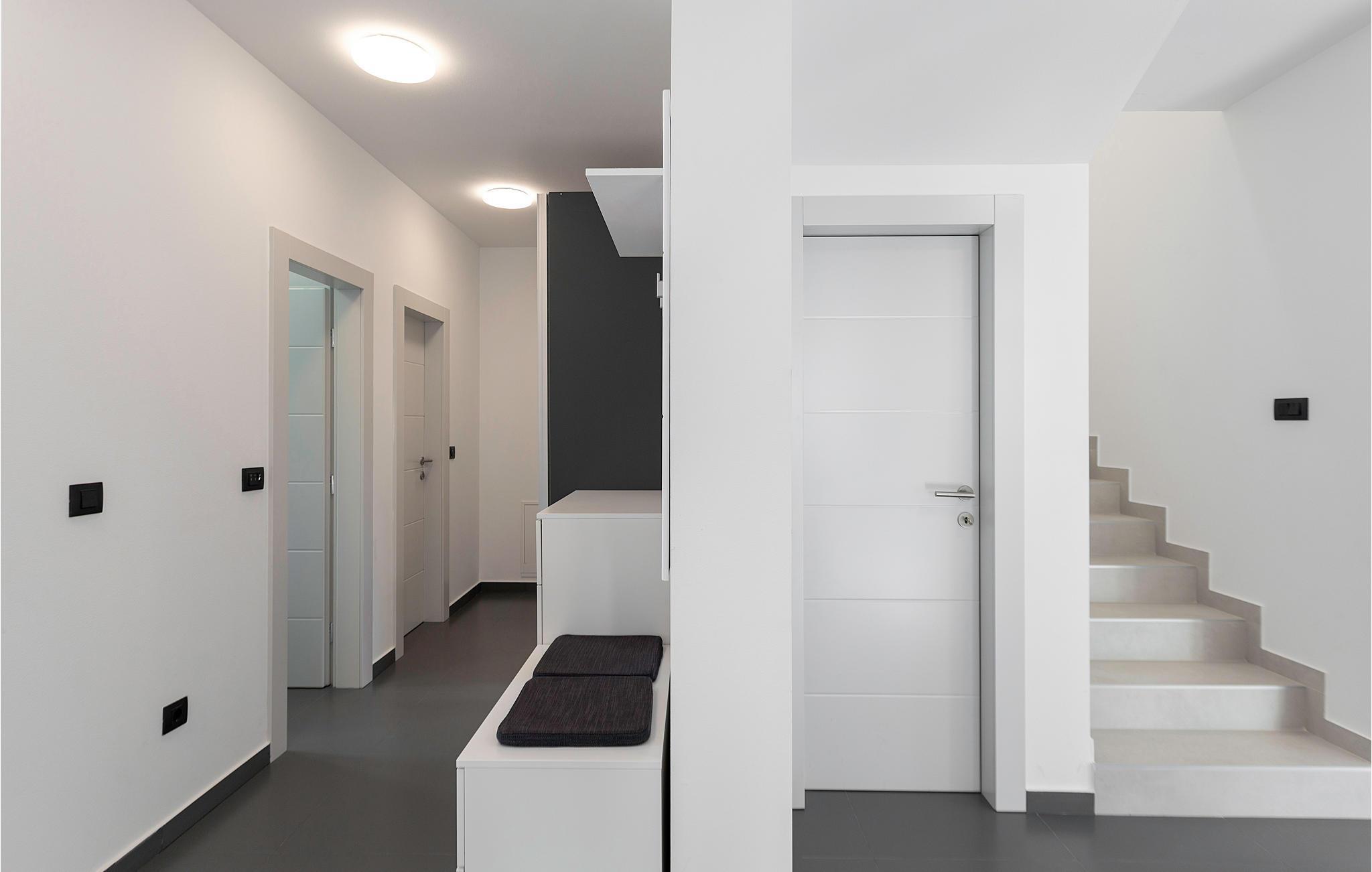 Det har en moderne design og et elegant innredet interiør. I første etasje er det en stue med utgang til terrasser, to bad, et soverom og et treningsrom, mens det i andre etasje er seks soverom, fire bad og en badstue. Fem av soverommene har terrasser, hvorav to har utsikt over bassenget og den nærliggende skogen, mens de andre terrassene har utsikt over en vakker olivenlund. Biljard, bordtennis og bordfotball er tilgjengelig. Her kan du ha det gøy, mens barna kan boltre seg på trampolinen og huskene. Under oppholdet vil du garantert ha det gøy med soling og bading i det store bassenget, og du kan nyte dine favorittretter fra grillen.