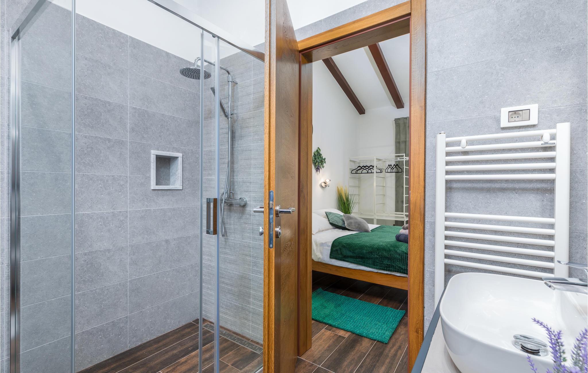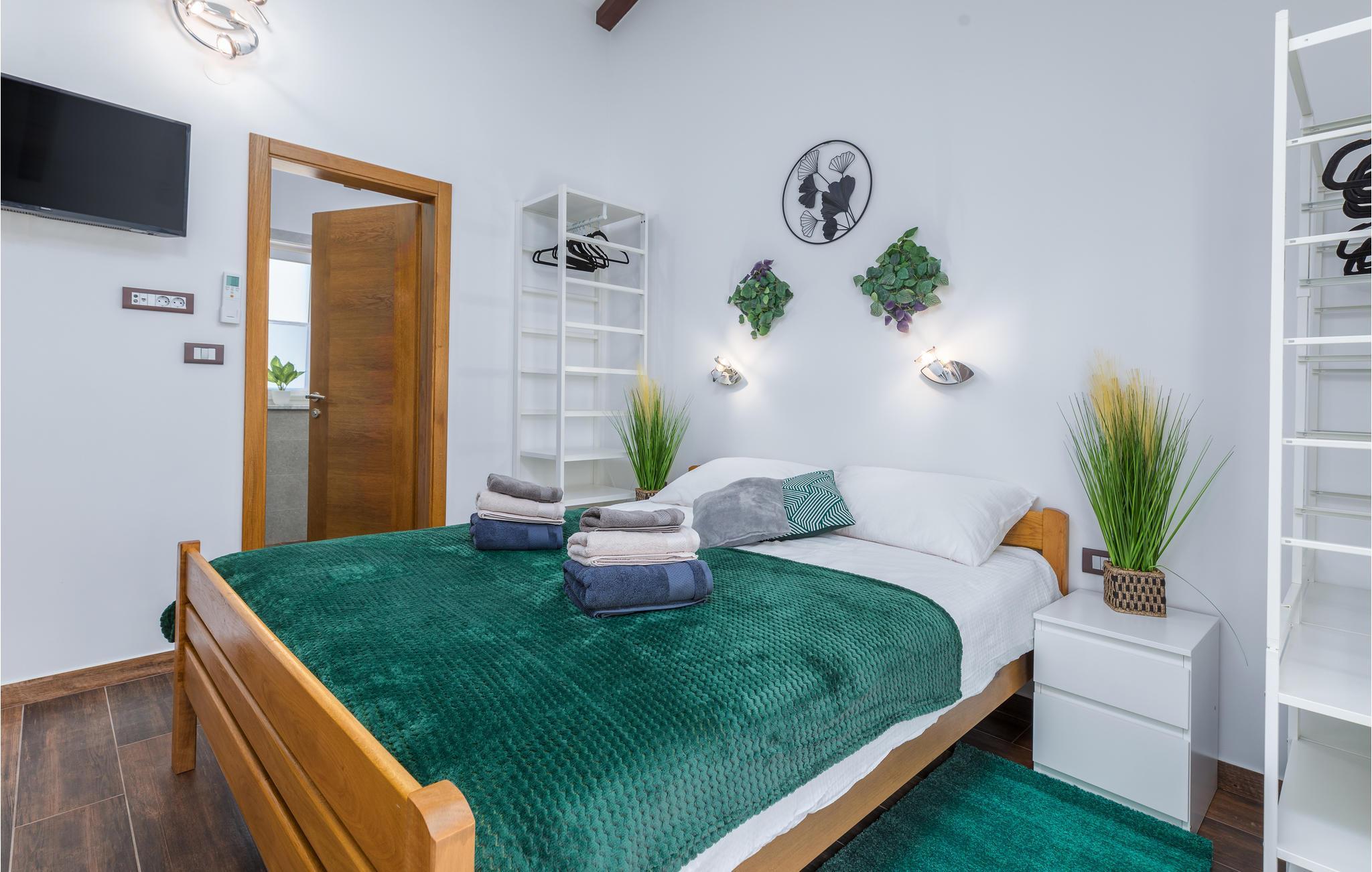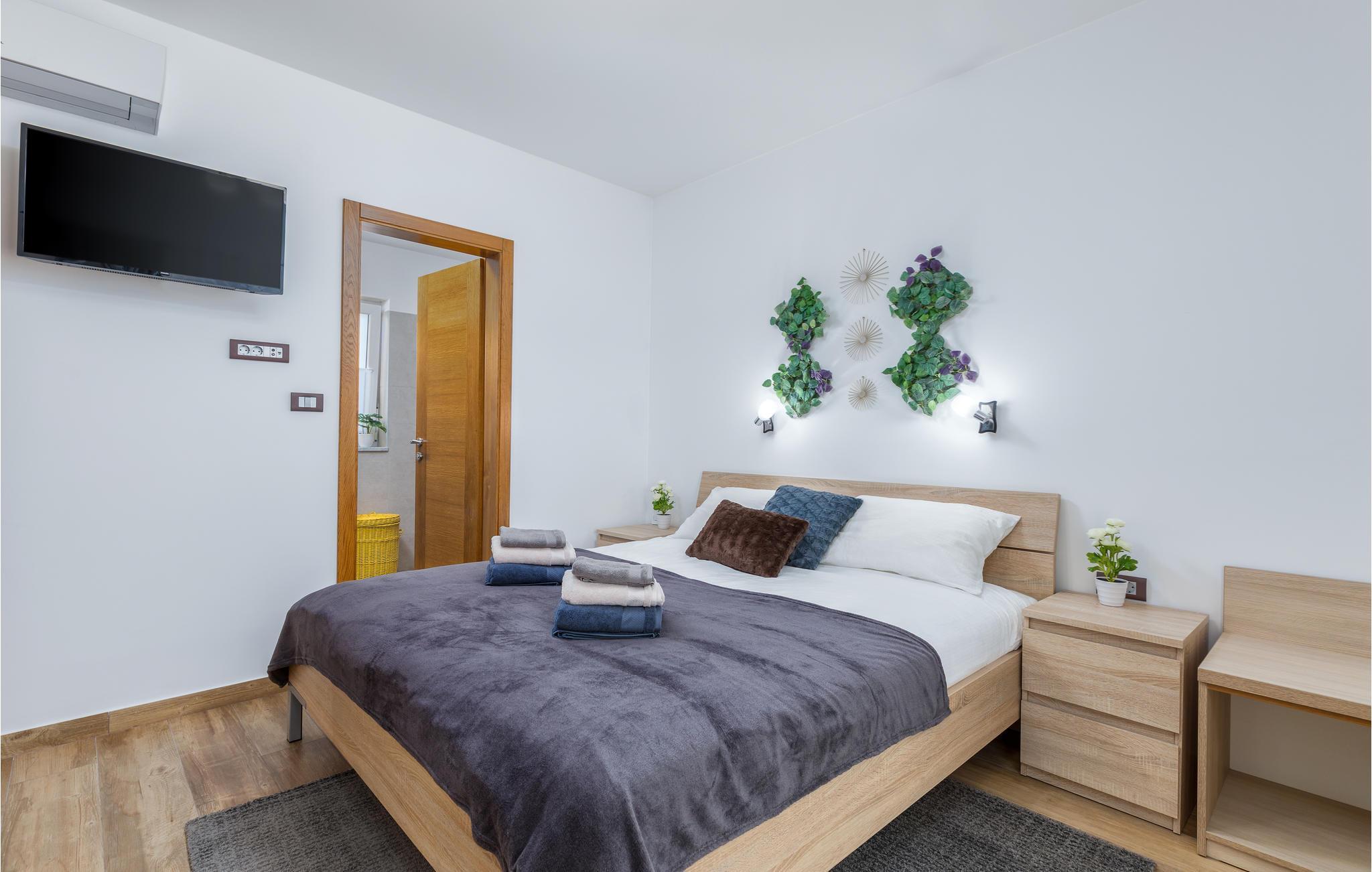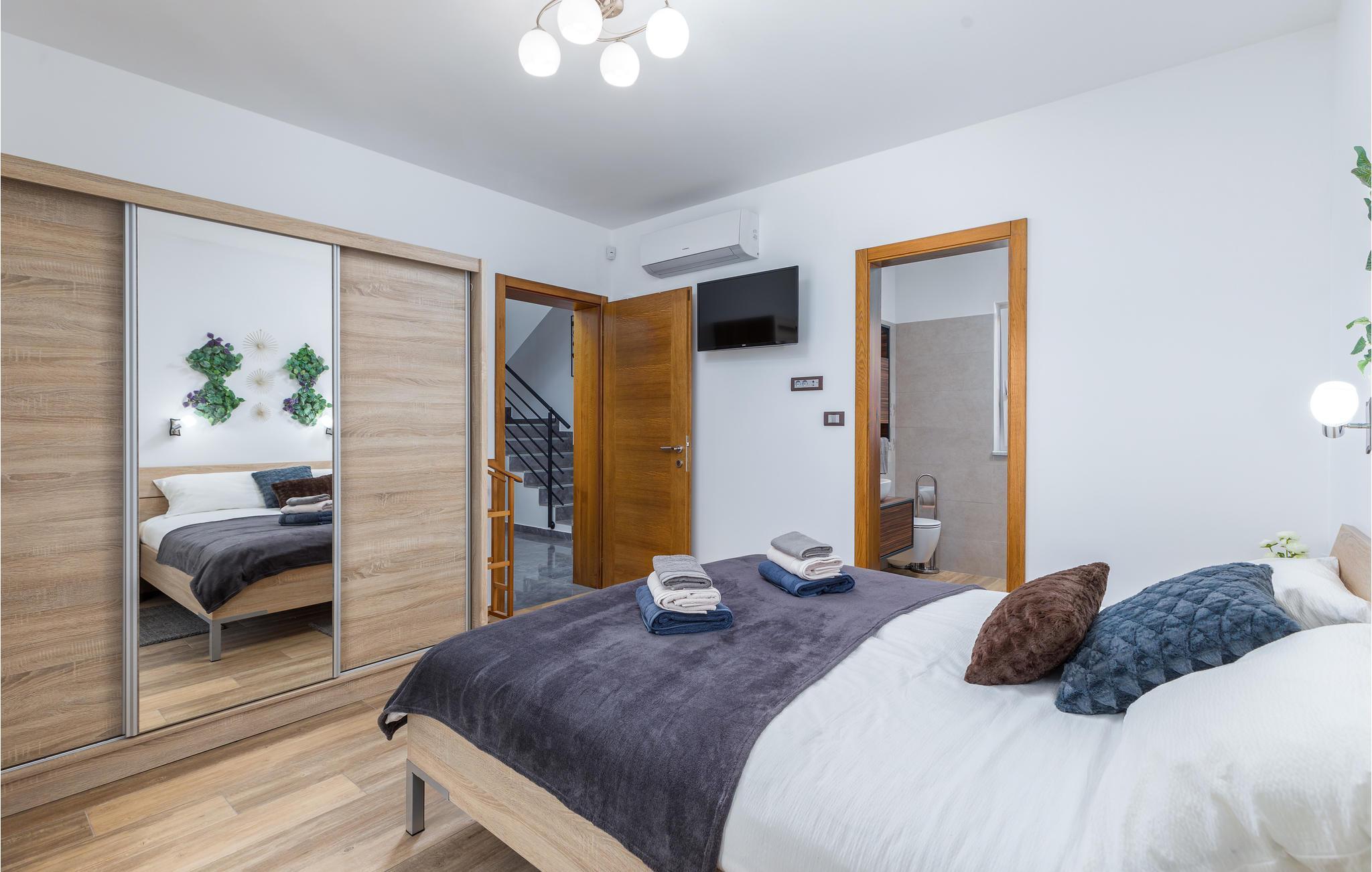 Du befinner deg i en forstad til den vakre byen Pula. De nærmeste strendene ligger bare noen få minutter unna med bil. Hopp i det forfriskende vannet eller rusle gjennom sentrum, som tilbyr flere shoppingmuligheter og en rik gastronomi. Besøk også severdigheter som det praktfulle amfiteateret, August-tempelet eller Sergier-buen. Hvis du foretrekker å oppleve mer natur, kan du dra til Fazana, som tilbyr vakre sandstrender og bukter, eller oppdage det indre av Istria. Her vil naturelskere få valuta for pengene med mange turmuligheter.