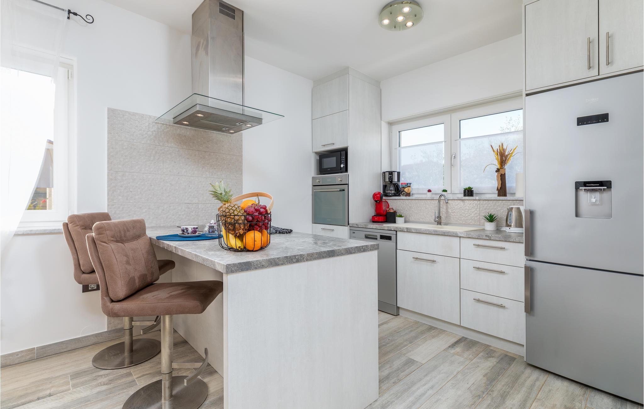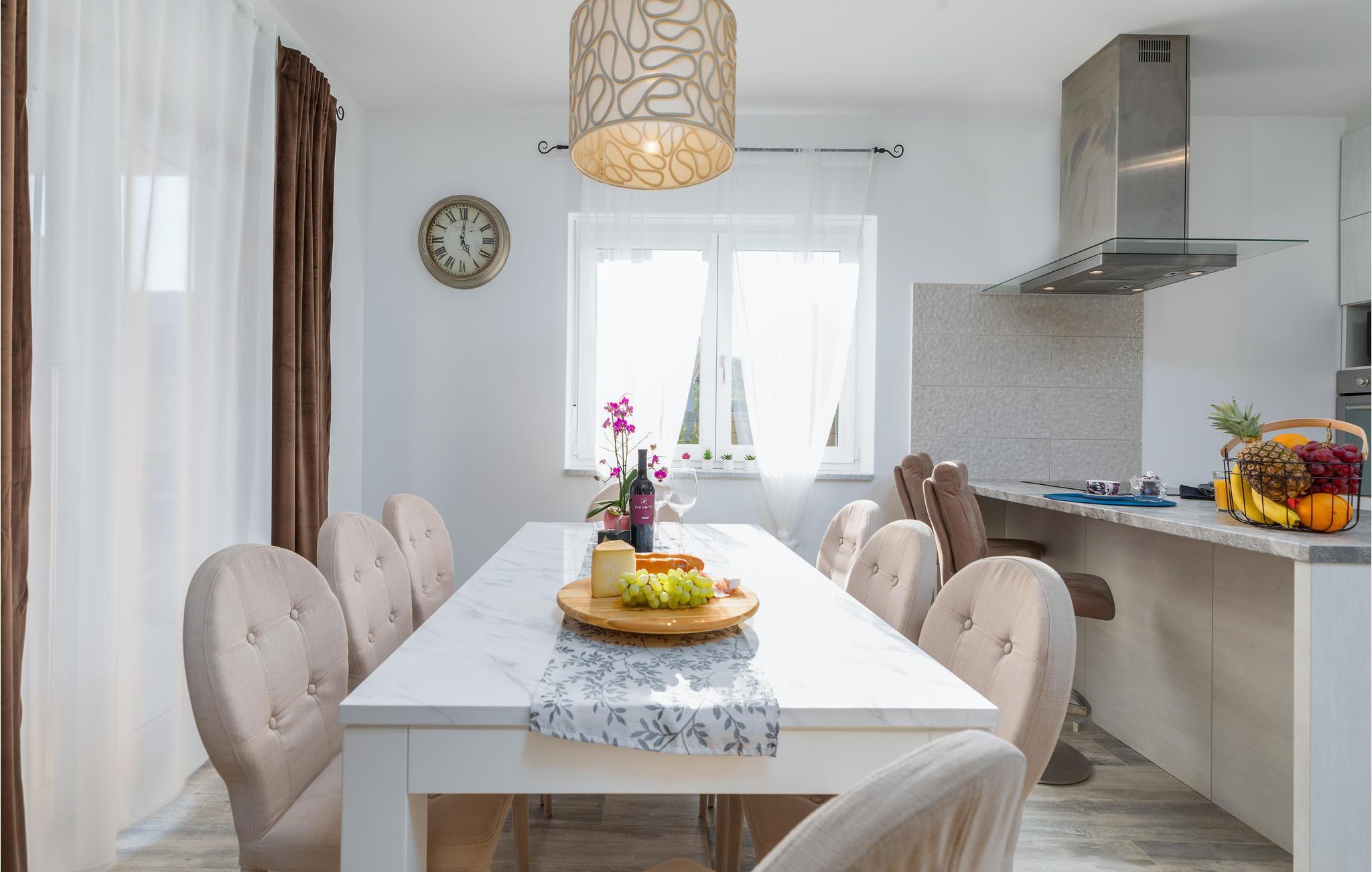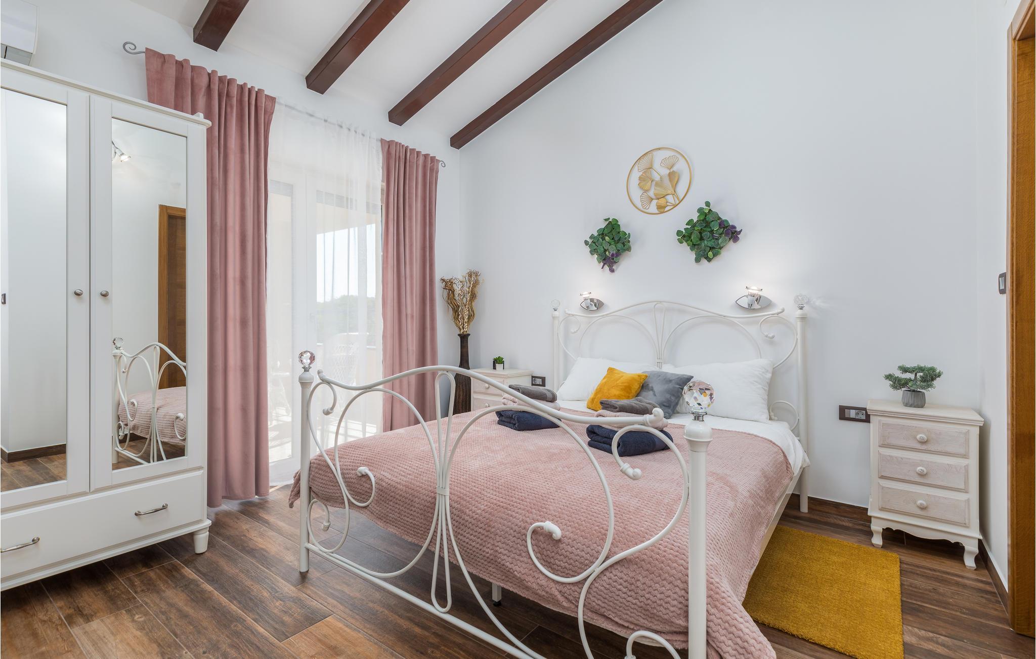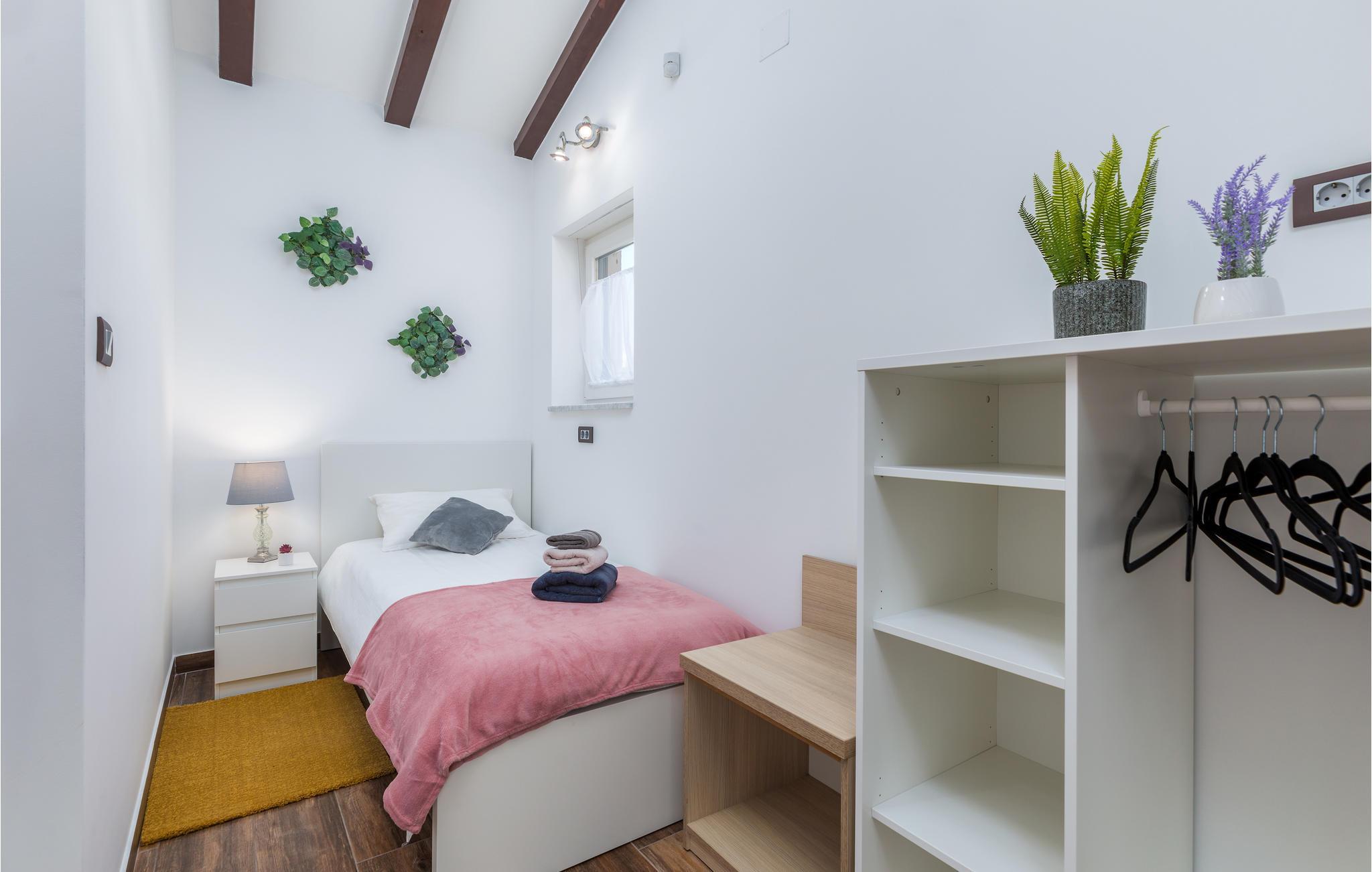 Du befinner deg i en forstad til den vakre byen Pula. De nærmeste strendene ligger bare noen få minutter unna med bil. Hopp i det forfriskende vannet eller rusle gjennom sentrum, som tilbyr flere shoppingmuligheter og en rik gastronomi. Besøk også severdigheter som det praktfulle amfiteateret, August-tempelet eller Sergier-buen. Hvis du foretrekker å oppleve mer natur, kan du dra til Fazana, som tilbyr vakre sandstrender og bukter, eller oppdage det indre av Istria. Her vil naturelskere få valuta for pengene med mange turmuligheter.