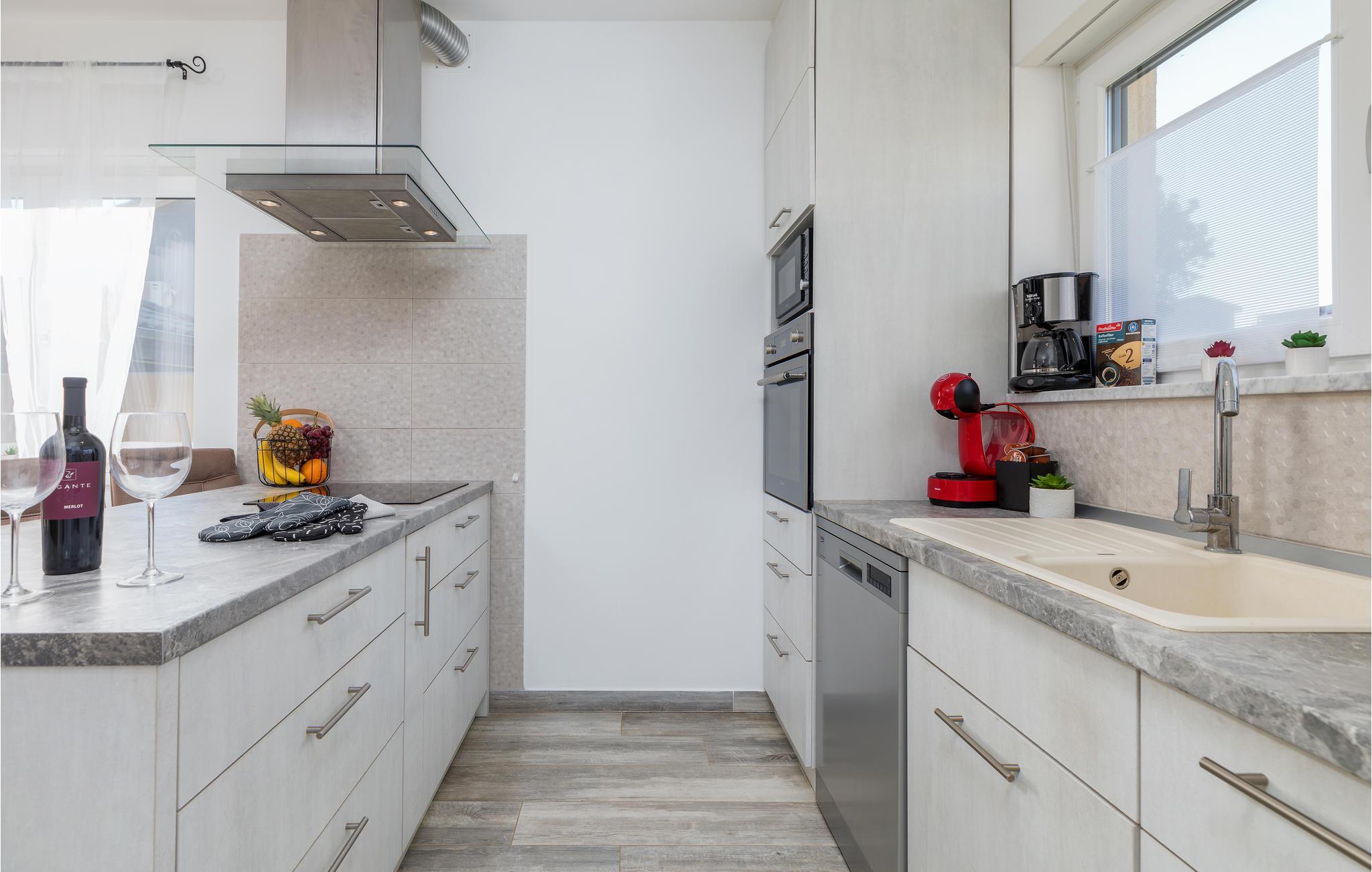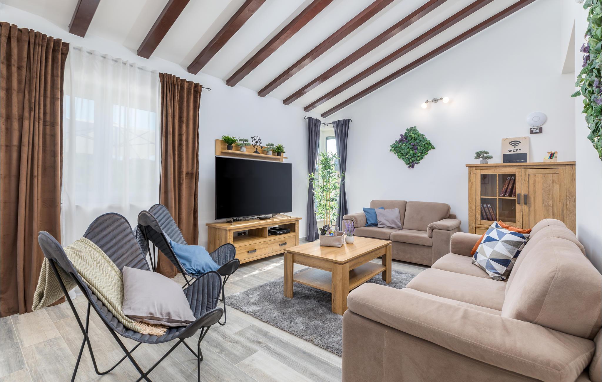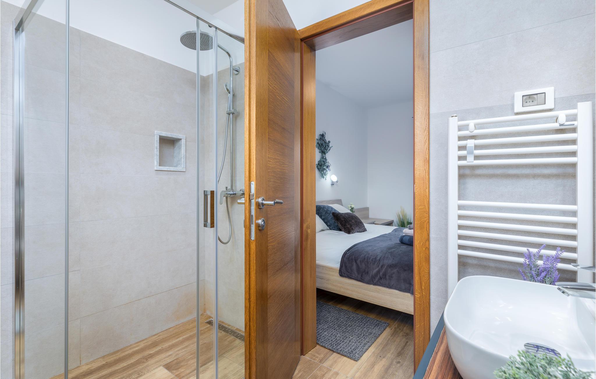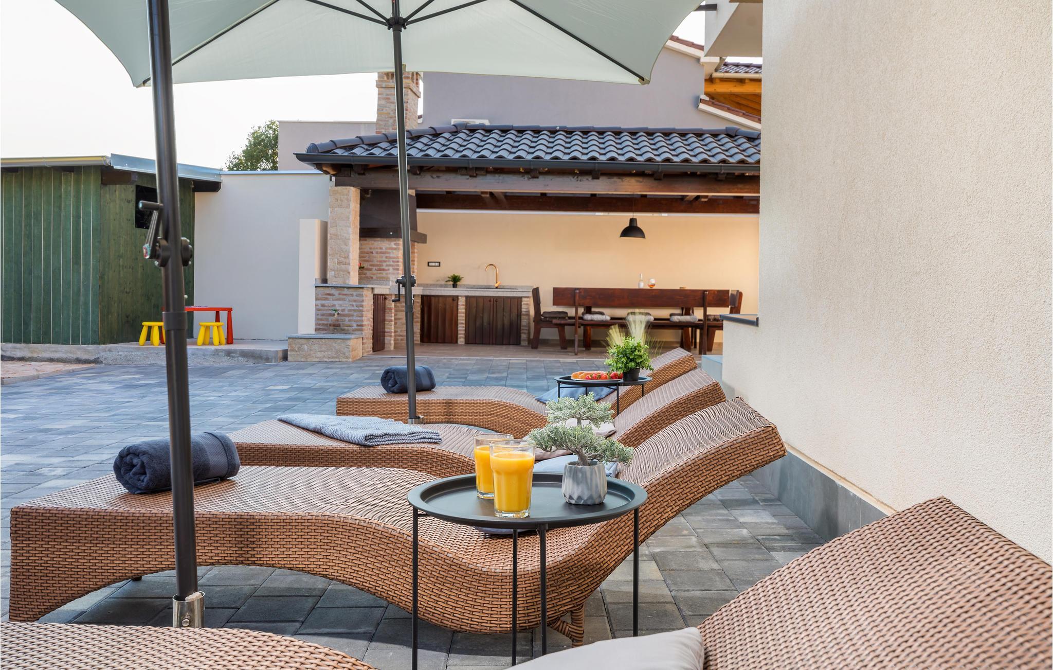 Du befinner deg i en forstad til den vakre byen Pula. De nærmeste strendene ligger bare noen få minutter unna med bil. Hopp i det forfriskende vannet eller rusle gjennom sentrum, som tilbyr flere shoppingmuligheter og en rik gastronomi. Besøk også severdigheter som det praktfulle amfiteateret, August-tempelet eller Sergier-buen. Hvis du foretrekker å oppleve mer natur, kan du dra til Fazana, som tilbyr vakre sandstrender og bukter, eller oppdage det indre av Istria. Her vil naturelskere få valuta for pengene med mange turmuligheter.