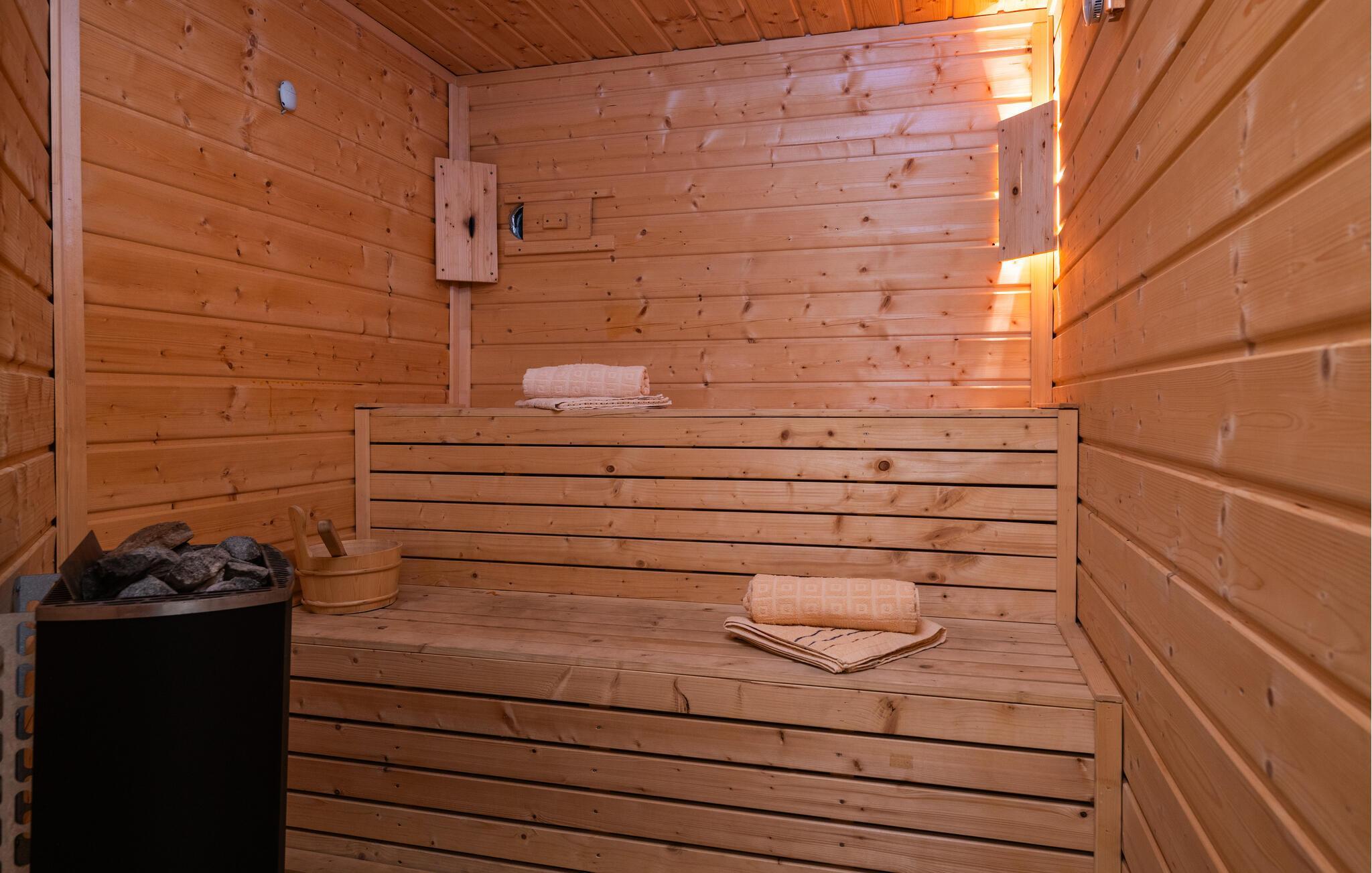 Det allsidige uteområdet tiltrekker seg gjester med et fantastisk basseng og en romslig solterrasse med komfortable solsenger. La barna boltre seg på trampolinen, organiser en volleyballturnering, og feir tiden sammen med uforglemmelige grillkvelder ved det stemningsfullt opplyste bassenget.