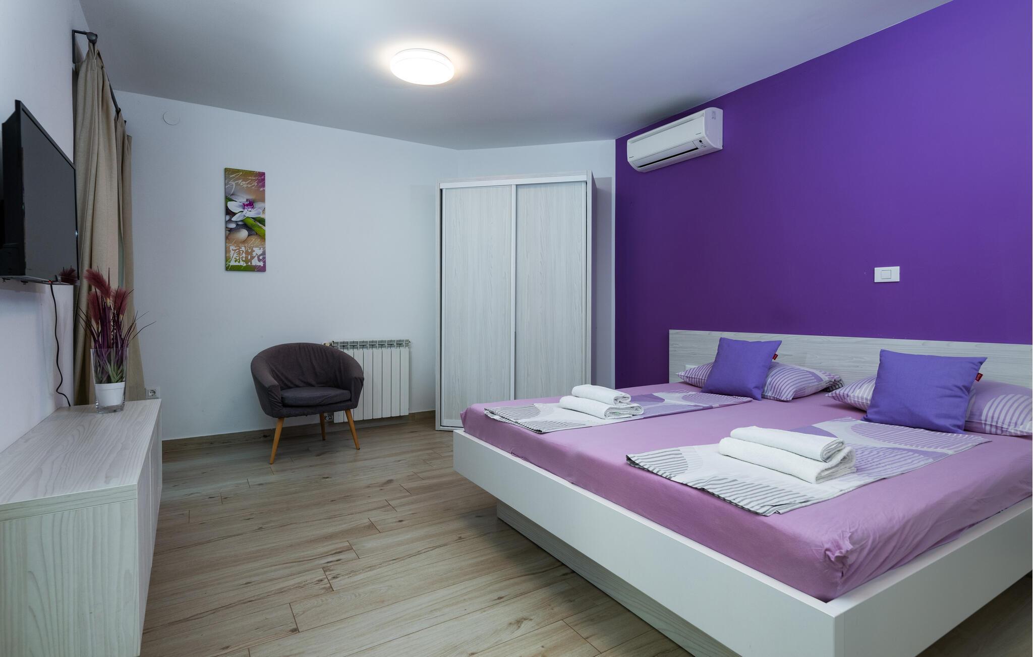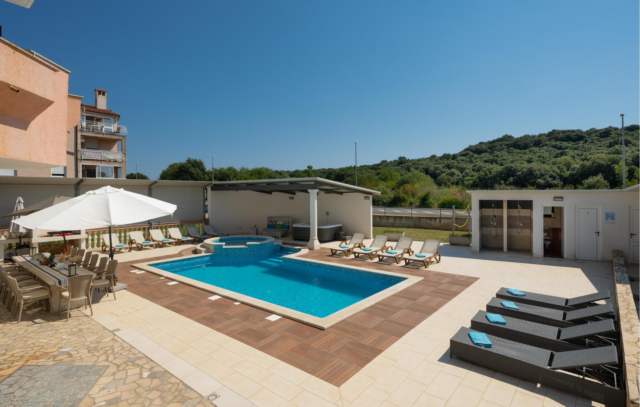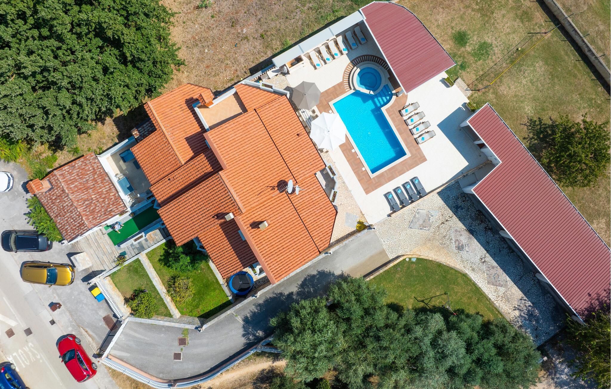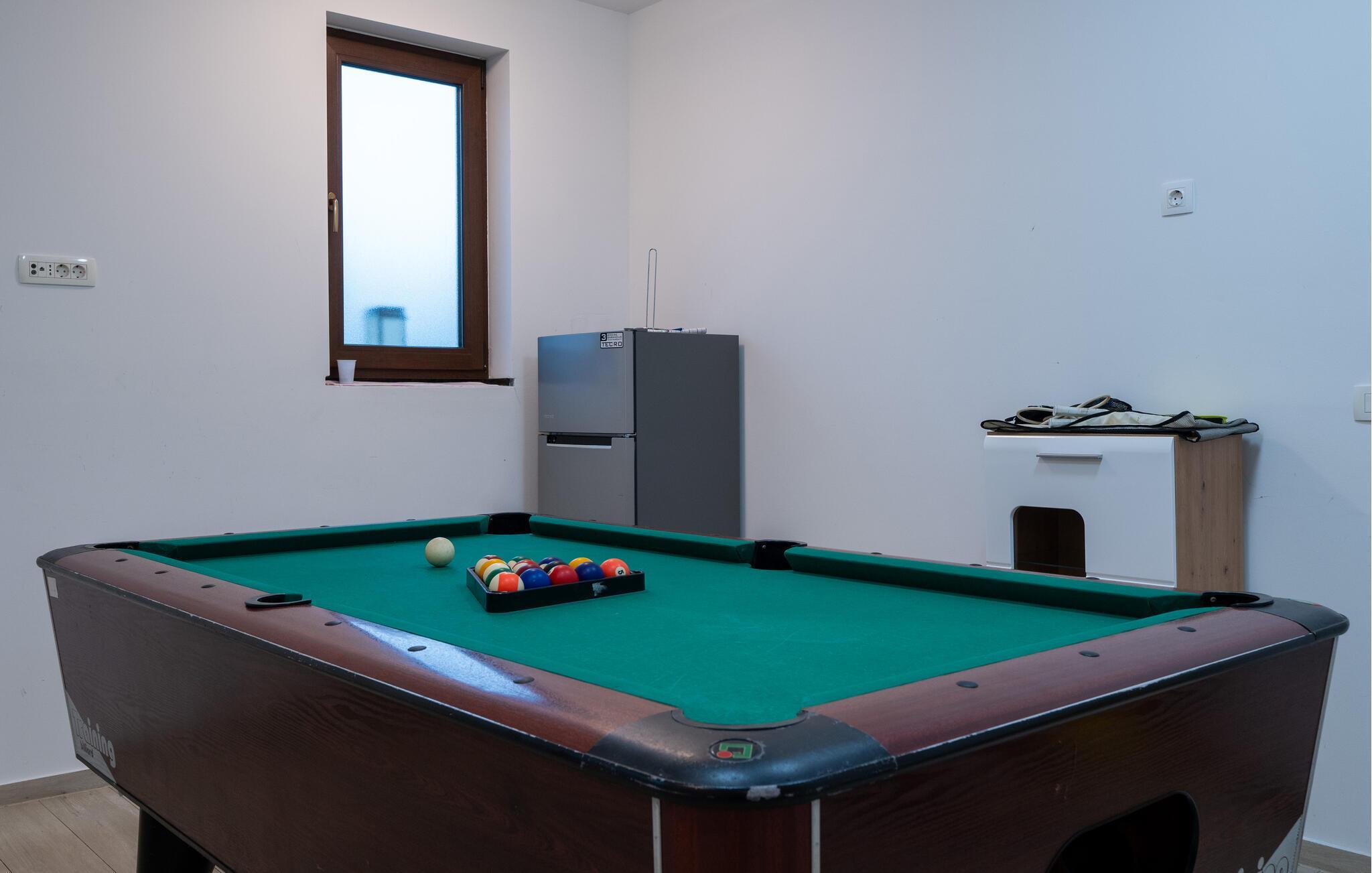 Sammen med storfamilien eller vennegjengen kan dere dra nytte av de mange ekstrafunksjonene i dette komfortable feriehuset og nyte nærheten til den livlige byen Pula. Lag mat i store grupper, slå av en prat over lange måltider, møt opp til koselige spillkvelder, konkurrer ved biljardbordet eller unn dere selv en hyggelig stund i badstuen eller boblebadet.