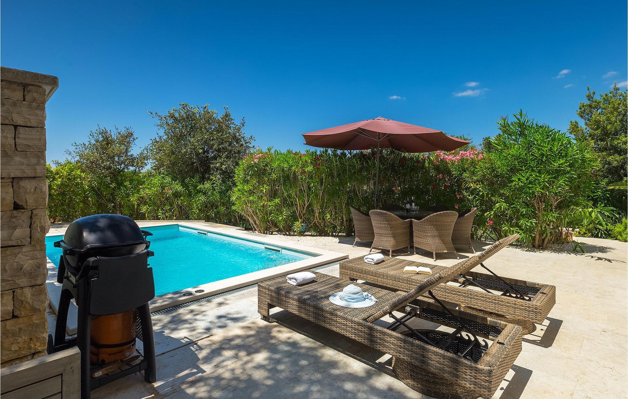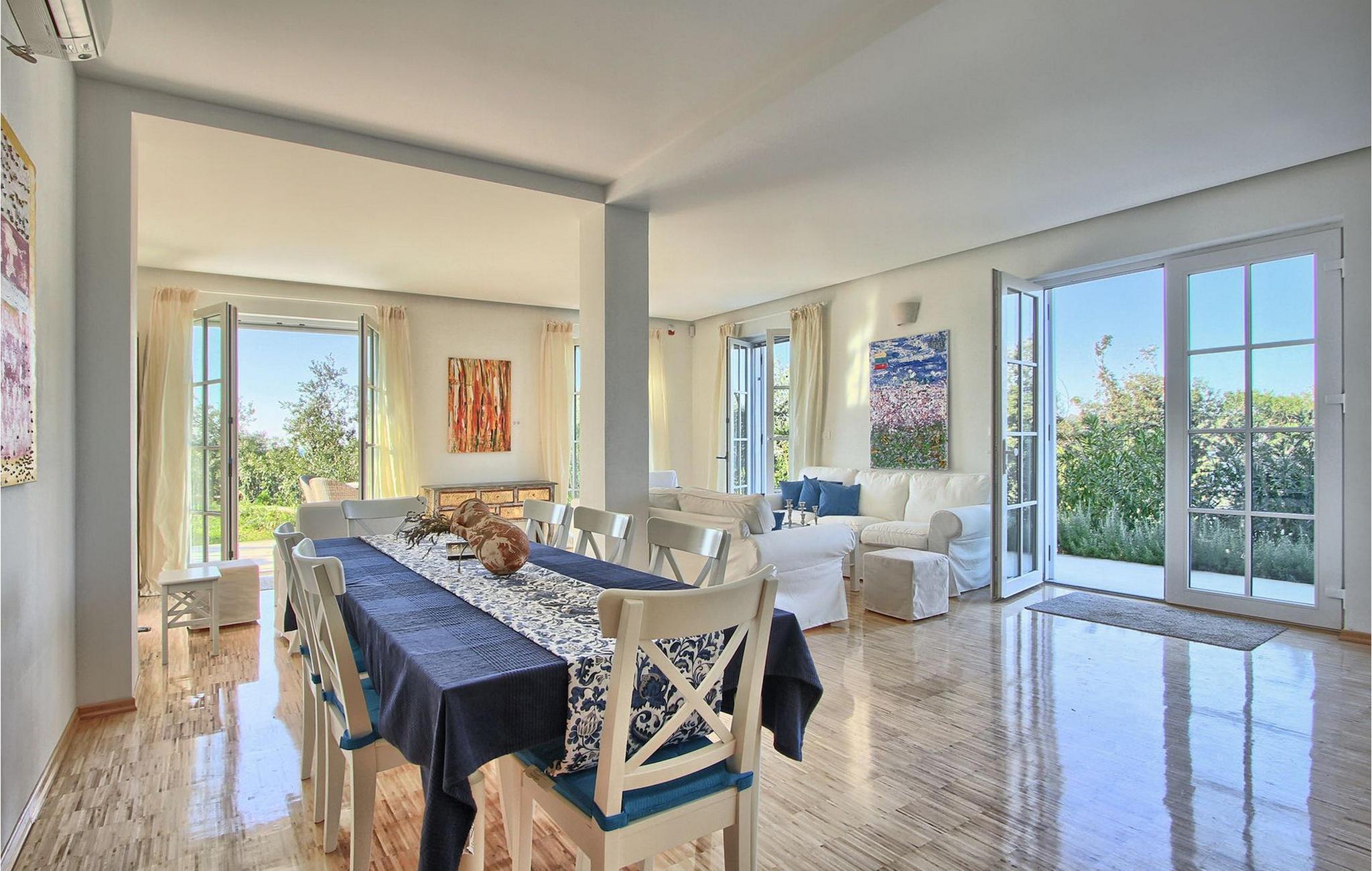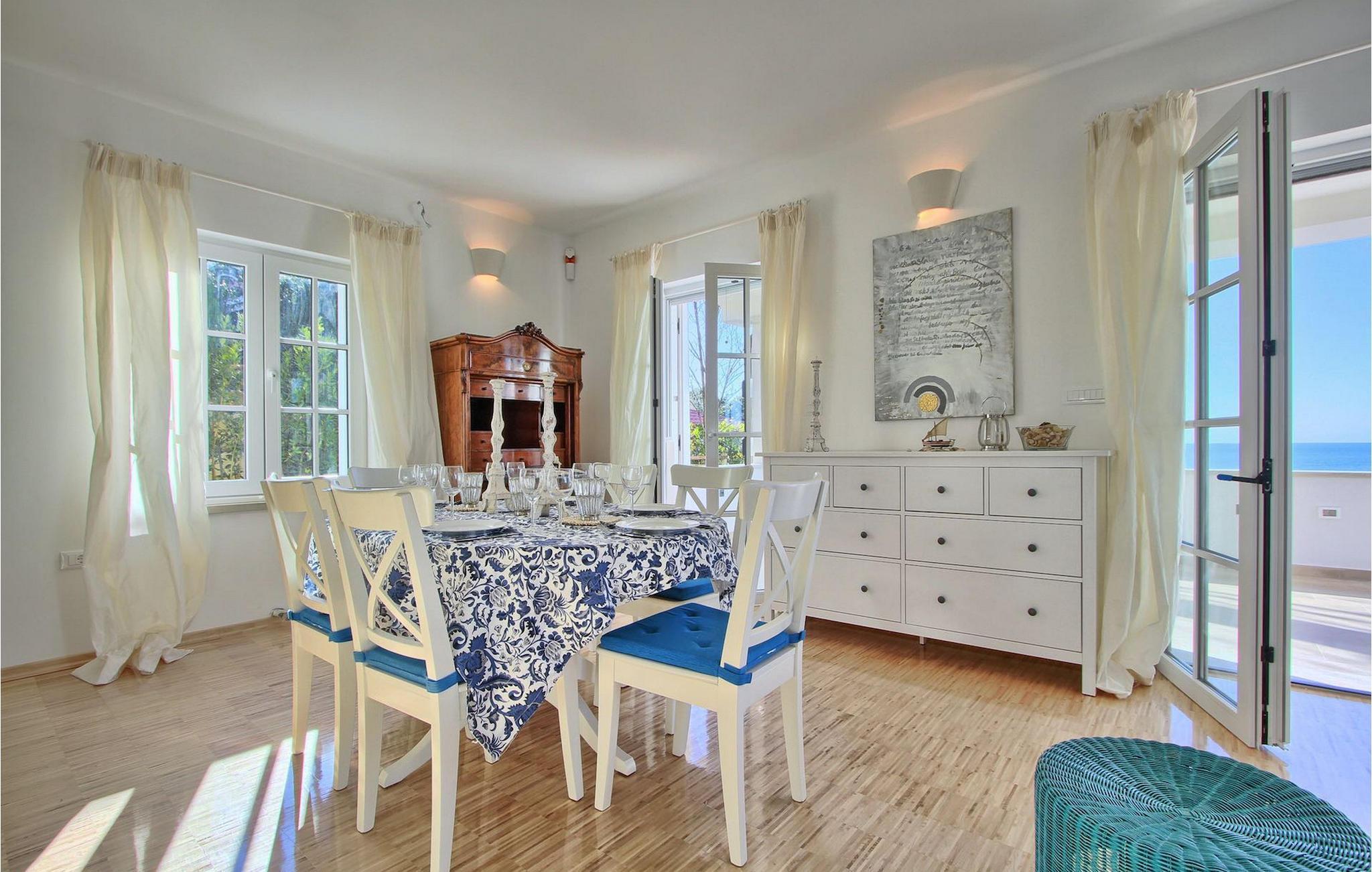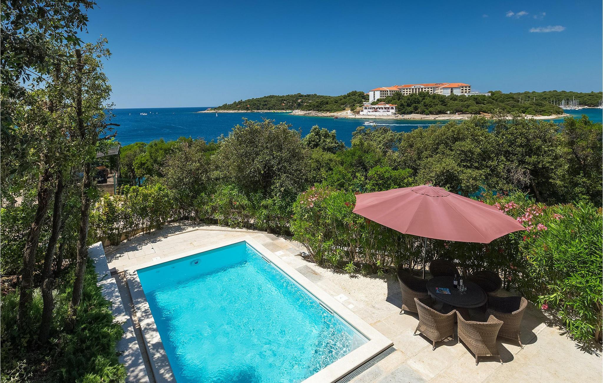 Denne vakre villaen ved stranden er ideell for større grupper eller familier som reiser sammen. Villaen har sin egen private strand hvor du kan nyte solen og havet på best mulig måte. Den har plass til opptil 12 personer i 6 soverom. Rommene er velutstyrte med antikke og moderne møbler. Eiendommen har totalt 4 bad i marmor. Hver etasje har 3 soverom og 2 bad. I første etasje og andre etasje er det en romslig stue og spisestue samt et velutstyrt kjøkken. I første etasje er det en vakker, stor terrasse med fantastisk utsikt over havet. I den velstelte hagen kan du slappe av i salongen, eller ta noen få skritt og nyte stranden. Lekeområde for barn - villaen har en overbygd uteservering med barnehjørne for våre yngre gjester. Villa Del Mar er utstyrt med Villeroy Boch-porselen og De Longhi-kaffemaskin. Barneseng og barnestol er tilgjengelig på forespørsel. Vannsport, snorkling, dykking, surfing eller kanopadling kan prøves direkte på stranden, som ligger bare 20 m fra huset.denne vakre strandvillaen har en privat strand. Den ligger i den lille kystbyen Pjeana Uvala (sandbukt), med flere gode restauranter innen gangavstand og en båthavn i nærheten.