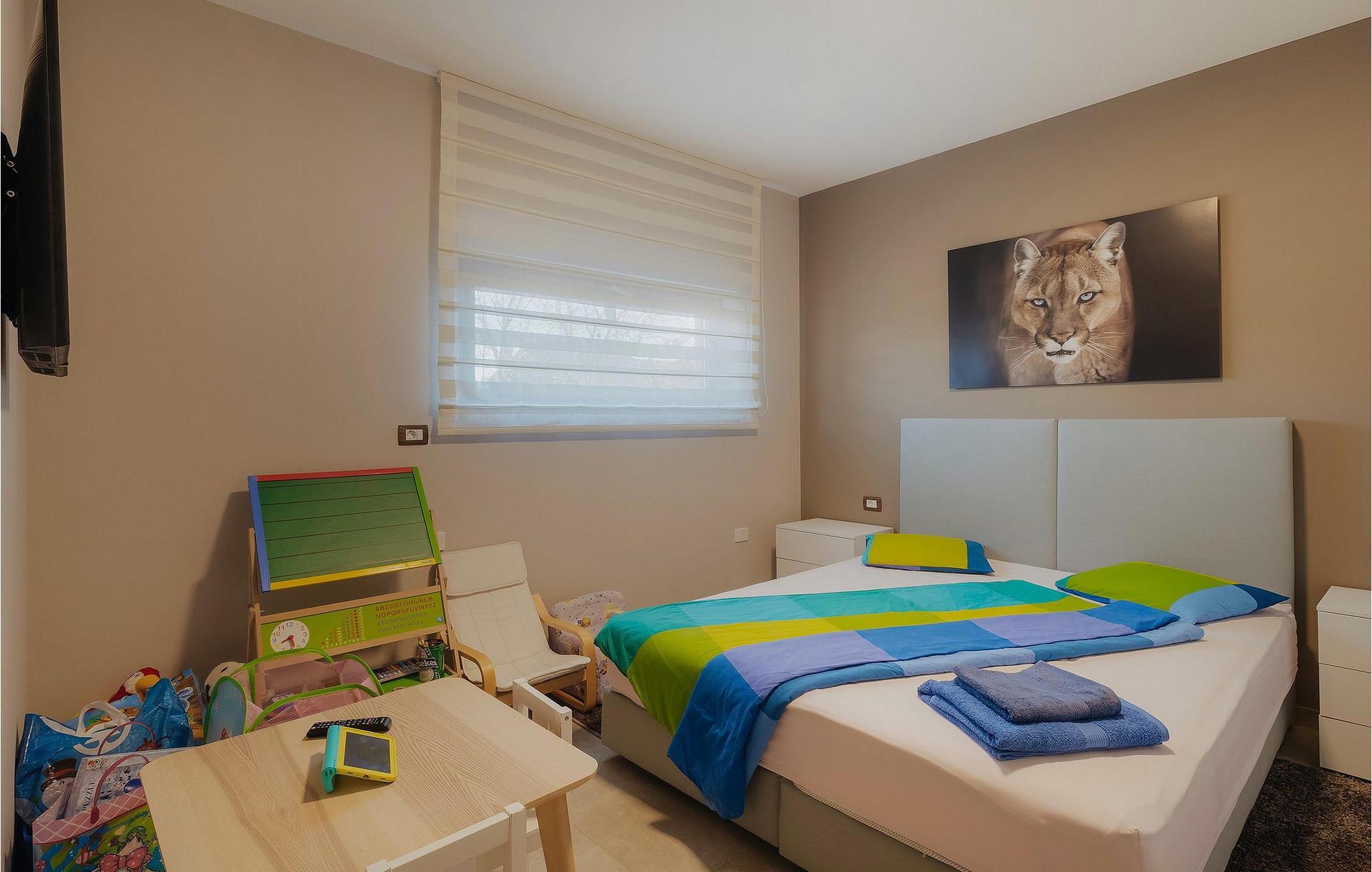 Villa Lena Lux er perfekt for familier som setter pris på avslapping og ro i en luksuriøs atmosfære på ferie - en ekte perle! Villa Lena Lux ligger i et rolig boligområde i utkanten av Pula. Alt du trenger for en perfekt ferie med familien er innen rekkevidde. Det gamle sentrum ligger bare 15 minutters gange unna, og nærmeste strand ligger i underkant av 3 km unna. Pula er en av de vakreste byene i Kroatia, og byens varemerke er Arenaen, der det ofte holdes konserter og utstillinger om sommeren. Her er det mange monumenter som minner om romertiden, f.eks. den gylne port eller Augustus-tempelet. Besøk en av de utallige strendene, fransiskanerklosteret eller bare nyt en spasertur gjennom byen. Et stort utvalg av restauranter og kafeer, butikker, suvenirbutikker og boder gjør denne byen så livlig og tiltrekker seg både lokalbefolkningen og turister. Byene Medulin og Fazana ligger ikke langt unna. Opplev stemningen i disse sjarmerende fiskerlandsbyene. Eller ta en båttur til Brijuni nasjonalpark med sin uberørte natur og kulturhistoriske arv. Pula er virkelig unik, allsidig og etterlater ingenting å ønske.