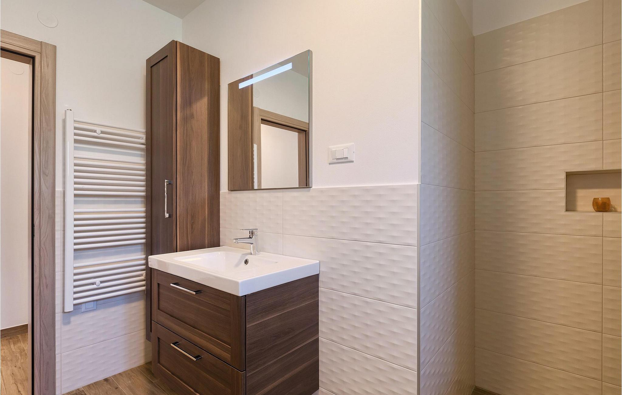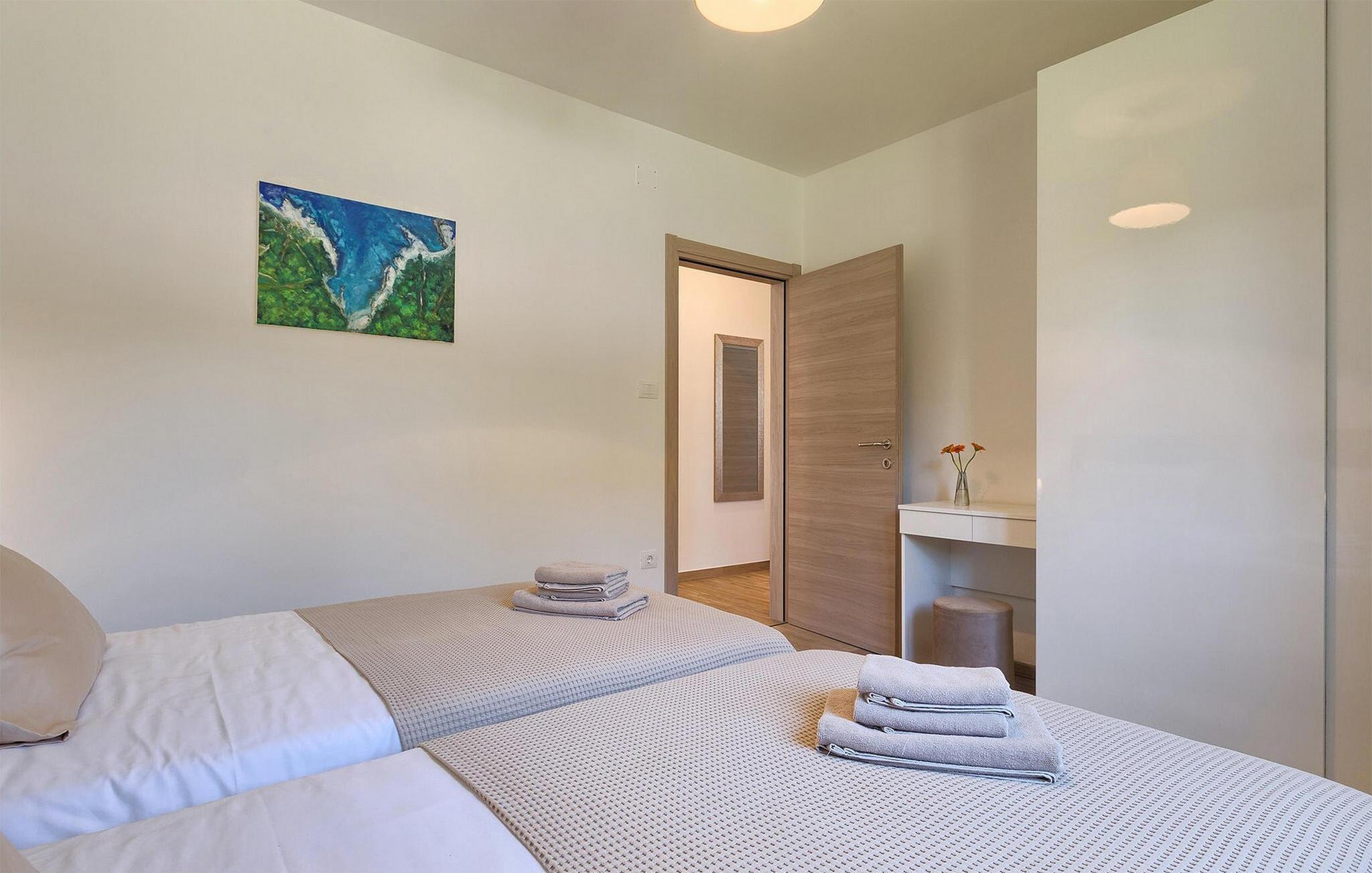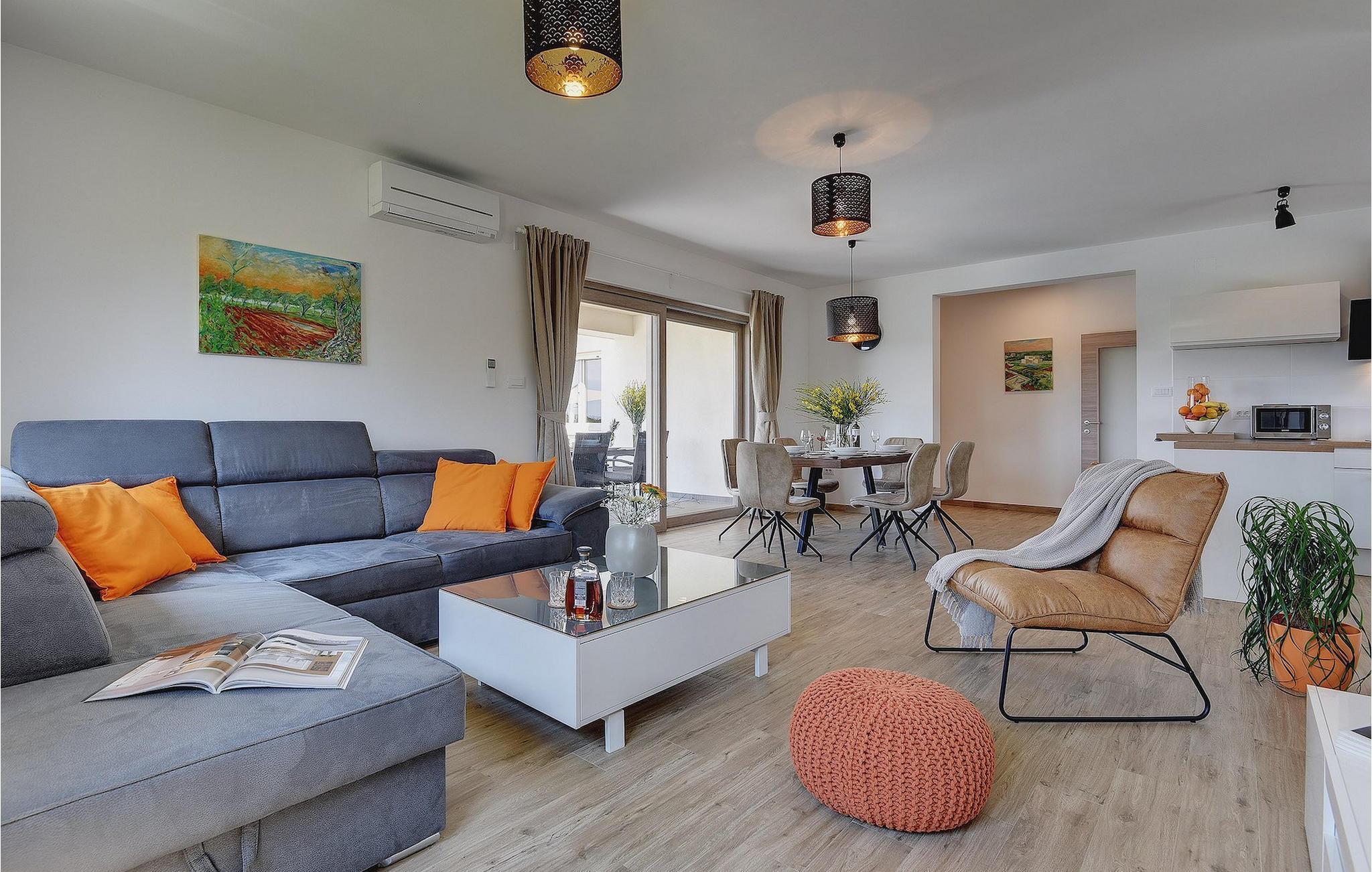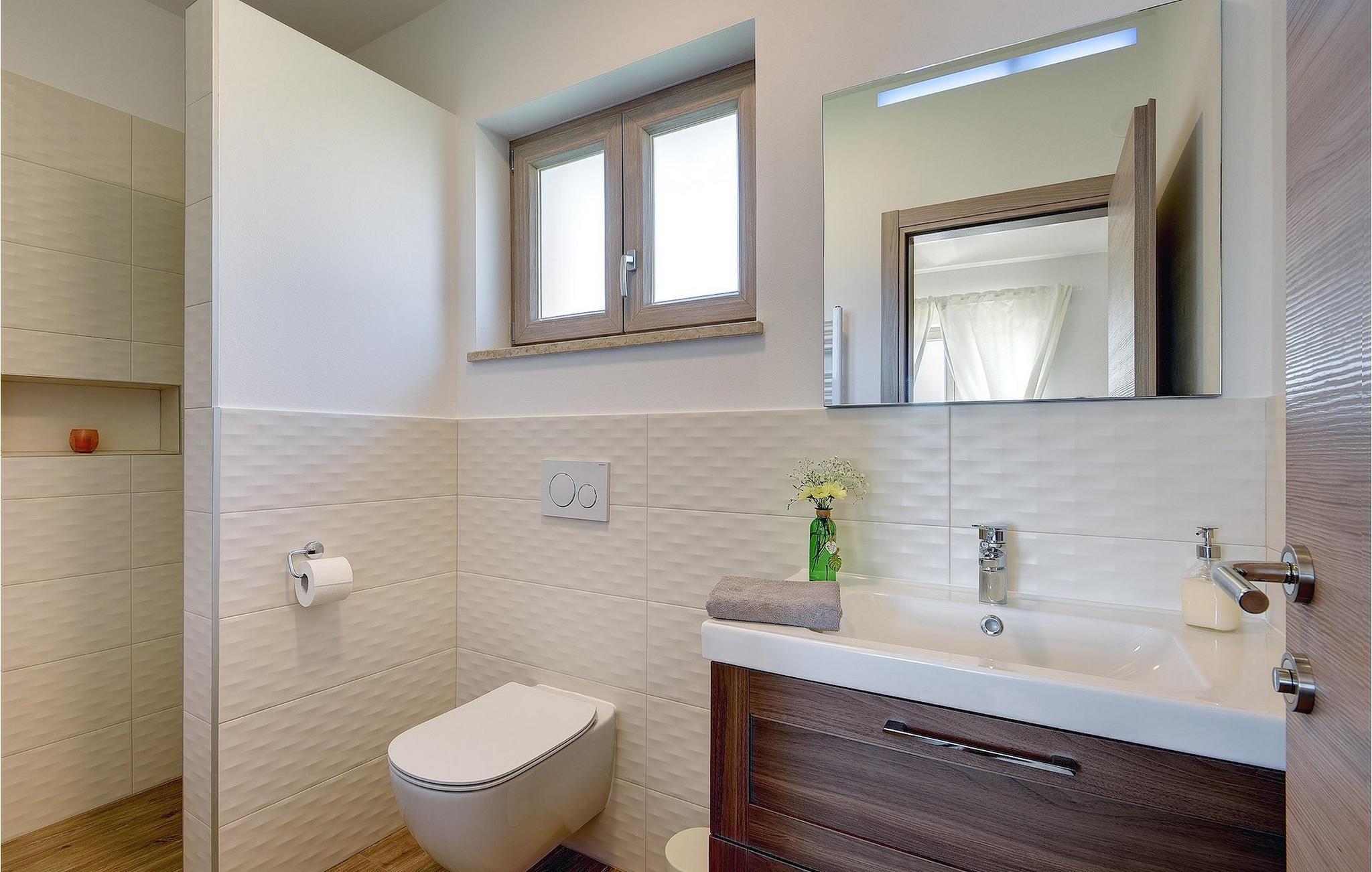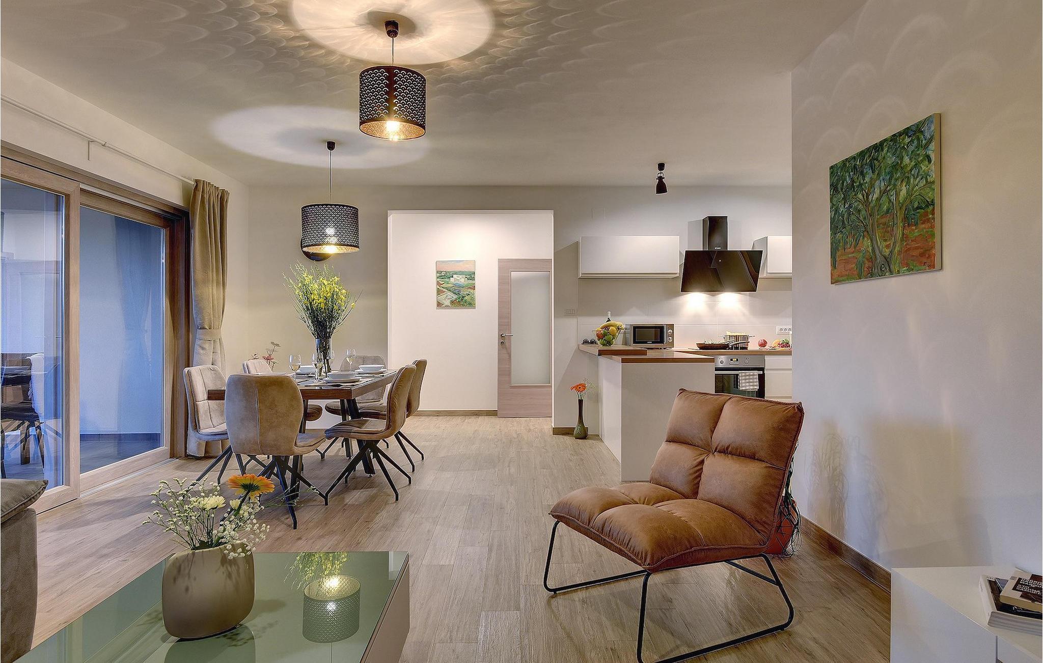 Villaen har to komfortable og moderne soverom, hvorav det ene til og med har eget bad. Begge badene i denne villaen har imidlertid gulvvarme, noe som gir deg ultimat komfort under oppholdet, uansett årstid. Men du trenger heller ikke bekymre deg for sommervarmen, for denne moderne villaen har aircondition! Den åpne planløsningen med stue, spisestue og kjøkken gjør det mulig å tilbringe tid sammen, samtidig som alle kan finne sin personlige favorittplass. Hvis du er mesterkokken i gruppen, kan du nyte det fullt utstyrte kjøkkenet og tilberede et måltid til dine kjære. Det er mange muligheter for å spise sammen, enten ved spisebordet innendørs eller utendørs. Hvis du foretrekker å lage mat i frisk luft, står gassgrillen alltid til din disposisjon. Resten av gruppen kan slappe av på solstolene eller ta en dukkert i bassenget og hoppe uti for å hjelpe til om nødvendig. De minste vil ikke vite hvilken aktivitet de skal velge først - huskene og sklien ligger rett bak bassenget på plenen. Med de mange fordelene som denne villaen tilbyr, vil alle finne en plass for seg selv, slik at dere kan nyte ferien sammen, men også hver for dere, så mye som mulig! Beliggenheten til denne villaen er rett og slett perfekt: bare 4 km fra de første strendene og nær sentrum av Pula. På den ene siden er Istria det ideelle valget for deg som ønsker å nyte uberørt natur og sjarmen i små, tradisjonelle og for det meste middelalderske byer. På den andre siden er turistbyenes kjas og mas bare en kort kjøretur unna villaen. Pula er utvilsomt Istrias sentrum når det gjelder kultur og tradisjon. Byen nådde sin storhetstid i romertiden, og har etterlatt seg mange spor, blant annet det berømte amfiteateret. Pula byr på en rekke fritidsaktiviteter som idrettsanlegg, barer, restauranter, nattklubber og organiserte turer, f.eks. til Brijuni nasjonalpark. I likhet med mange andre kystbyer er Pula også kjent for sine vakre strender og det krystallklare havet. De frodige skogene, de flotte strendene og middelhavsklimaet gjør Pula til et ideelt reisemål for badegjester.