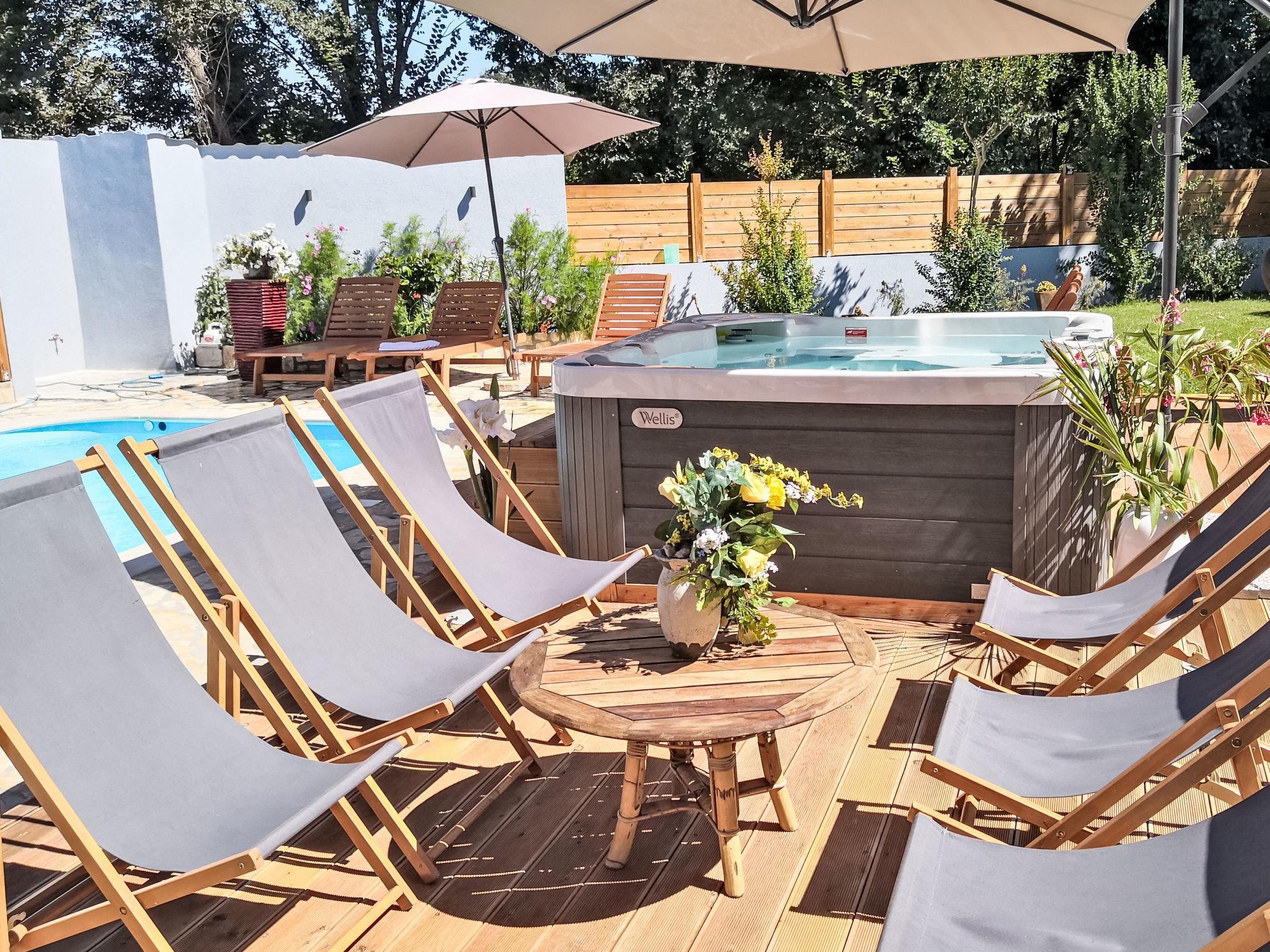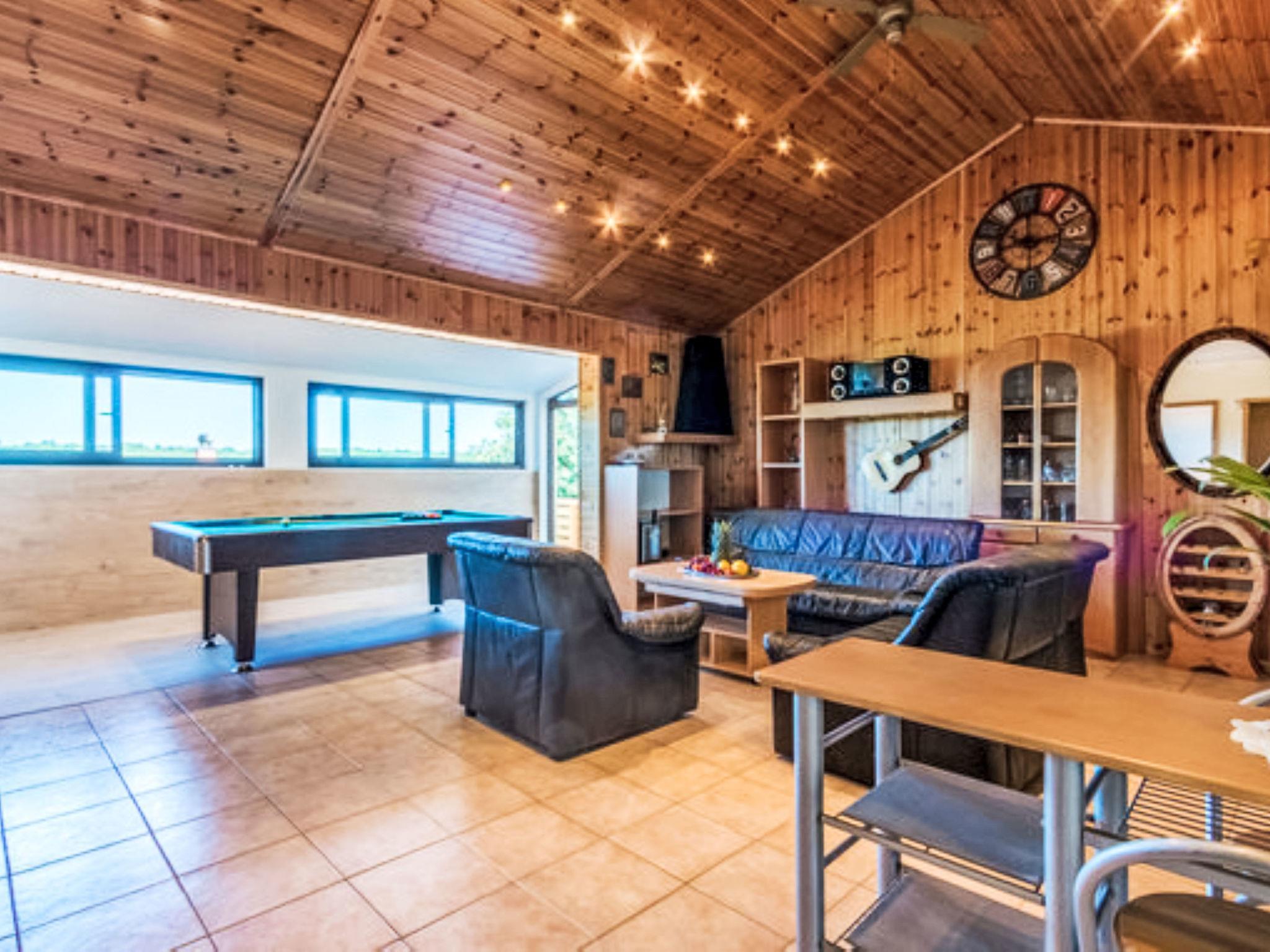 8-room house 233 m2 on 2 levels. Living/dining room with satellite TV (flat screen). Entrance hall with air conditioning. 2 rooms, each room with 1 french bed (160 cm, length 200 cm). 1 room with 2 beds (90 cm, length 200 cm). 1 room with 1 double bed (2 x 90 cm, length 200 cm). Open kitchen (oven, dishwasher, 4 ceramic glass hob hotplates, kettle, microwave, freezer, electric coffee machine). 3 showers/WC. Upper floor: (exterior staircase) living/dining room with satellite TV (flat screen), air conditioning. Exit to the terrace. 2 rooms, each room with 1 french bed (180 cm, length 200 cm). Open kitchen (4 gas rings, freezer). Bath/shower/WC. Terrace 15 m2. Deck chairs. View of the countryside. Facilities: washing machine, hair dryer. Internet (WiFi, free). Maximum 1 pet/ dog allowed.