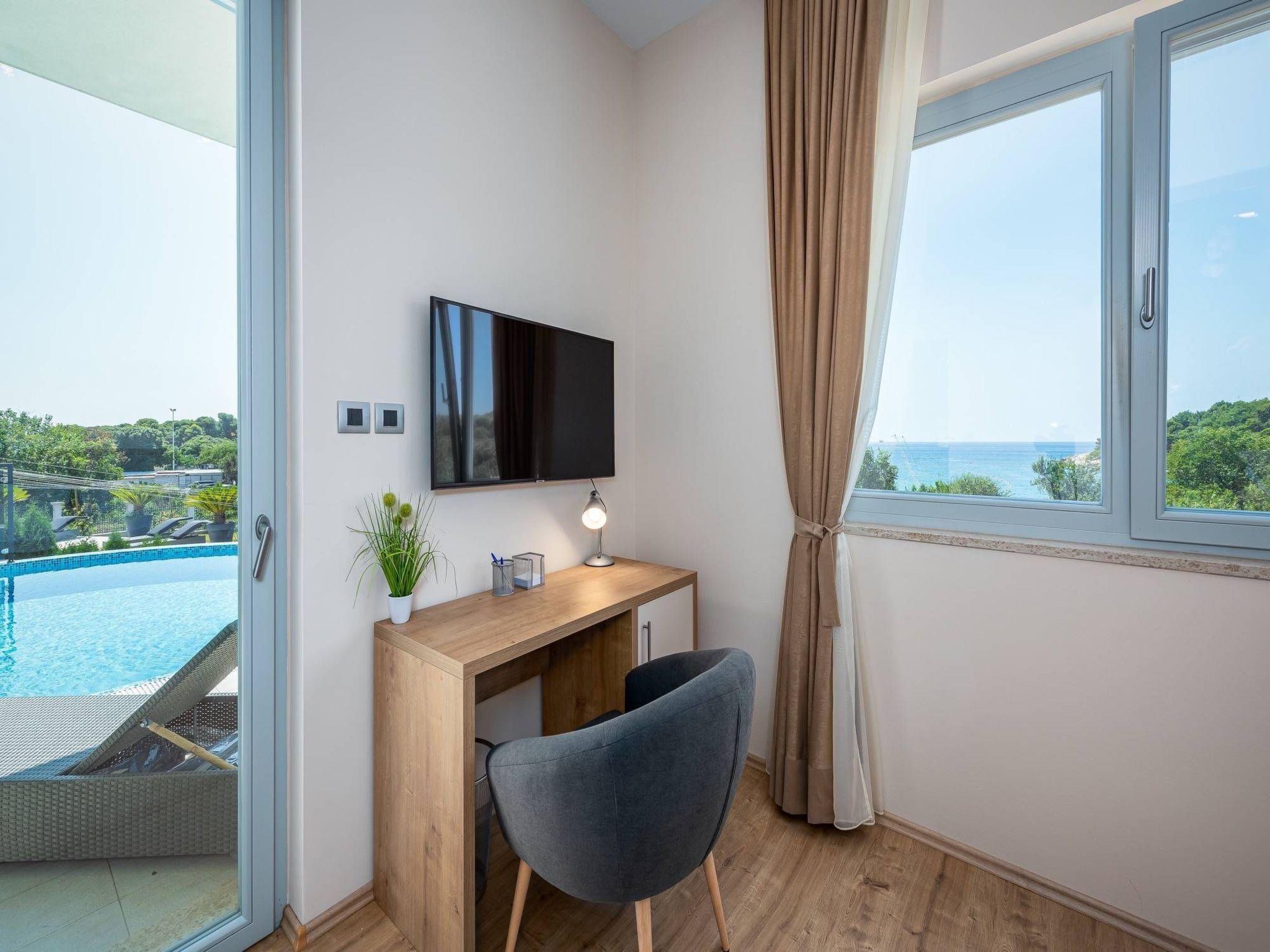 A villa with a stunning view of the sea in one of the most attractive destinations of Croatia – in Pula coastline area. The villa features a spacious garden with a seasonal outdoor pool, a sun terrace, and free WiFi in public areas.All rooms are individually furnished and come with seaside and mountain views, an outdoor dining area, grill area, and a fully equipped kitchen. The villa is very close to the beach and all cultural city hubs. You’ll enjoy day and night activities around the villa.A narrow strip along the coast in Pula is a breathtaking location to spend your summer – with family, friends or partner. The villa is available for private booking by couples as well.
