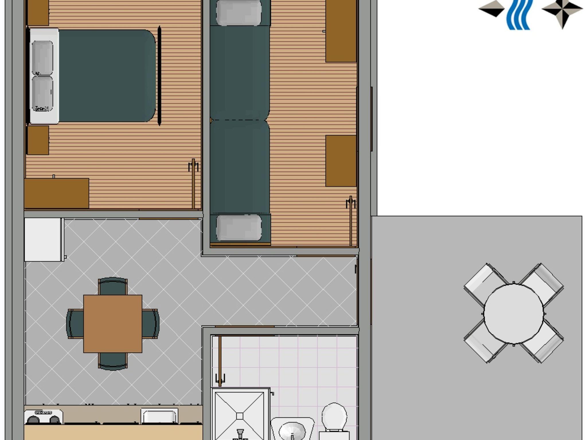 Ferienwohnung bietet Platz für 4 Gäste. Die Betten sind in Schlafzimmern, die es 2 gibt, innerhalb einer Gesamtfläche von 32m2, angeordnet. Die Gäste haben eine eigene Terrasse zur Verfügung, auf der sie in warmen Sommernächten genießen können. In der gebuchten Unterkunftseinheit zahlt man am Ort ein Depositum ( der Preis ist an der Internetseite angeführt ). IM PREIS INBEGRIFFEN: Kurtaxe, Endreinigung, Klimatisierung, Parkplatz, Internet, Föhn. VERBINDLICHE ZUSÄTZLICHE KOSTEN: Kaution (50,00 € Einmalzahlung), Aufzahlung für Kurzaufenthalte (prozentualer Zuschlag pro Nächtigungsanzahl: 30% - 1, 20% - 2, 10% - 3). Die Verfügbarkeit zusätzlicher Dienstleistungen in Ihrem reservierten Termin und die Preise derselben (falls nicht aufgeführt) müssen im Voraus überprüft werden. Zusätzliche Dienstleistungen die in der Zahlungsaufforderung nicht aufgeführt sind werden direkt beim Vermieter bezahlt, angenommen der Gast nutzt auch diese.