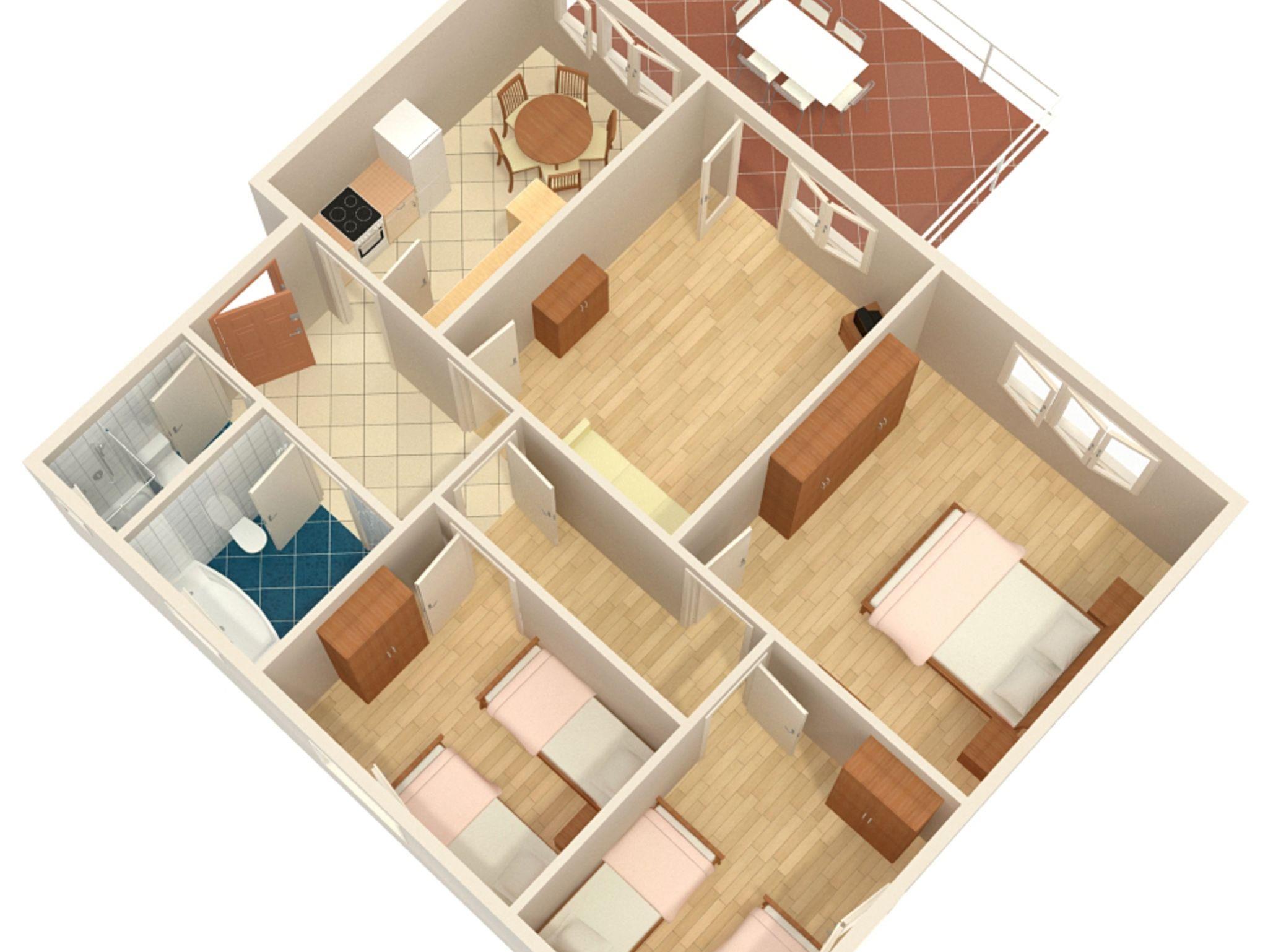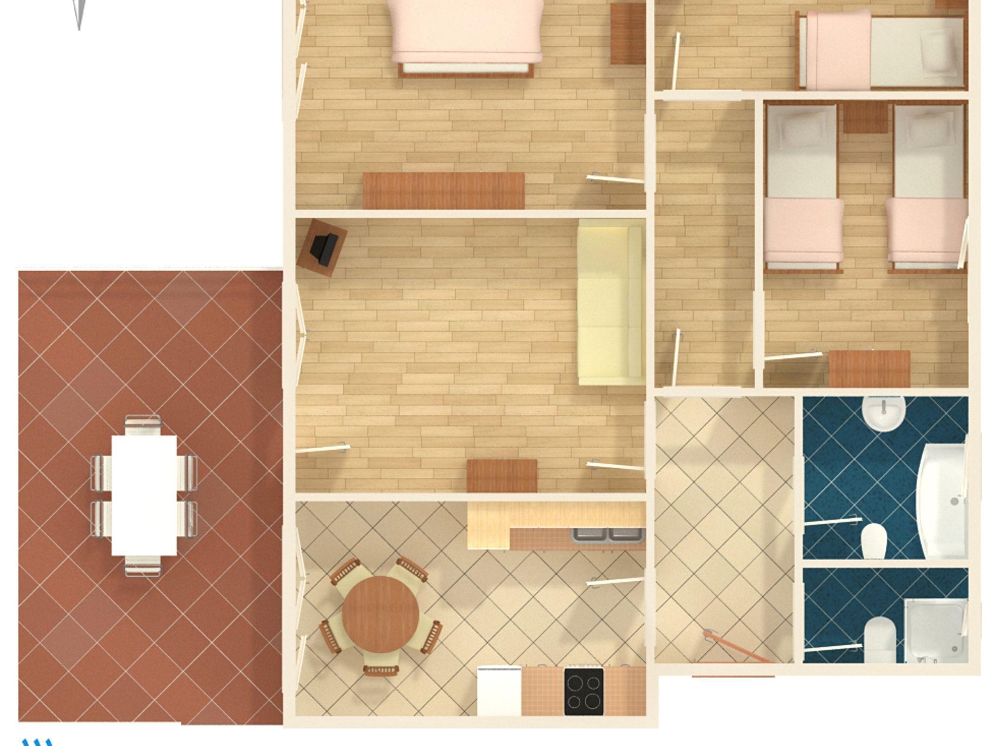 Ferienwohnung bietet Platz für 6 Gäste. Die Betten sind in Schlafzimmern, die es 3 gibt, innerhalb einer Gesamtfläche von 76m2, angeordnet. Die Gäste haben eine eigene Terrasse zur Verfügung, auf der sie in warmen Sommernächten genießen können. IM PREIS INBEGRIFFEN: Kurtaxe, Endreinigung, Parkplatz, Internet, Bügeleisen, Bügelbrett, Föhn. VERBINDLICHE ZUSÄTZLICHE KOSTEN: Aufzahlung für Kurzaufenthalte (prozentualer Zuschlag pro Nächtigungsanzahl: 30% - 1, 20% - 2, 10% - 3). UNVERBINDLICHE ZUSÄTZLICHE KOSTEN: Klimatisierung (5,00 € pro Nacht). Die Verfügbarkeit zusätzlicher Dienstleistungen in Ihrem reservierten Termin und die Preise derselben (falls nicht aufgeführt) müssen im Voraus überprüft werden. Zusätzliche Dienstleistungen die in der Zahlungsaufforderung nicht aufgeführt sind werden direkt beim Vermieter bezahlt, angenommen der Gast nutzt auch diese. Ermäßigung auf den Grundpreis: Gratistag 14=13 (bei einem Aufenthalt von 14 Tagen oder mehr erhalten Sie einen Gratistag für den Aufenthalt bis 31.12.26).