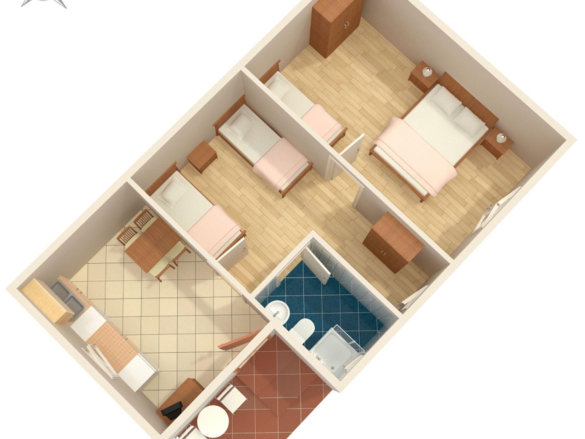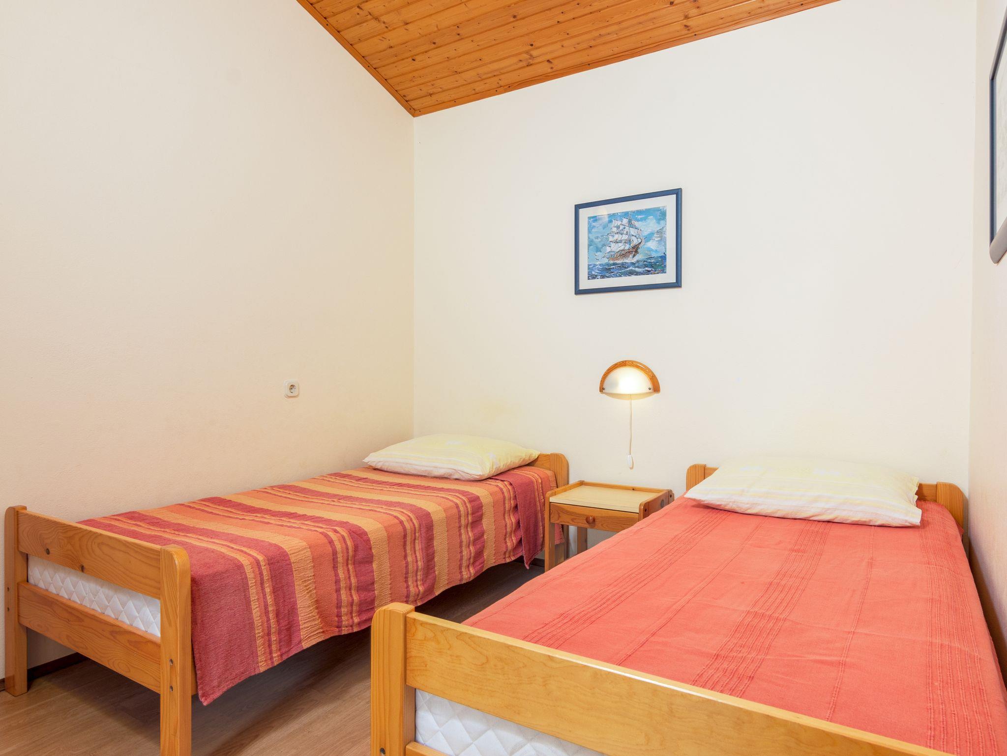 Ferienwohnung bietet Platz für 4 Gäste. Die Betten sind in Schlafzimmern, die es 1 gibt, und in Wohnzimmer, innerhalb einer Gesamtfläche von 42m2, angeordnet. Die Gäste haben eine eigene Terrasse zur Verfügung, auf der sie in warmen Sommernächten genießen können. Durch das Schlafzimmer der gebuchten Unterkunftseinheit geht man in die andere Räume der Einheit. IM PREIS INBEGRIFFEN: Kurtaxe, Endreinigung, Parkplatz, Internet, Bügeleisen, Bügelbrett, Föhn. VERBINDLICHE ZUSÄTZLICHE KOSTEN: Aufzahlung für Kurzaufenthalte (prozentualer Zuschlag pro Nächtigungsanzahl: 30% - 1, 20% - 2, 10% - 3). UNVERBINDLICHE ZUSÄTZLICHE KOSTEN: Klimatisierung (5,00 € pro Nacht). Die Verfügbarkeit zusätzlicher Dienstleistungen in Ihrem reservierten Termin und die Preise derselben (falls nicht aufgeführt) müssen im Voraus überprüft werden. Zusätzliche Dienstleistungen die in der Zahlungsaufforderung nicht aufgeführt sind werden direkt beim Vermieter bezahlt, angenommen der Gast nutzt auch diese. Ermäßigung auf den Grundpreis: Gratistag 14=13 (bei einem Aufenthalt von 14 Tagen oder mehr erhalten Sie einen Gratistag für den Aufenthalt bis 31.12.26).