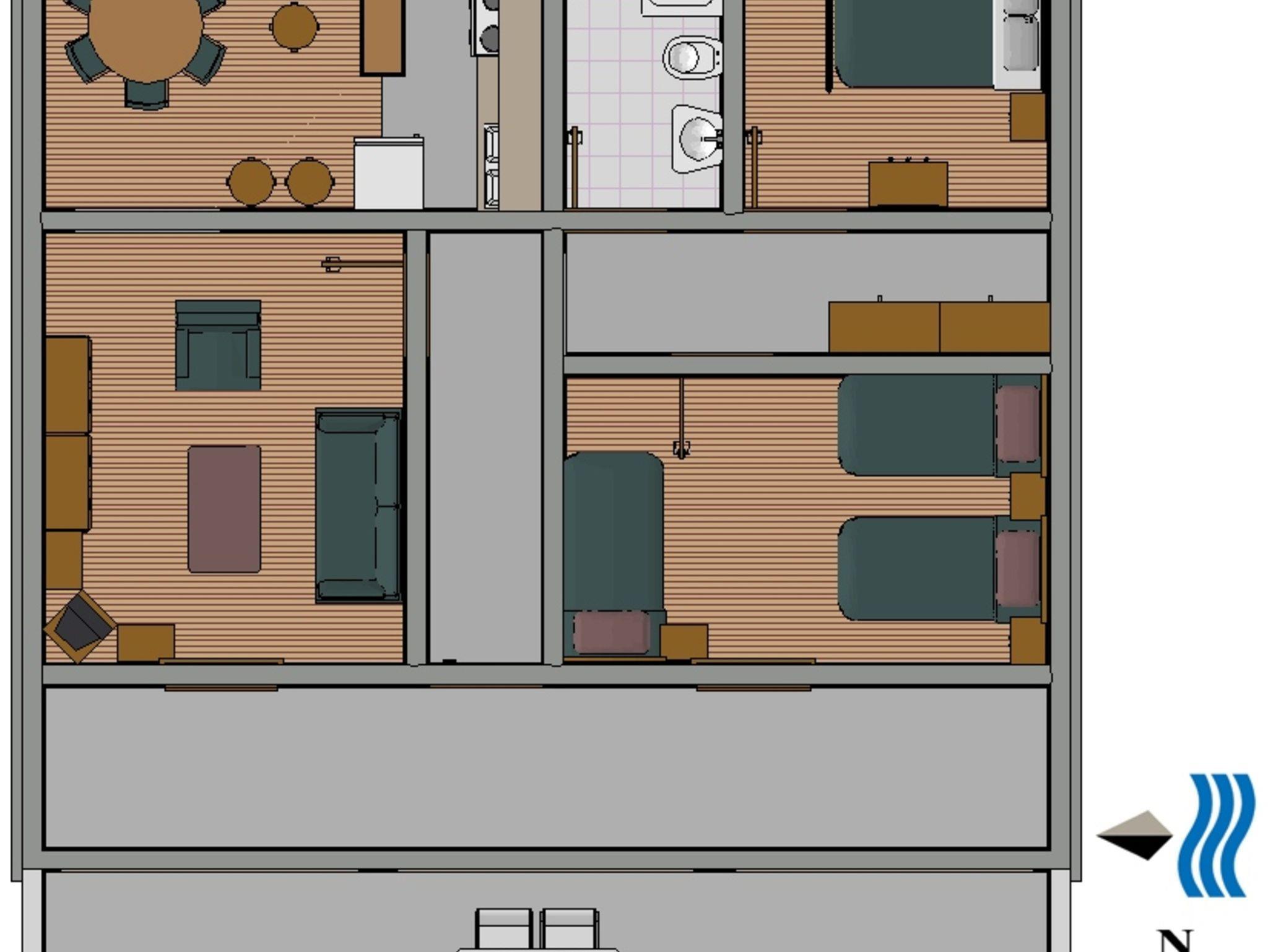 Ferienwohnung bietet Platz für 5 Gäste. Die Betten sind in Schlafzimmern, die es 2 gibt, innerhalb einer Gesamtfläche von 67m2, angeordnet. Die Gäste haben eine eigene Terrasse zur Verfügung, auf der sie in warmen Sommernächten genießen können. Es ist erlaubt, Speisen auf dem Gemeinschafts-Grill vorzubereiten. In der Unterkunftseinheit besteht die Möglichkeit des Mitbringens von Haustieren gegen Aufpreis. IM PREIS INBEGRIFFEN: Kurtaxe, Endreinigung, Parkplatz, Internet, Bügeleisen, Bügelbrett, Föhn. UNVERBINDLICHE ZUSÄTZLICHE KOSTEN: Haustiere (5,00 € pro Nacht). Die Verfügbarkeit zusätzlicher Dienstleistungen in Ihrem reservierten Termin und die Preise derselben (falls nicht aufgeführt) müssen im Voraus überprüft werden. Zusätzliche Dienstleistungen die in der Zahlungsaufforderung nicht aufgeführt sind werden direkt beim Vermieter bezahlt, angenommen der Gast nutzt auch diese.