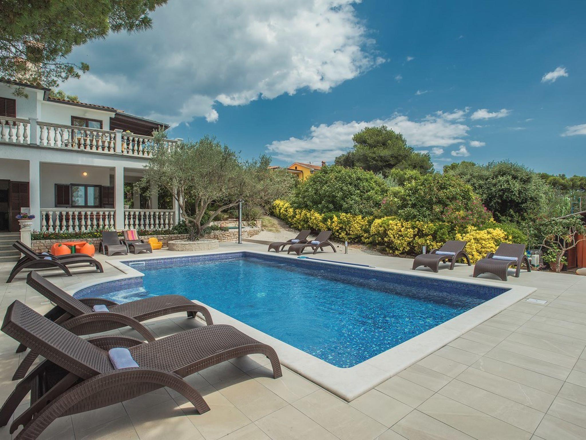 Located in Banjole overlooking the sea Villa Mima offers accommodation for 16 persons. Villa Mima in Banjole consists of two separate houses, the main five-bedroom house and a smaller two-bedroom house furnished with comfortable wooden furniture. The space will not be untied because the larger house consists of two separate apartments, so you have two kitchens and two living rooms available. The beautiful outdoor pool from which you can enjoy the sea view is a good reason to book Villa Mima as soon as possible. In addition to the seductive exterior, surrounded by greenery, you can absorb fresh sea air from a spacious covered balcony. An exquisite exterior surrounded by palm trees is ideal for sunbathing and playing with your loved ones, and we believe that your pets, whose access is also allowed, will enjoy it.