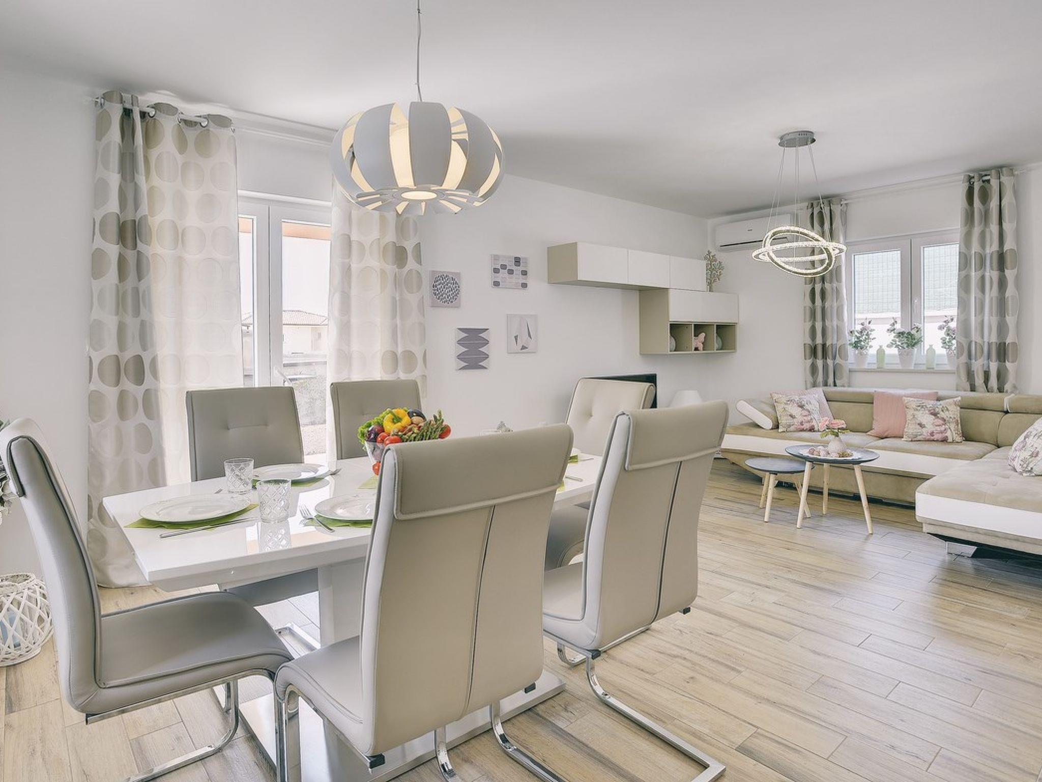 This superb luxurious newly built villa can accommodate up to six persons, one of the most beautiful villas in the south of Istria. This magnificent Casa Jadreški is located in Jadreški, a short drive to Medulin, where you can visit some of the very good restaurants, a long sandy beach and you can enjoy the incredible sunset every evening. The historically-famous city of Pula is only 9 km away. This villa is completely private and all furniture is carefully selected to create a modern and comfortable atmosphere. This villa has everything you can imagine for a perfect vacation and more, and is ideal for family vacations. Casa Jadreški is located on the surface of a plot of 350 m2, of which house takes 160 m2. The exterior is dominated by an outdoor swimming pool with salt water (without chlorine) and an equipped sunbathing area. The rooms are located on the first floor and the open kitchen with a living room and dining room on the ground floor give a feeling of spaciousness. The house is equipped with a heating system and underfloor heating, and it is also possible to deliver local food from local farms.