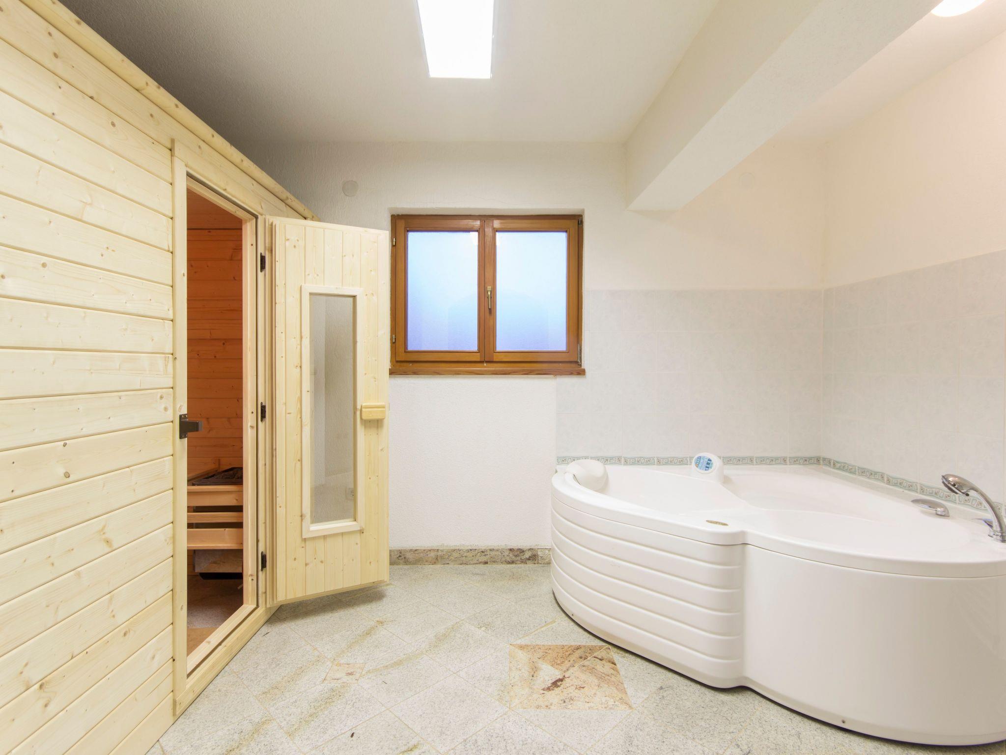 This house is designed for larger groups or families that wish to spend a relaxing holiday. It stretches over three floors and all have a sea view. It consists of thirteen bedrooms, seven bathrooms, fully equipped kitchen and five living rooms. There are eight air conditioning units and heating provided in off season, free wifi internet, six TVs and a safe . Other features are heated outdoor pool, sauna, whirlpool, fitness, billiards, darts, table tennis and table football.
