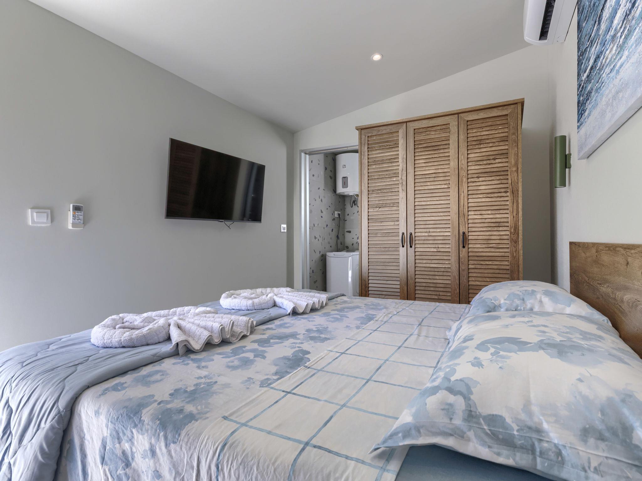 "More", 1-room studio 25 m2, on the ground floor. Beautiful furnishings: living/sleeping room with 1 french bed and satellite TV (flat screen), air conditioning. Exit to the terrace. Open kitchen (oven, dishwasher, 4 ceramic glass hob hotplates, toaster, freezer, electric coffee machine). Shower/WC. Forced-air heating. Facilities: Internet (WiFi, free). Please note: private entrance.