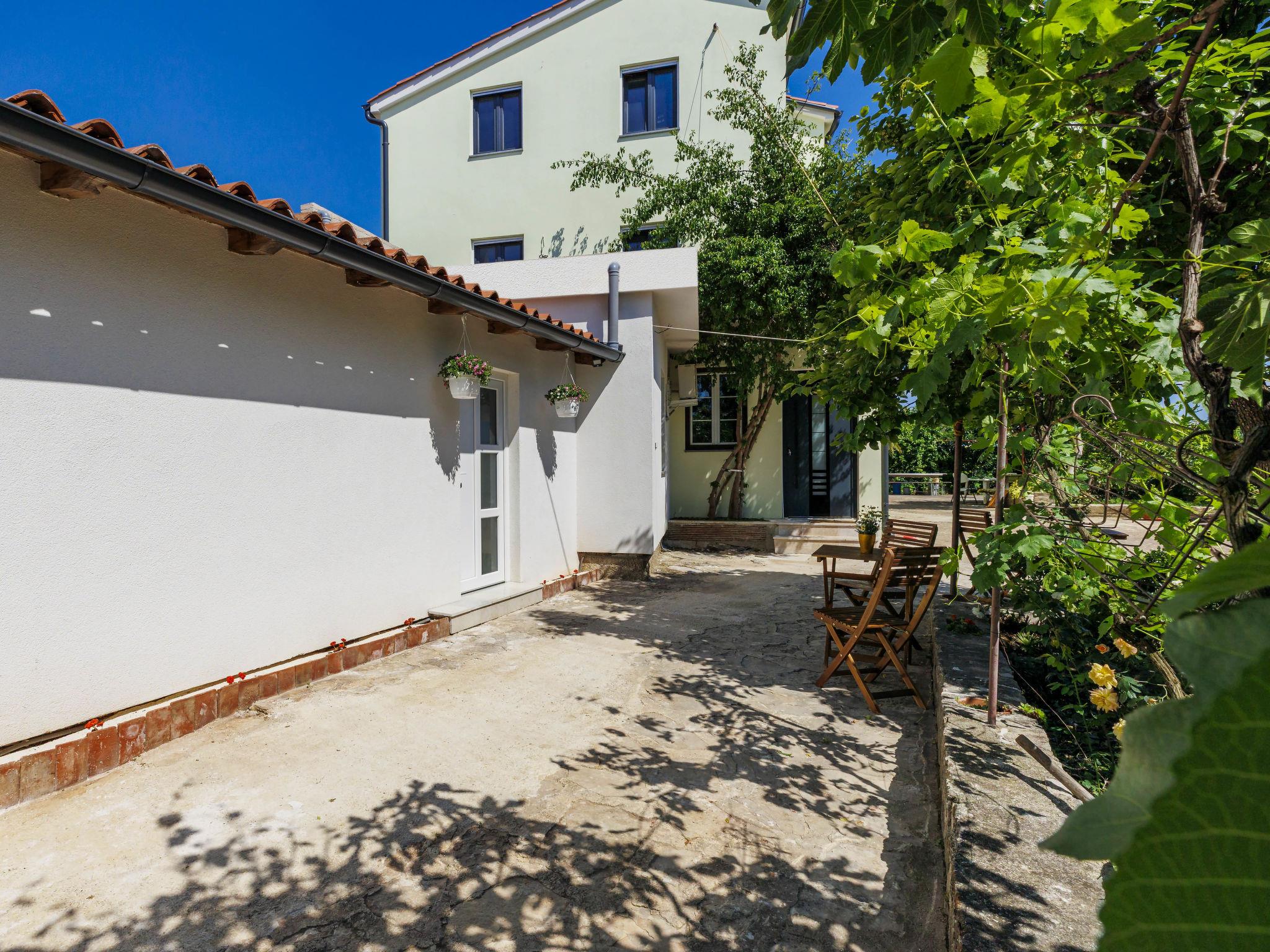 Galižana 5 km from Pula: Beautiful 3-family house. In the resort 500 m from the centre of Galižana, 5 km from the sea, 5 km from the beach. For shared use: property 1'000 m2 (fenced), beautiful garden with lawn and trees. Terrace, garden furniture, barbecue. In the house: internet access. Parking at the house on the premises. Shop 500 m, supermarket 3 km, restaurant 3 km, bus stop 500 m, pebble beach 5 km, rocky beach 5 km. Please note: 8 km from the property.