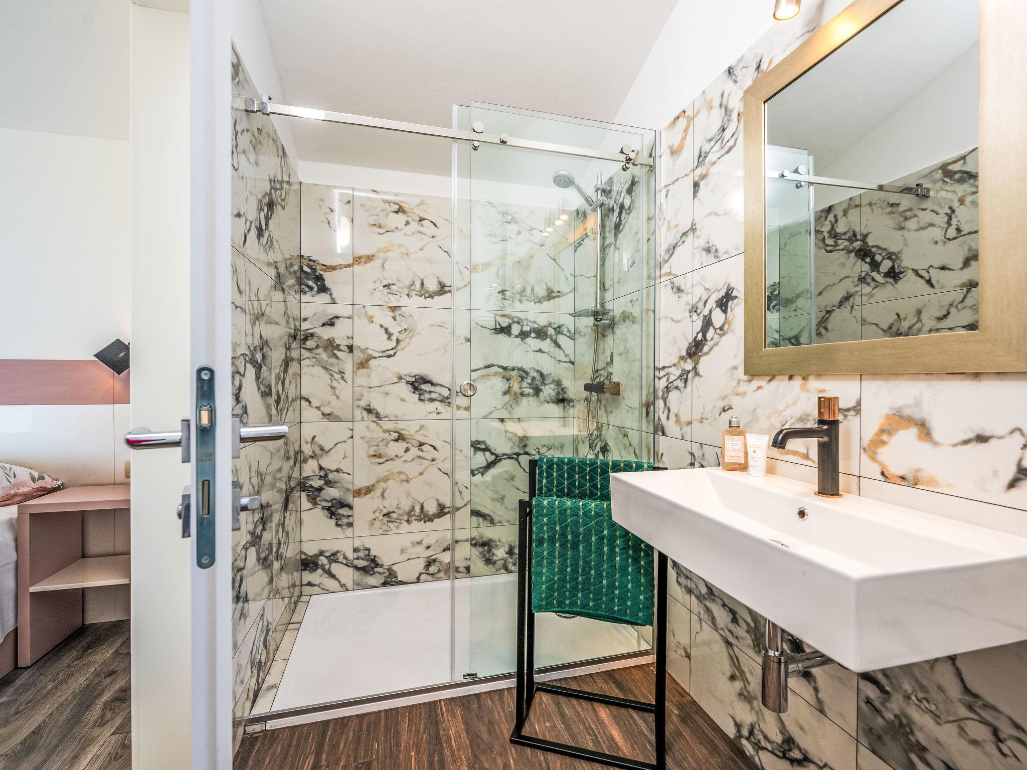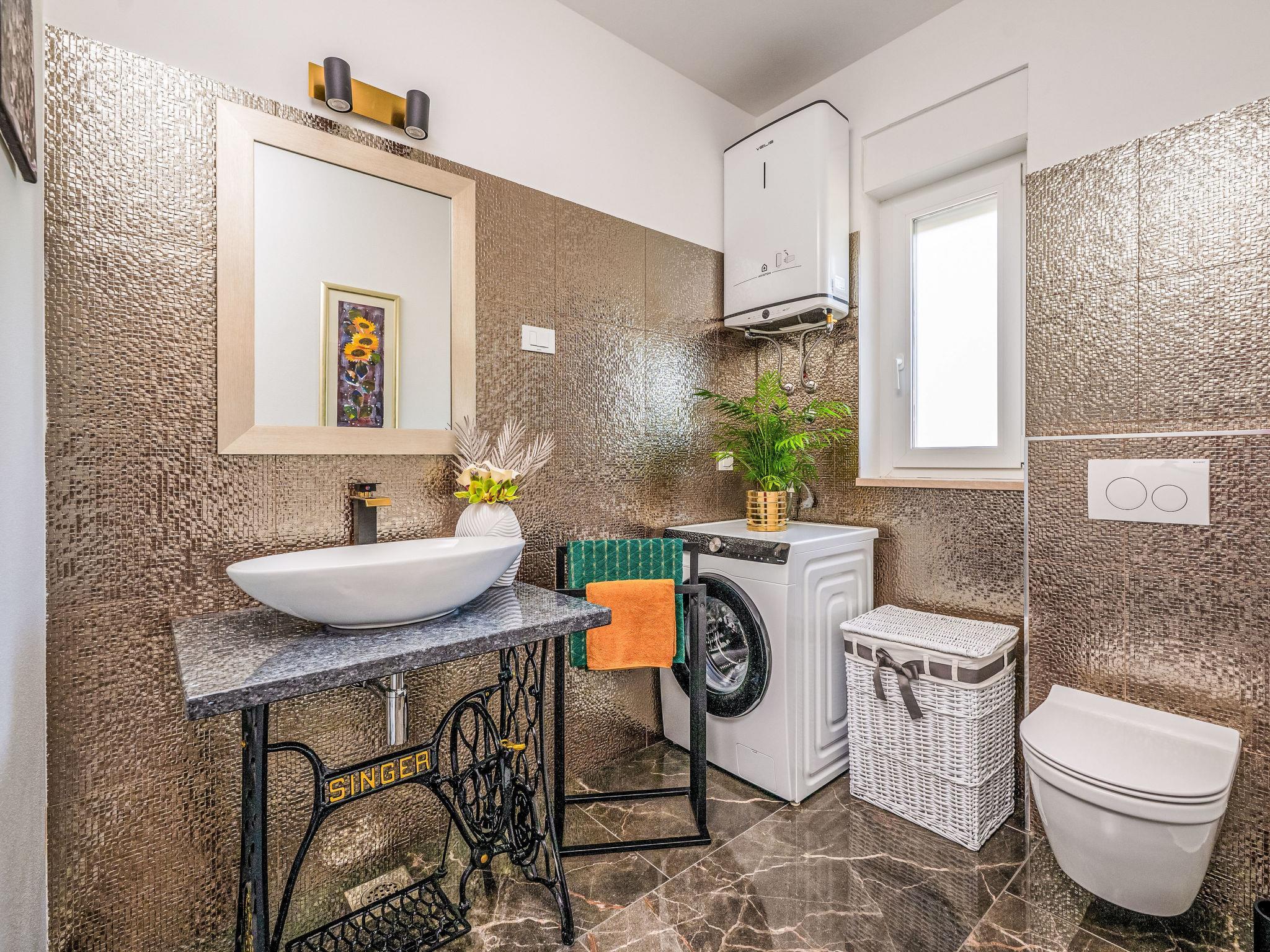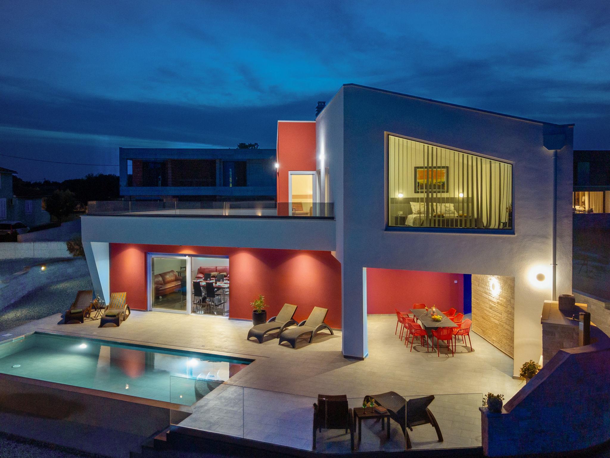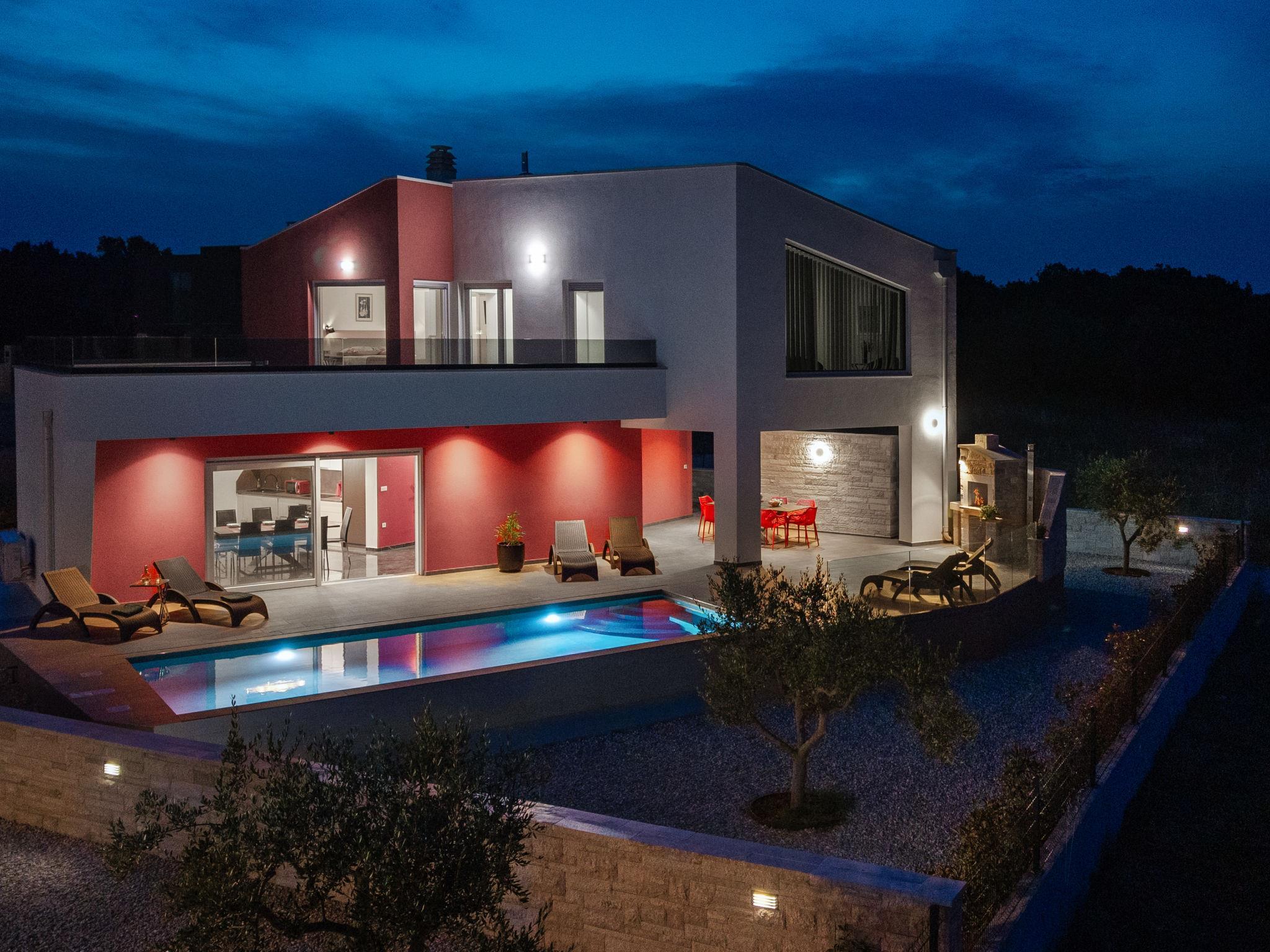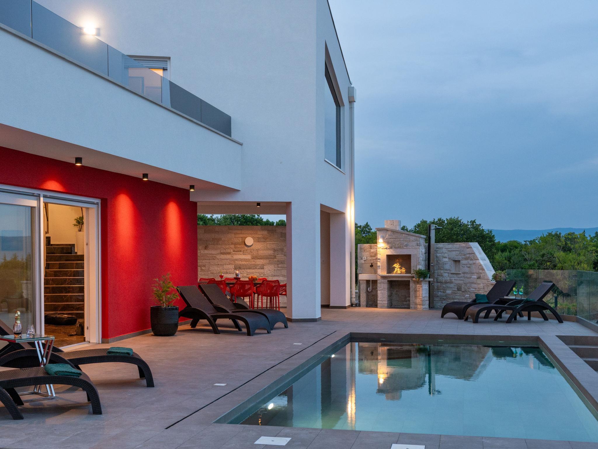 Krnica 22 km from Pula: Modern, beautiful villa "Lumi". In a quiet, sunny position, 2.5 km from the sea, 2.5 km from the beach. Private: property 650 m2 (fenced), garden with flowers and trees, swimming pool angular (8 x 3 m, 28 m2, depth 140 cm, seasonal availability: 01.Jan. - 31.Dec.) with internal staircase. Outdoor shower, terrace (20 m2), garden furniture, barbecue, pool maintenance by the owner/gardener. In the house: internet access, washing machine. Parking (for 2 cars) at the house on the premises. Shop, restaurant 200 m, bus stop 500 m, pebble beach 5 km, rocky beach 2.5 km, indoor swimming pool 5 km. Tennis 5 km, riding stable 6 km, sports centre 5 km, walking paths from the house 3 km, cycle lane 3 km.