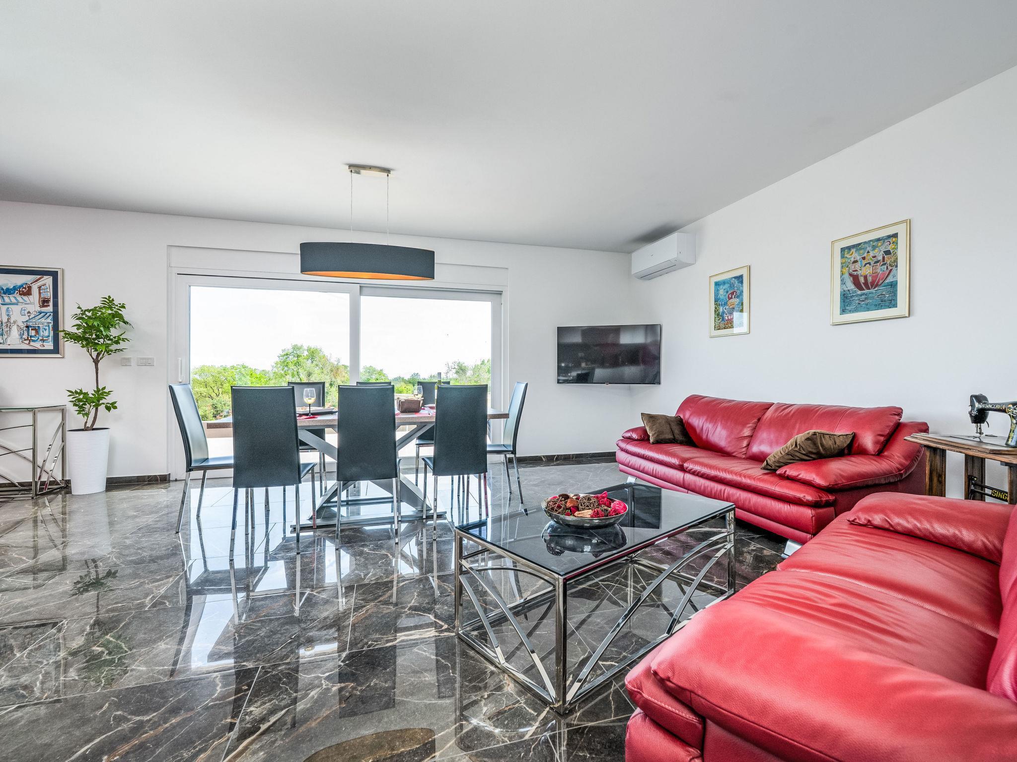 4-room villa 165 m2 on 2 levels. Living/dining room with satellite TV (flat screen), air conditioning. Exit to the swimming pool. 1 room with 1 double bed (2 x 90 cm, length 200 cm), shower/WC and satellite TV (flat screen), air conditioning. Open kitchen (oven, dishwasher, 4 ceramic glass hob hotplates, kettle, freezer, electric coffee machine). Sep. WC. Upper floor: 1 room with 1 sofabed (90 cm, length 190 cm), 1 french bed (160 cm, length 200 cm), shower/bidet/WC and satellite TV (flat screen), air conditioning. Exit to the terrace. 1 room with panoramic window with 1 french bed (160 cm, length 200 cm), shower/WC and satellite TV (flat screen), air conditioning. Exit to the terrace. Terrace 55 m2. Deck chairs. Beautiful view of the sea. Facilities: Internet (WiFi, free). Maximum 1 pet/ dog allowed.