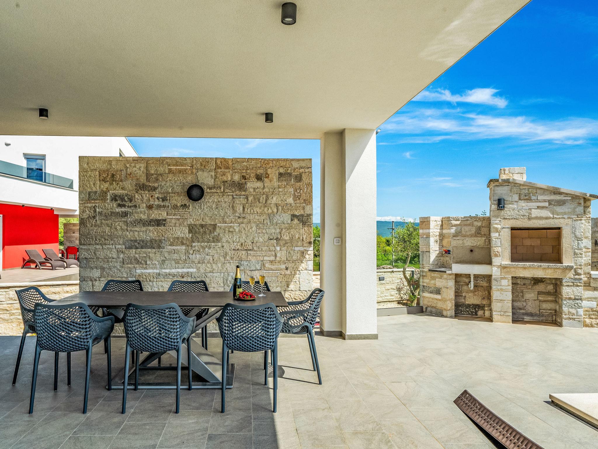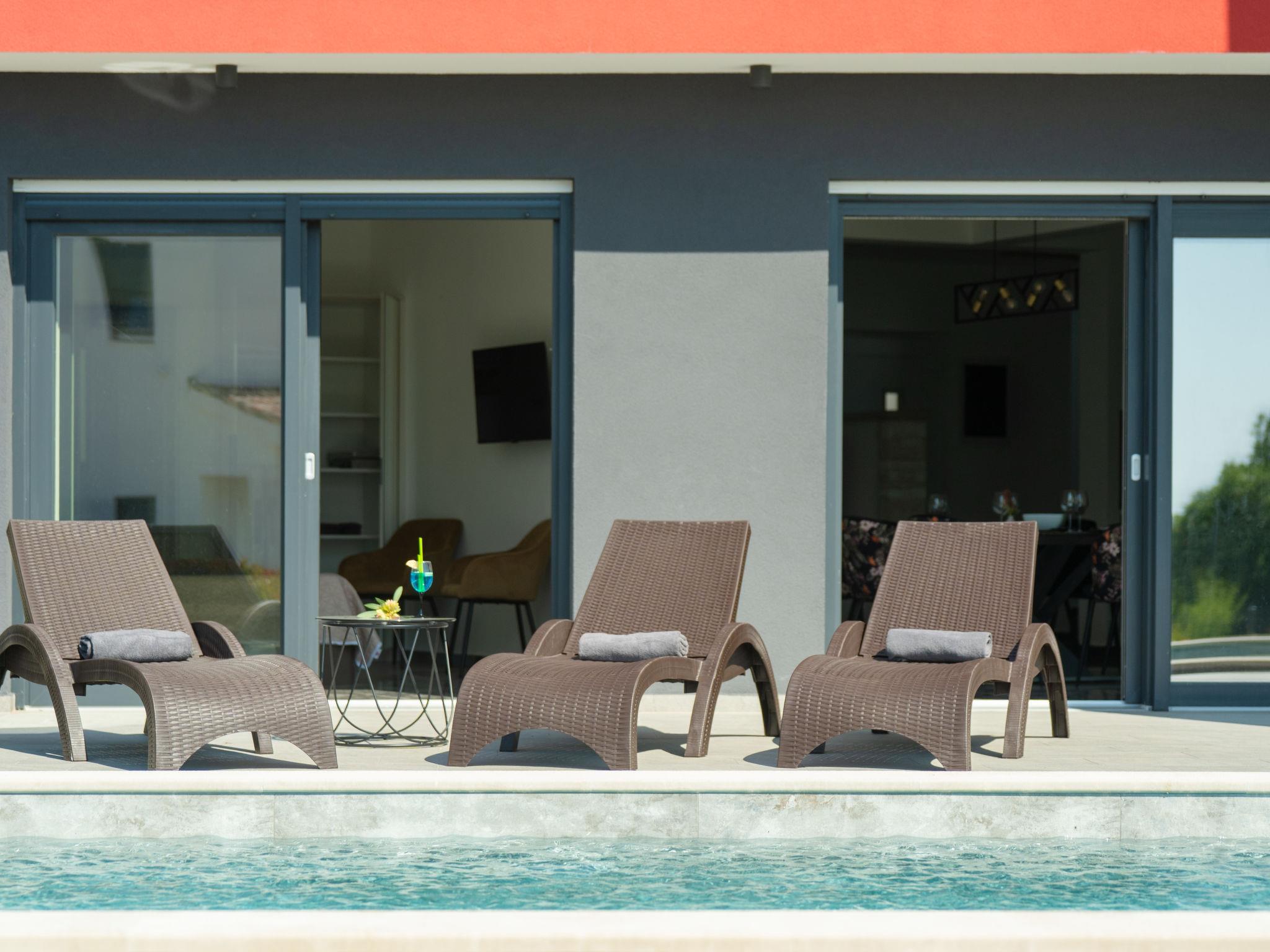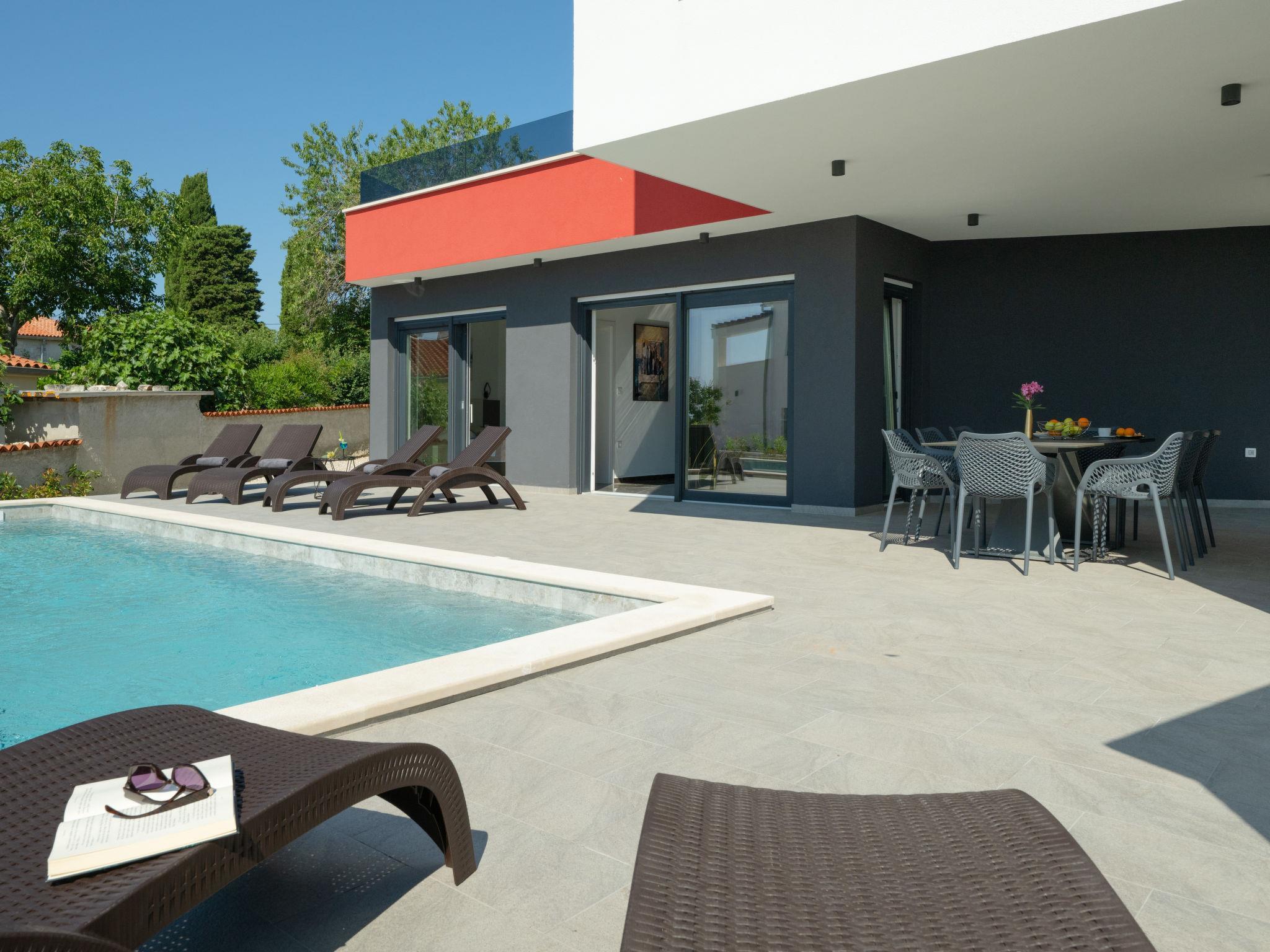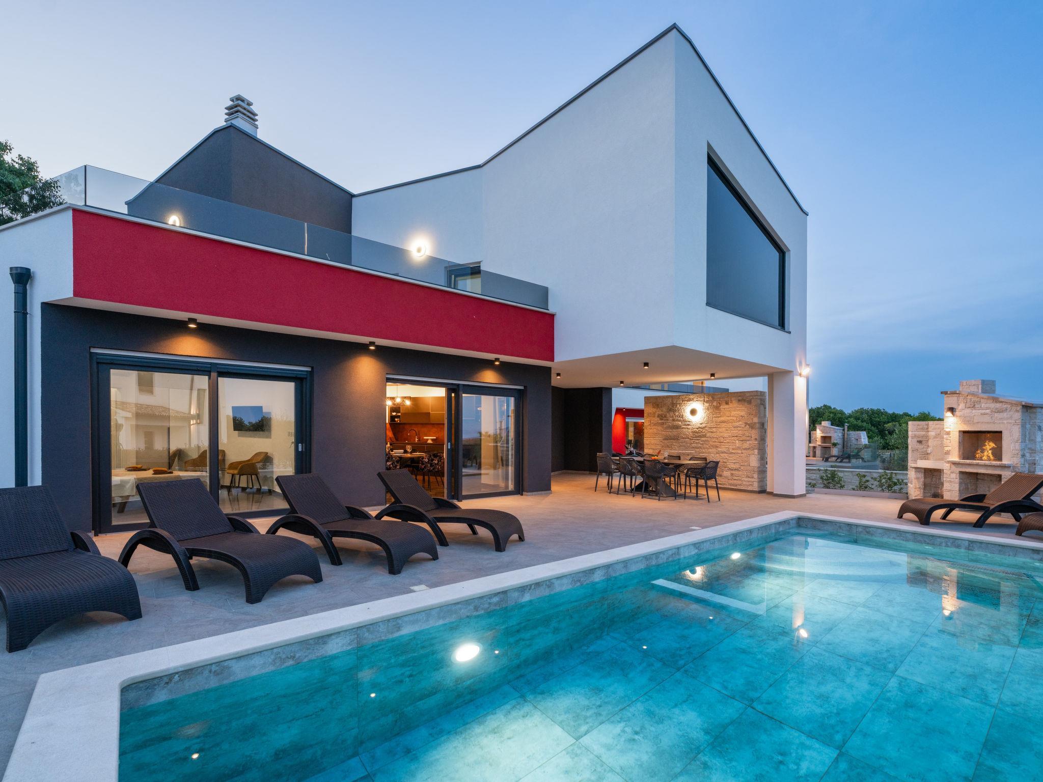 Krnica 22 km from Pula: Modern, beautiful villa "Lu". In a quiet, sunny position, 2.5 km from the sea, 2.5 km from the beach. Private: property 700 m2 (fenced), garden with flowers and trees, swimming pool angular (8 x 3 m, 28 m2, depth 140 cm, seasonal availability: 01.Jan. - 31.Dec.) with internal staircase. Outdoor shower, terrace (20 m2), garden furniture, barbecue, pool maintenance by the owner/gardener. In the house: internet access, washing machine. Parking (for 2 cars) at the house on the premises. Shop, restaurant 200 m, bus stop 500 m, pebble beach 5 km, rocky beach 2.5 km, indoor swimming pool 5 km. Tennis 5 km, riding stable 6 km, sports centre 5 km, walking paths from the house 3 km, cycle lane 3 km.