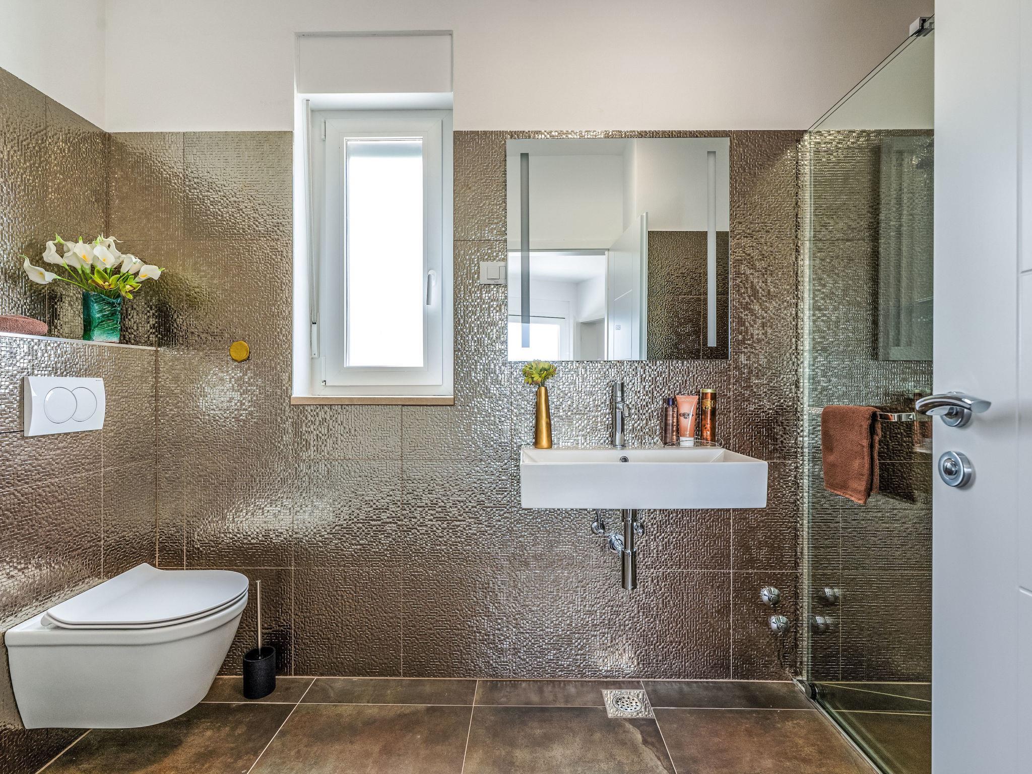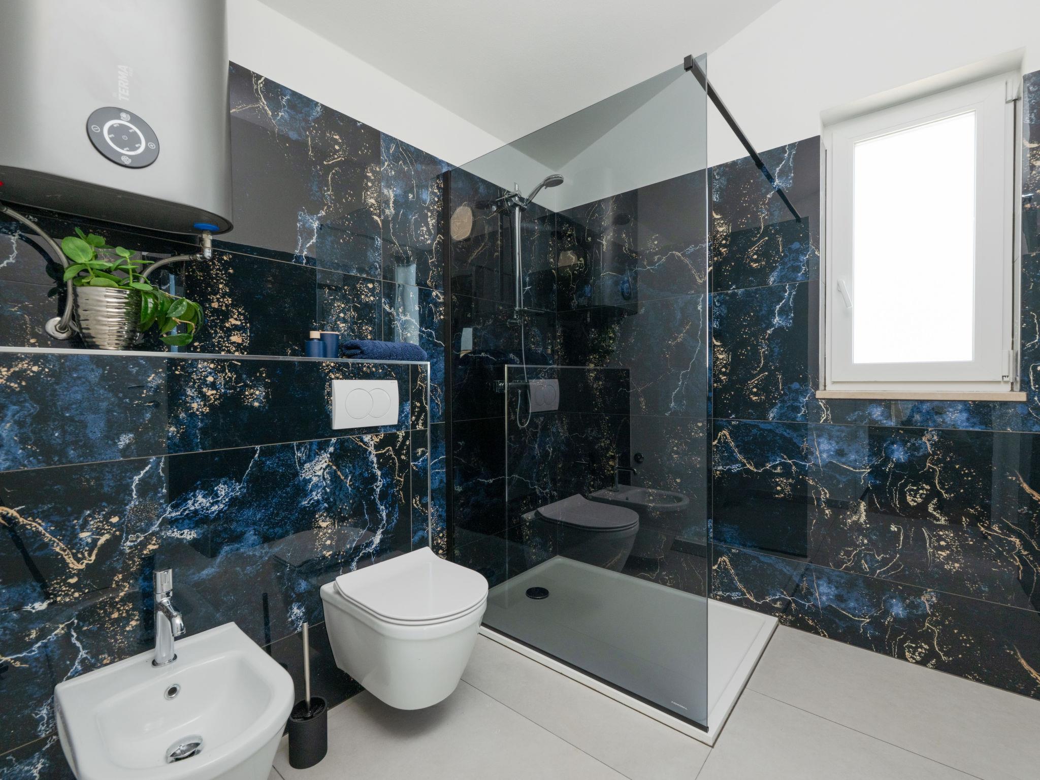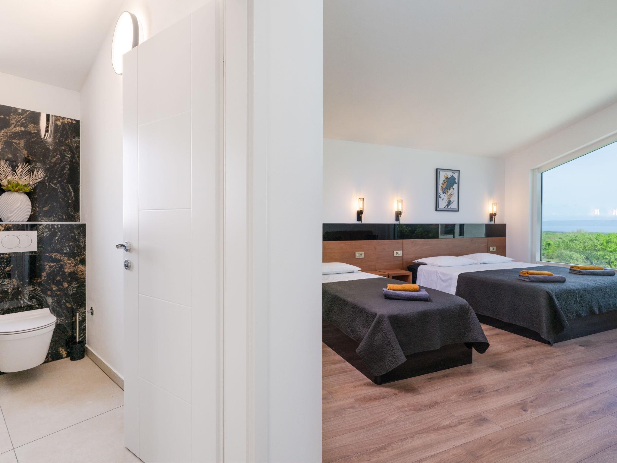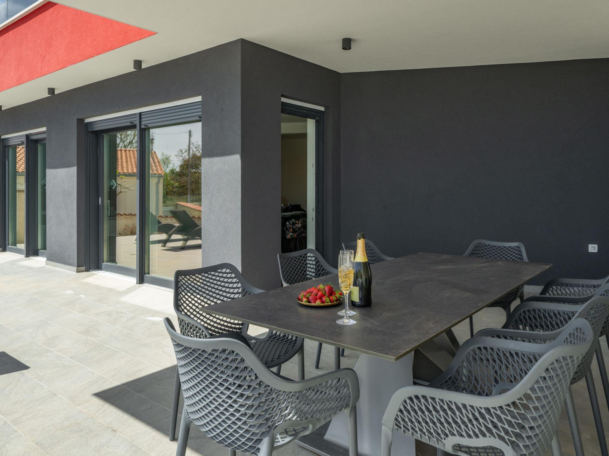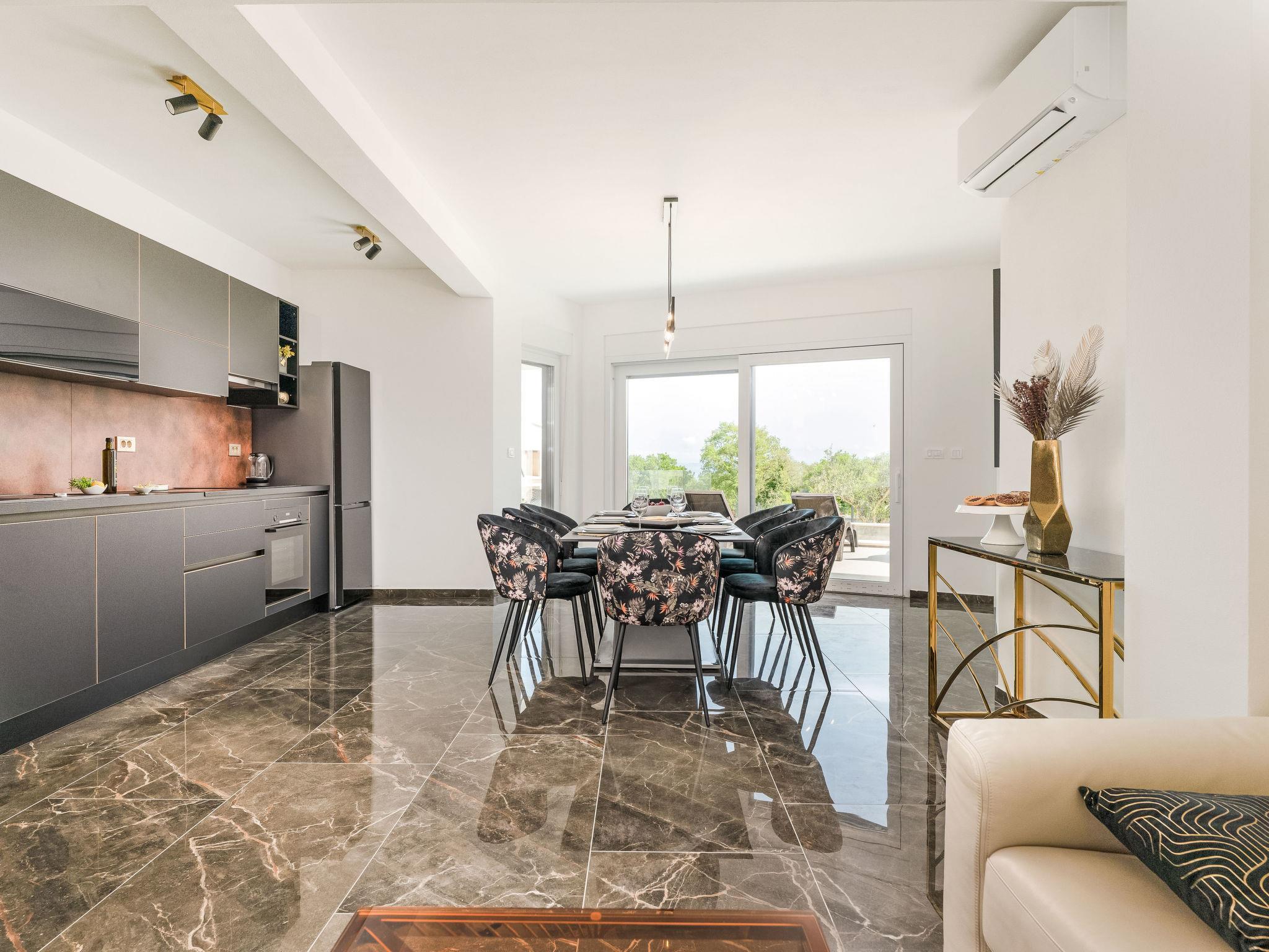 Krnica 22 km from Pula: Modern, beautiful villa "Lu". In a quiet, sunny position, 2.5 km from the sea, 2.5 km from the beach. Private: property 700 m2 (fenced), garden with flowers and trees, swimming pool angular (8 x 3 m, 28 m2, depth 140 cm, seasonal availability: 01.Jan. - 31.Dec.) with internal staircase. Outdoor shower, terrace (20 m2), garden furniture, barbecue, pool maintenance by the owner/gardener. In the house: internet access, washing machine. Parking (for 2 cars) at the house on the premises. Shop, restaurant 200 m, bus stop 500 m, pebble beach 5 km, rocky beach 2.5 km, indoor swimming pool 5 km. Tennis 5 km, riding stable 6 km, sports centre 5 km, walking paths from the house 3 km, cycle lane 3 km.