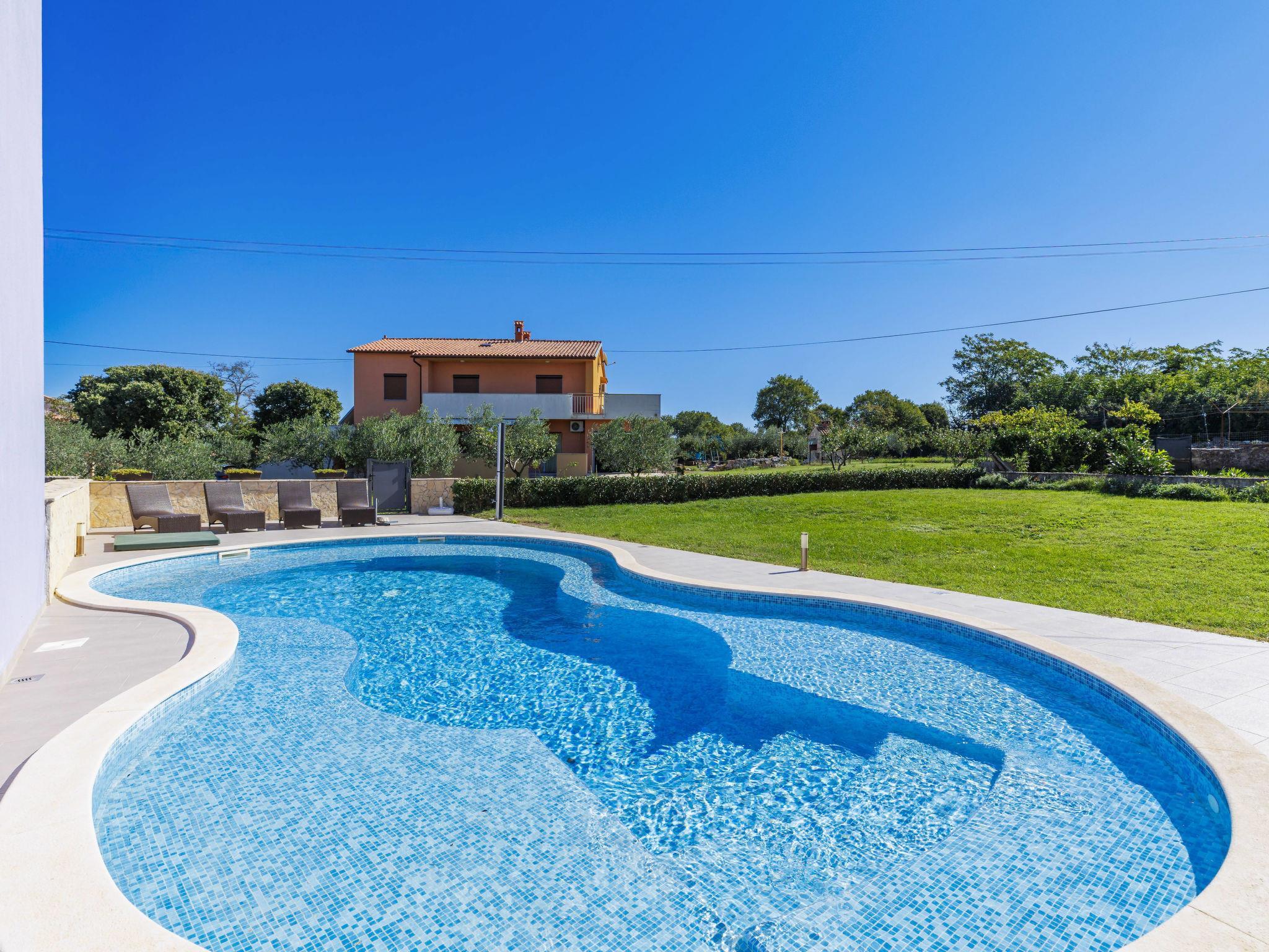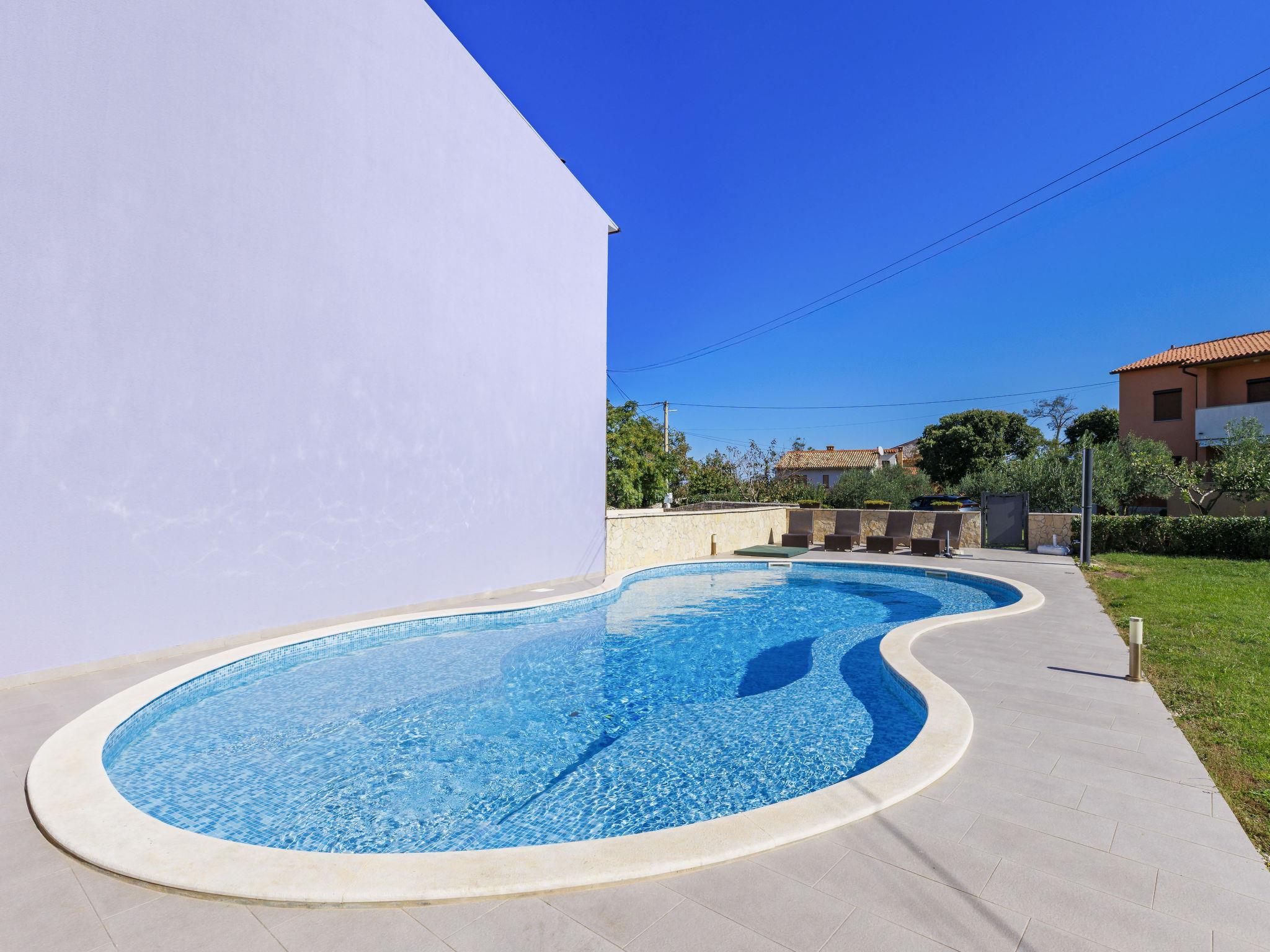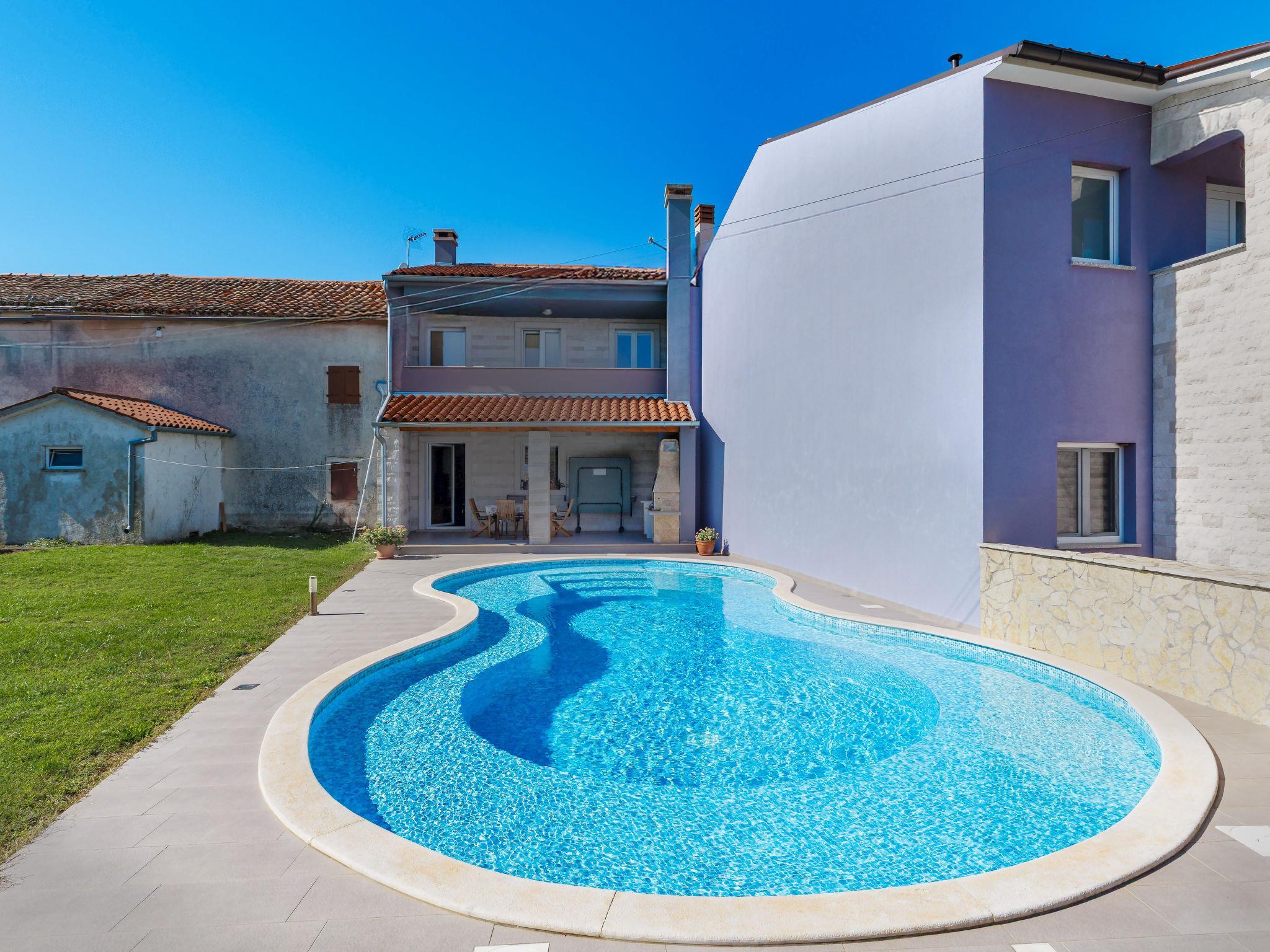Krnica 22 km from Pula: Beautiful terraced house "Mario 2", 2 storeys. In the hamlet Bratulici 5 km from the centre of Krnica, in a quiet, sunny position, 7 km from the sea. Private: property 200 m2 (fenced), swimming pool (50 m2, depth 140 cm, seasonal availability: 02.May. - 26.Sep.) with internal staircase. Unconventional pool shape. Garden furniture, barbecue. In the house: internet access, central heating system, washing machine. Roofed, parking (for 2 cars) at the house on the premises. Shop 2 km, restaurant 100 m, bus stop 1.3 km, pebble beach 10 km, rocky beach 7 km. Tennis 10 km, riding stable 3 km.