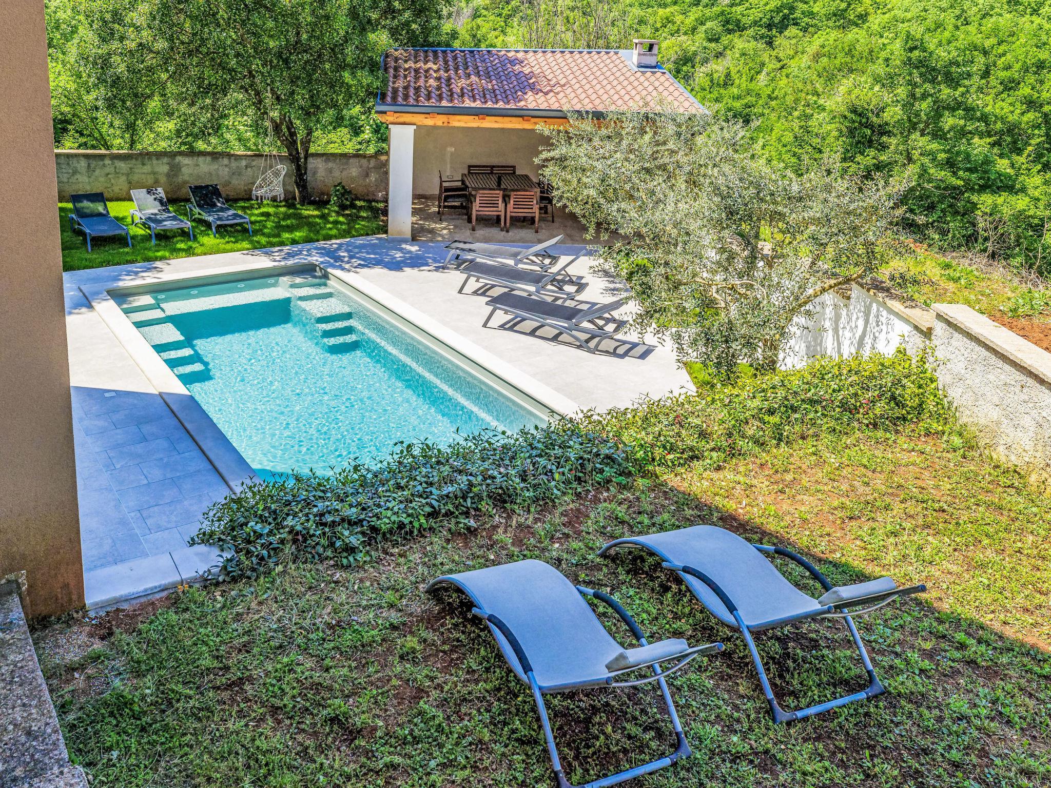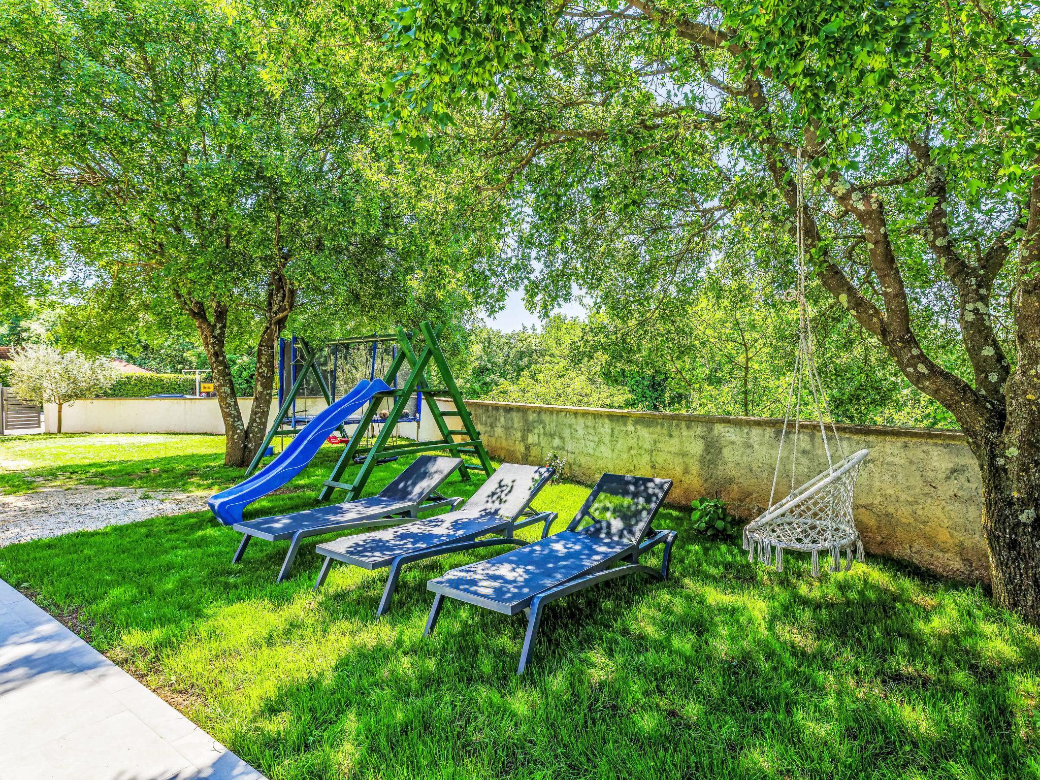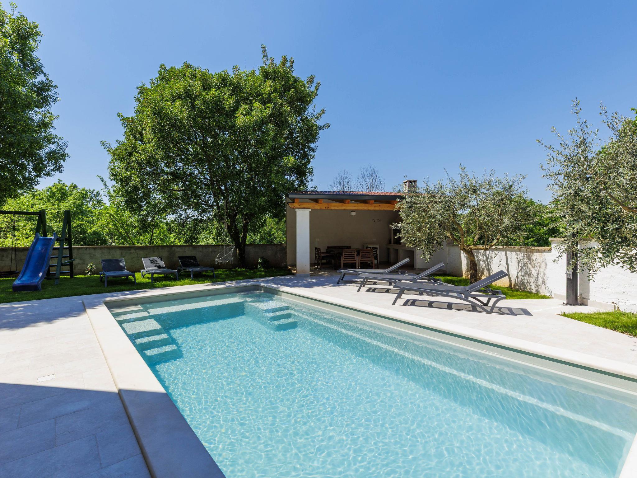 Krnica 22 km from Pula: 2-family house "Ana". In the hamlet Beloci 7 km from the centre of Krnica, 7 km from the centre of Barban, 26 km from the centre of Rabac, in a quiet, sunny position, 4 km from the sea, 4 km from the beach. For shared use: property 800 m2 (fenced), garden with lawn and plants. Private: swimming pool angular, heated (7 x 4 m, depth 140 cm, seasonal availability: 01.Apr. - 01.Nov.) with internal staircase and salt-electrolysis pool-cleaning system. Outdoor shower, terrace (20 m2), garden furniture, barbecue (slide, swing), pool maintenance by the owner/gardener. In the house: internet access, trampoline, storage room for bicycles. Available: bicycles (4). Parking at the house on the premises. E-charging station. Shop 2 km, supermarket 7 km, restaurant 3 km, bus stop 1.4 km, pebble beach 4 km, rocky beach 4 km, public bathing area 16 km. Riding stable 500 m, walking paths from the house 50 m, cycle lane 100 m. Nearby attractions: Amusement park 6 km. Please note: airfield 20 km from the property. For shared use: trampoline, bicycles (4), storage room for bicycles. The owner can arrange excursions (on request, extra). Swimming pool heated (extra). It is necessary to announce 7 days in advance if the pool heating is required.