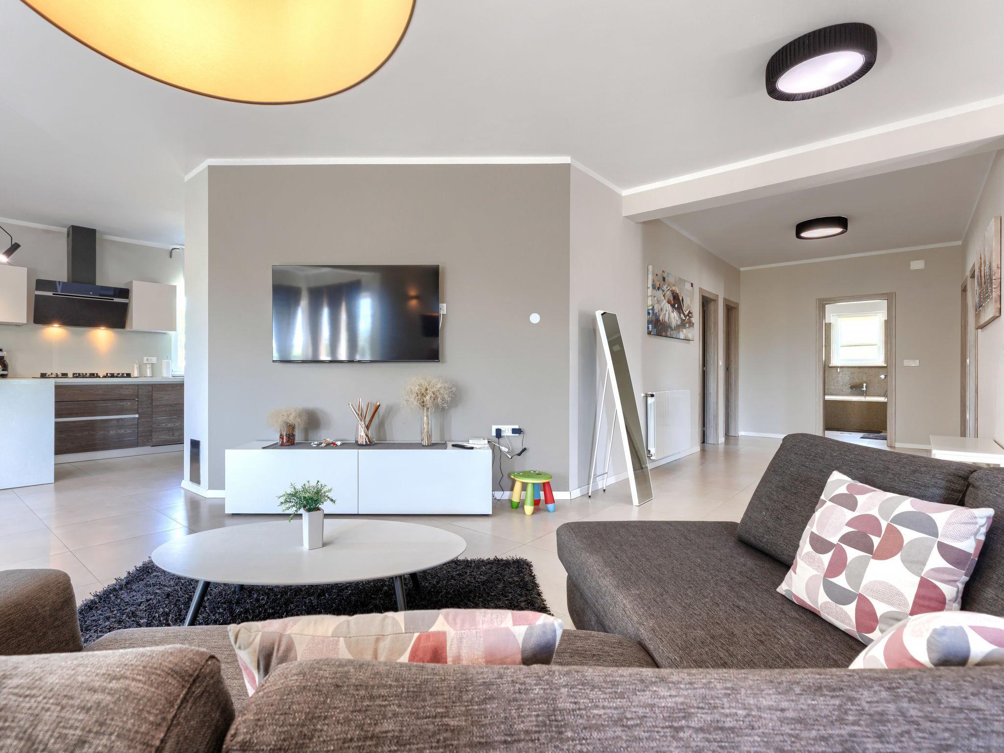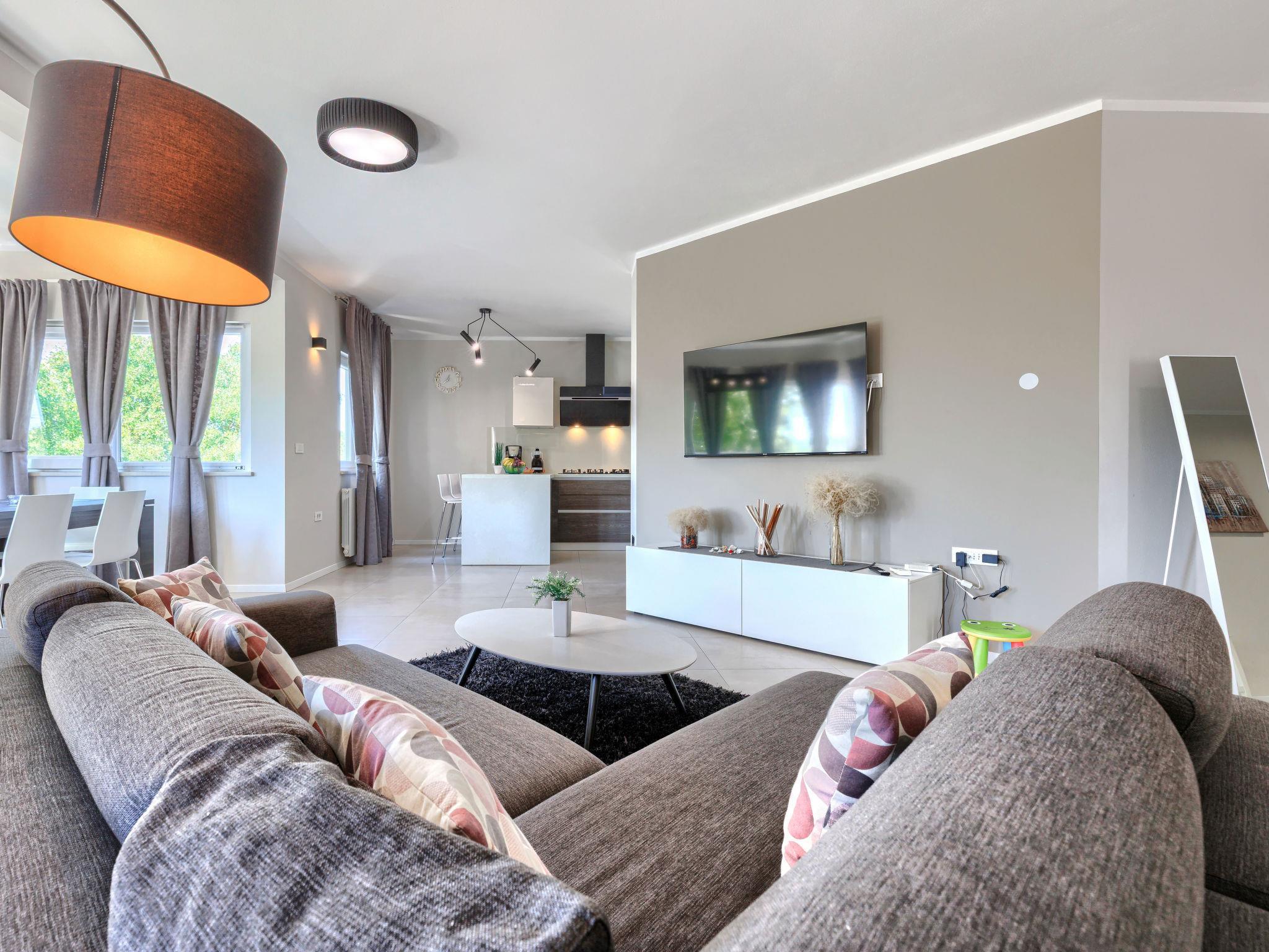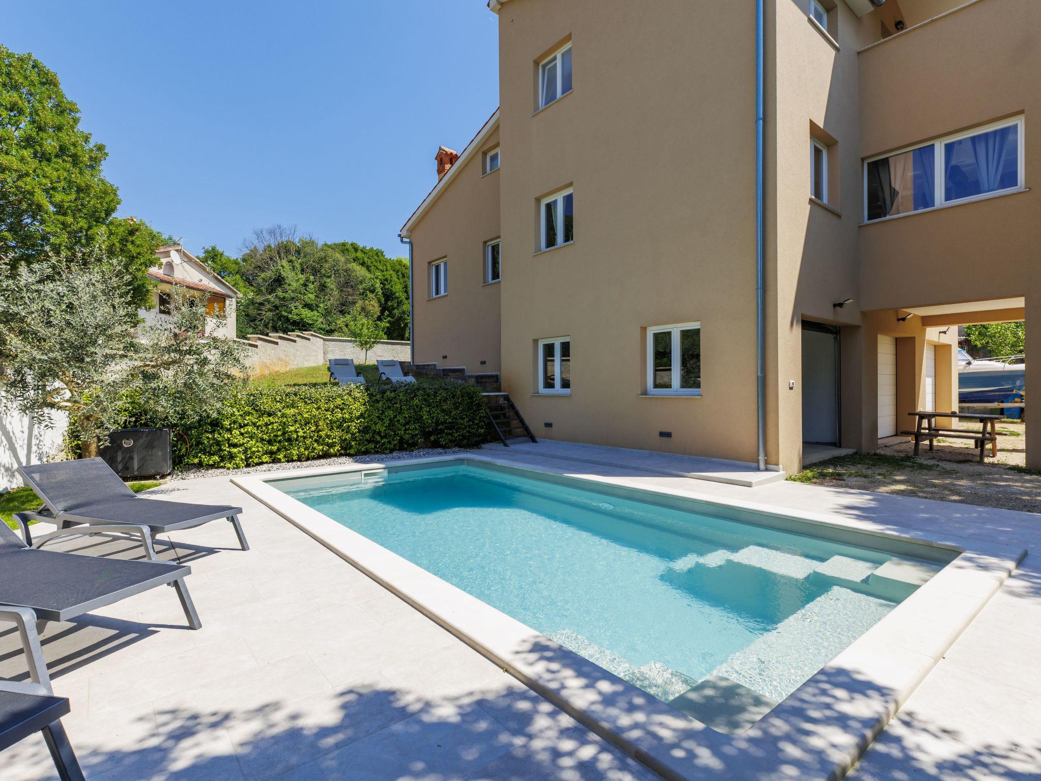 Krnica 22 km from Pula: 2-family house "Ana". In the hamlet Beloci 7 km from the centre of Krnica, 7 km from the centre of Barban, 26 km from the centre of Rabac, in a quiet, sunny position, 4 km from the sea, 4 km from the beach. For shared use: property 800 m2 (fenced), garden with lawn and plants. Private: swimming pool angular, heated (7 x 4 m, depth 140 cm, seasonal availability: 01.Apr. - 01.Nov.) with internal staircase and salt-electrolysis pool-cleaning system. Outdoor shower, terrace (20 m2), garden furniture, barbecue (slide, swing), pool maintenance by the owner/gardener. In the house: internet access, trampoline, storage room for bicycles. Available: bicycles (4). Parking at the house on the premises. E-charging station. Shop 2 km, supermarket 7 km, restaurant 3 km, bus stop 1.4 km, pebble beach 4 km, rocky beach 4 km, public bathing area 16 km. Riding stable 500 m, walking paths from the house 50 m, cycle lane 100 m. Nearby attractions: Amusement park 6 km. Please note: airfield 20 km from the property. For shared use: trampoline, bicycles (4), storage room for bicycles. The owner can arrange excursions (on request, extra). Swimming pool heated (extra). It is necessary to announce 7 days in advance if the pool heating is required.