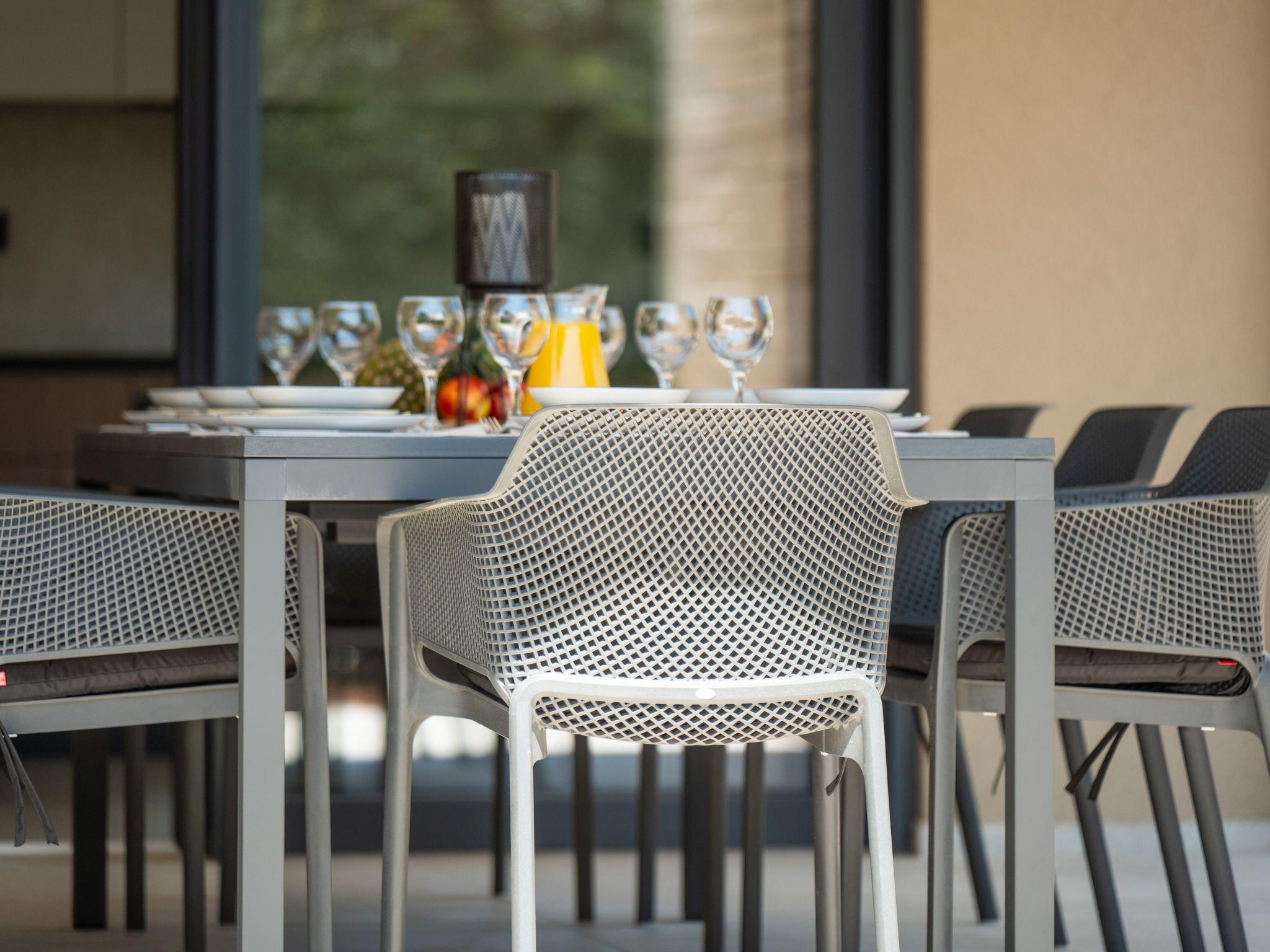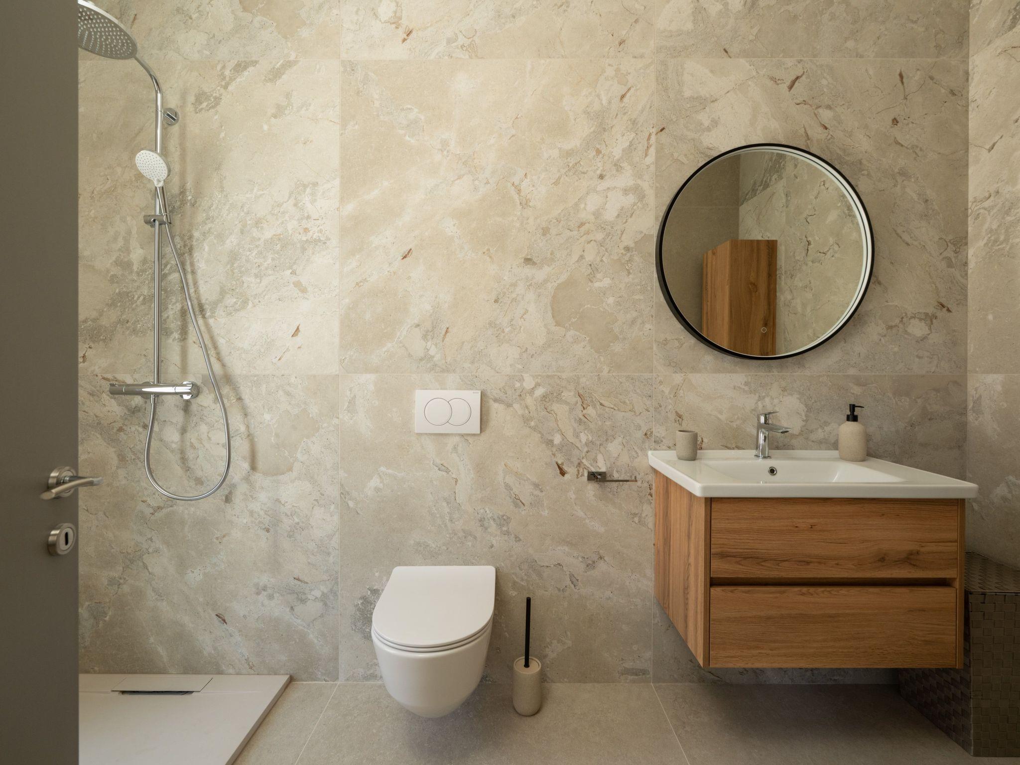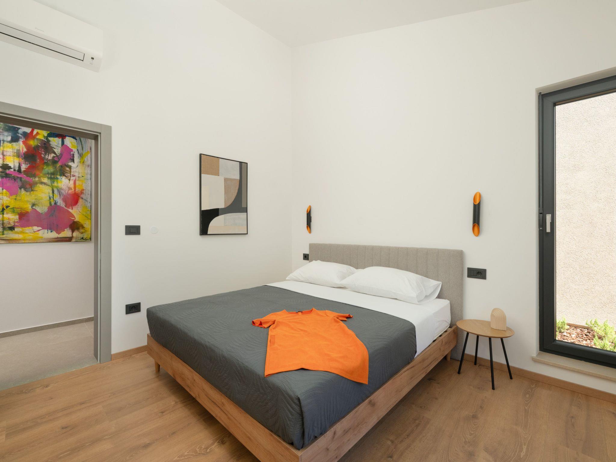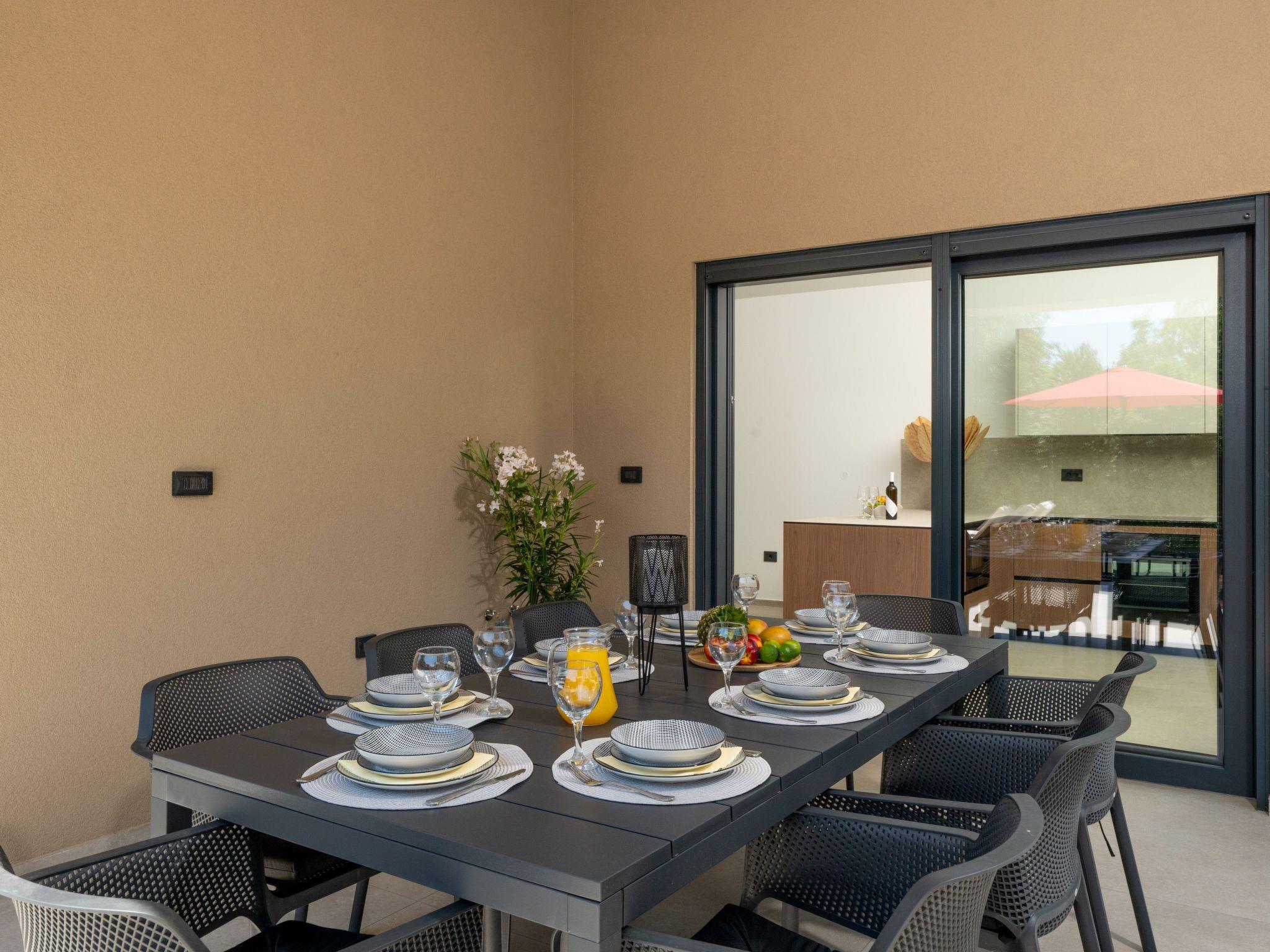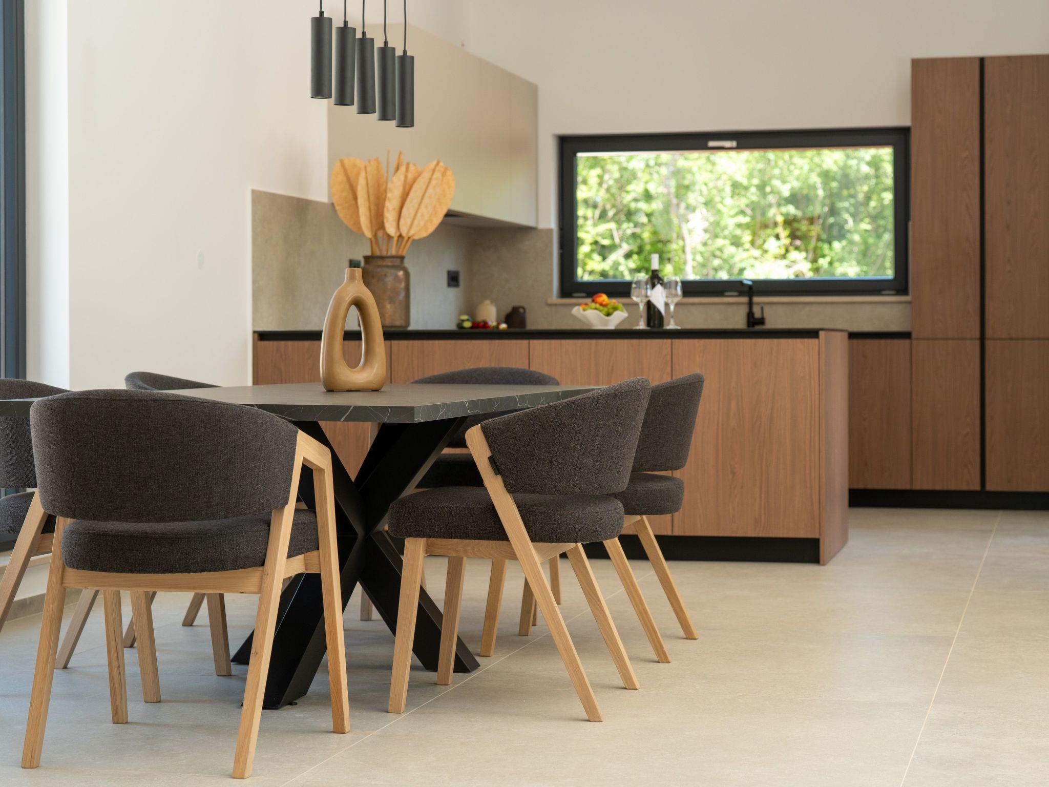 This comfortable villa is located in a quiet part of the village Peruški, surrounded by forest on two sides. It has 3 bedrooms – one is a master with its own bathroom, and there's also a second shared bathroom. The main area is a spacious open-plan kitchen, dining room, and living room, perfect for spending time together. The kitchen opens onto a covered terrace, great for outdoor meals. Outside, there's a large swimming pool, lounge area, fenced garden, outdoor grill, and private parking.