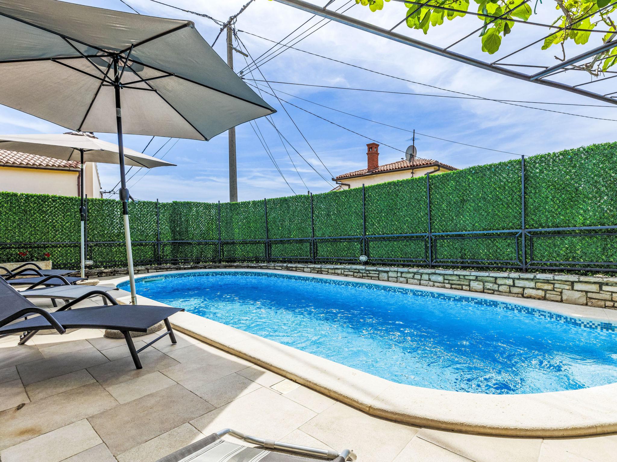 Single-family house "Villa Lancin", 2 storeys. 100 m from the centre of Divšici, 4 km from the centre of Marcana, 10 km from the centre of Vodnjan, 13 km from the sea. Private: property 120 m2 (fenced), swimming pool (25 m2, depth 130 cm, seasonal availability: 01.May. - 06.Nov.) with internal staircase. Unconventional pool shape. WC in the pool area, outdoor shower, terrace, barbecue. In the house: internet access, washing machine. Parking (for 2 cars) on the premises. Shop 4 km, restaurant 4 km, bus stop 3.5 km, pebble beach 13 km.