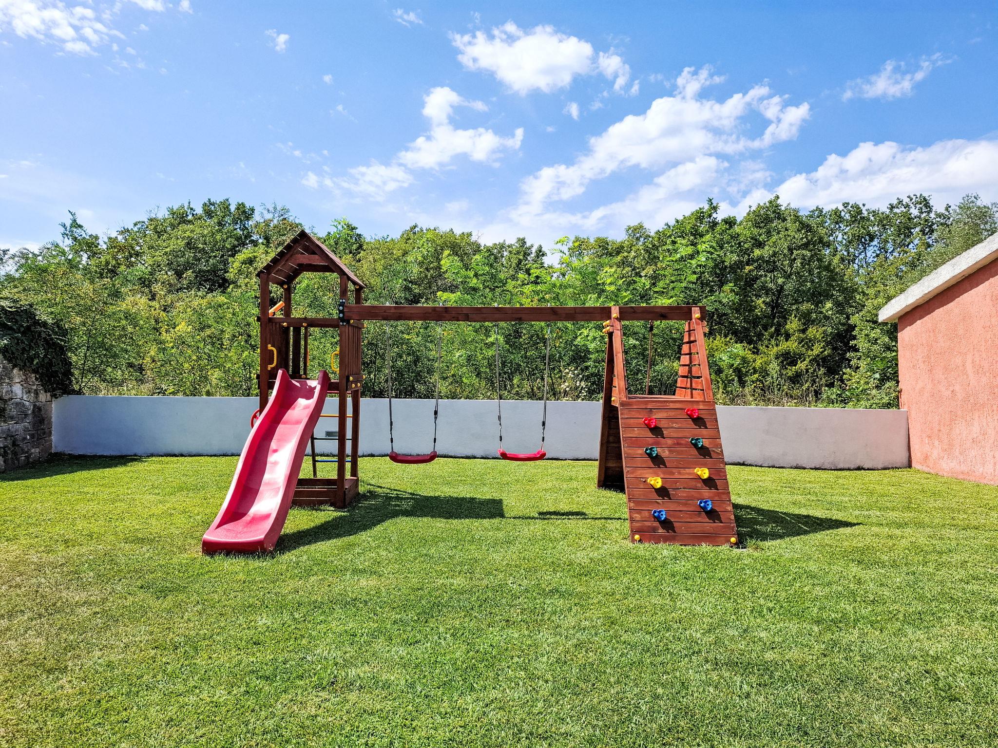 Beautiful semi-detached house "Villa Prisedi", 2 storeys. In a quiet, sunny position, 1.2 km from the sea, 1.2 km from the beach, in the countryside. Private: property 950 m2 (fenced), garden with lawn, swimming pool (33 m2, depth 140 cm, seasonal availability: 11.Apr. - 15.Oct.) with internal staircase and salt-electrolysis pool-cleaning system. Unconventional pool shape. Outdoor shower, table tennis, garden furniture, barbecue (swing). In the house: internet access, washing machine. Motor access to the house (1 km via unmade road). Parking (for 3 cars) at the house on the premises. Shop 1 km, supermarket 16 km, restaurant 1 km, café 2 km, bus stop 10 km, pebble beach 1.2 km, rocky beach 1.2 km, diving center 5 km. Tennis 10 km, riding stable 8 km, walking paths from the house 30 m, cycle lane 80 m. Nearby attractions: adventure park 10 km. The owner does not accept any youth groups. It is necessary to announce 7 days in advance if the heating (extra) is required.