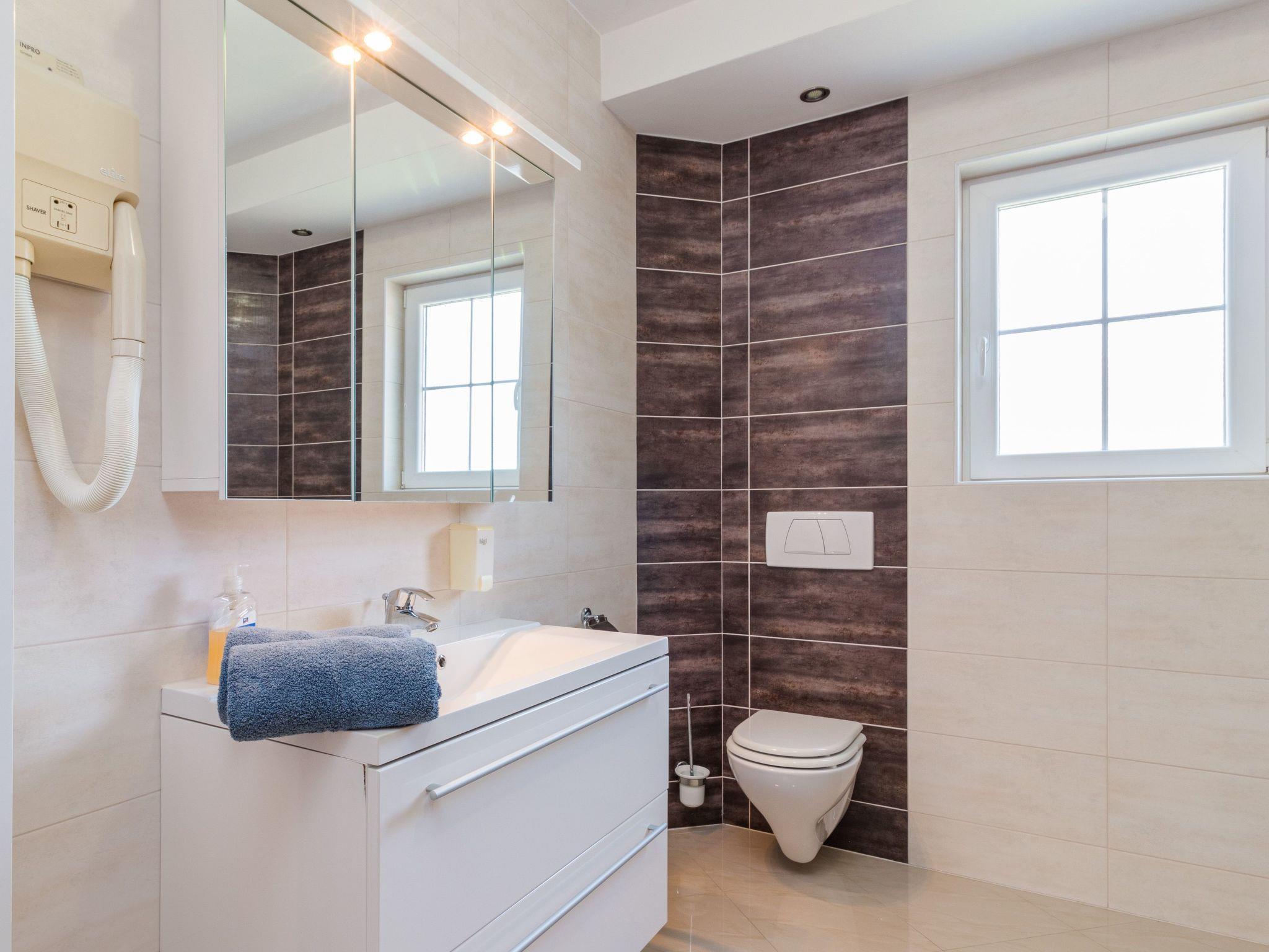 The interior of the villa leaves nothing to be desired. On the ground floor, the cosy living/dining room with satellite TV and direct access to the terrace invites you to linger. Three bedrooms, each with a cosy double bed, promise restful nights. The open-plan kitchen with oven, dishwasher, ceramic hob and more offers all the amenities for home-cooked meals. In addition, there are two showers/WCs and further living rooms and bathrooms on the lower and upper floors, which are also equipped to a high standard and make your stay comfortable.
