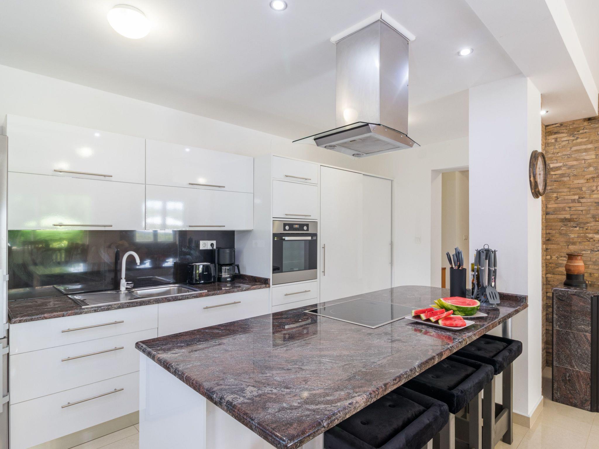 The outdoor area of the villa is an oasis of peace and relaxation. On the 1,000 m² fenced plot with plants and trees, guests can relax in the angular swimming pool (30 m²) or refresh themselves in the outdoor shower. Two balconies, a covered terrace of 15 m² with patio furniture, a mobile garden barbecue, sun loungers and an outdoor kitchen invite you to spend cosy hours in the open air. The pool is maintained by the owner/gardener so that guests can concentrate fully on relaxing.