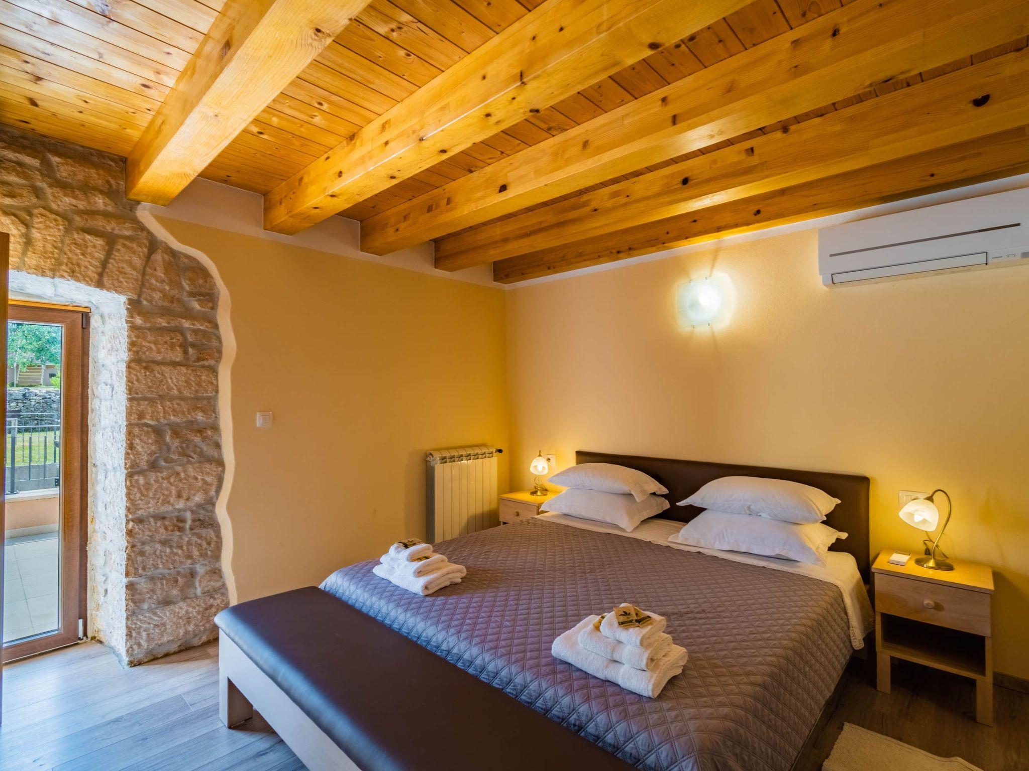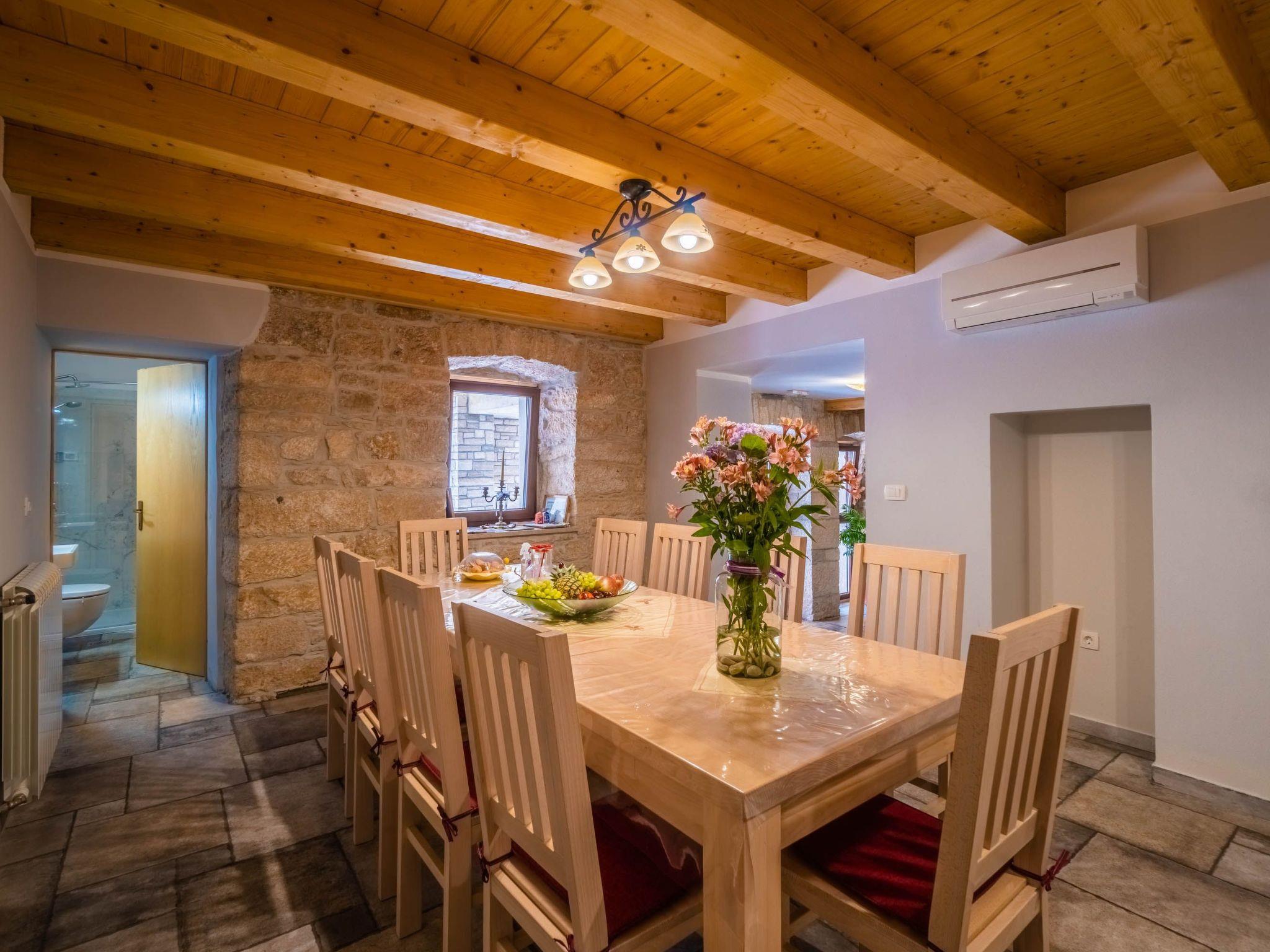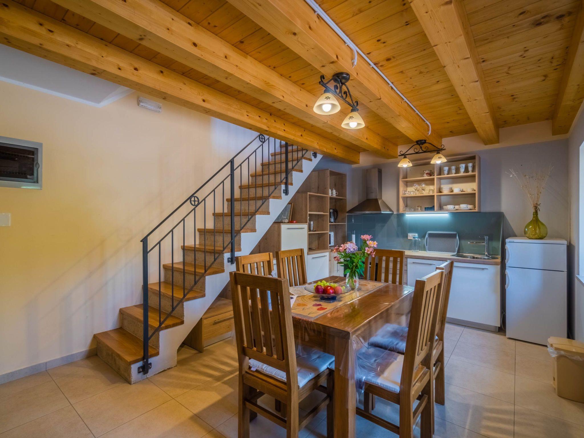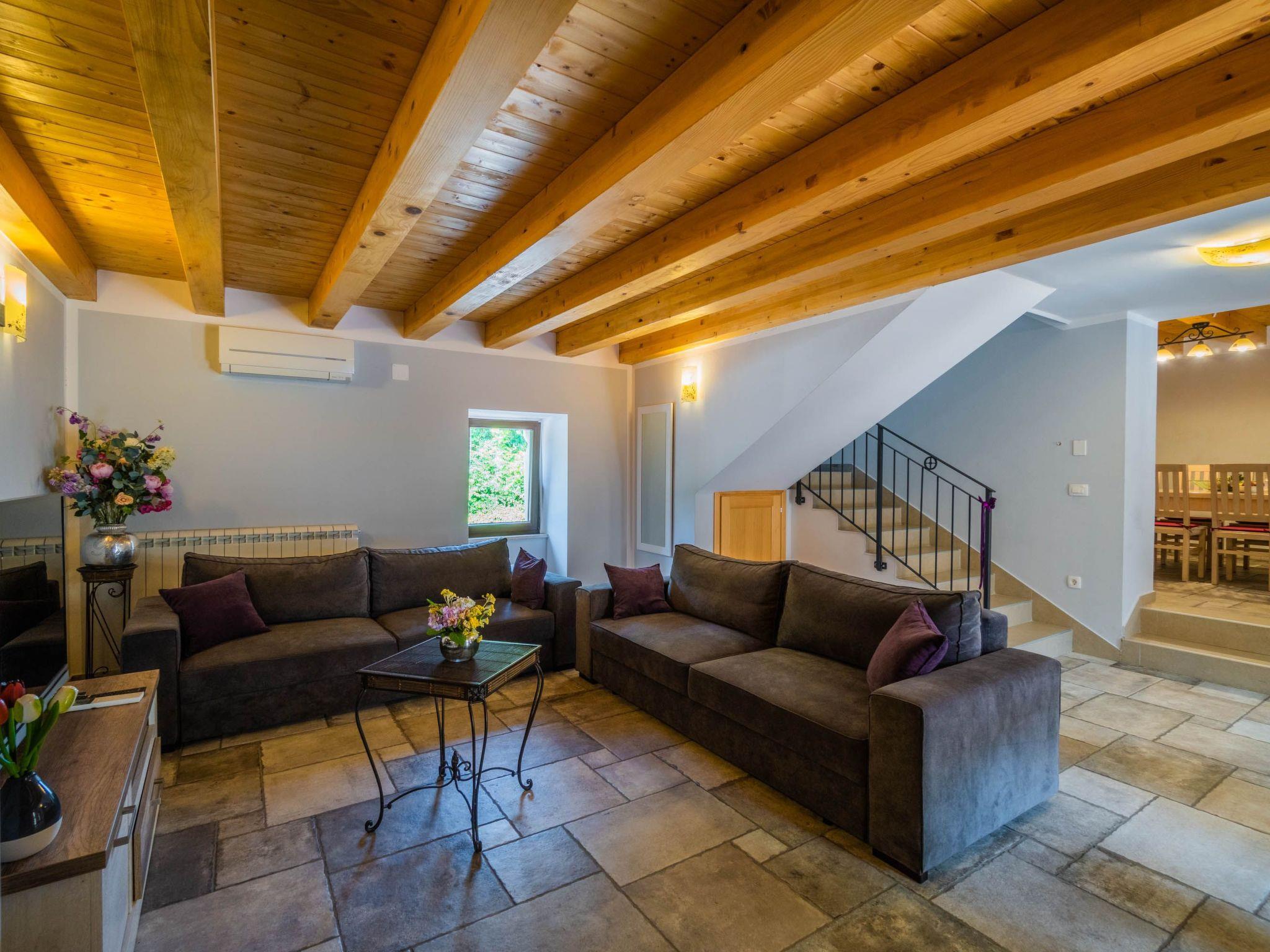 The interior space is carefully designed to charm with its elegance. Yet, the warmth and authenticity of the Istrian architecture is kept by the well preserved details from the past, as wooden beams on the ceiling and stone walls. Spacious interior space is divided on the ground floor, first and second floor. This villa features 5 bedrooms, 6 bathrooms, 2 living rooms and 2 kitchen. Two bedrooms on the second floor are attic rooms with a low ceiling.