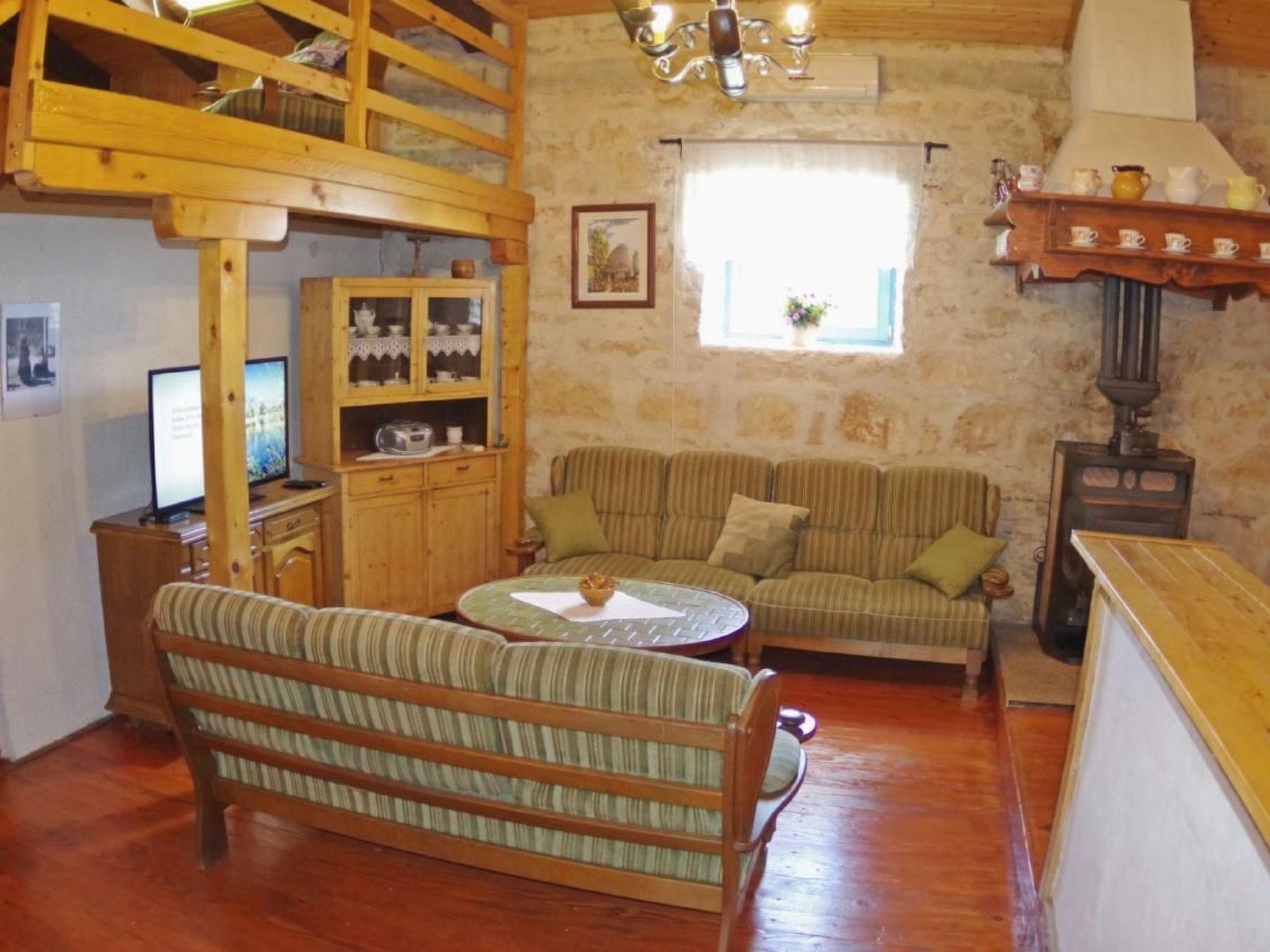 Ground floor: living room with fireplace, comfortable open kitchen with dining area and bathroom(shower, washstand, wc), bedroom with double bed