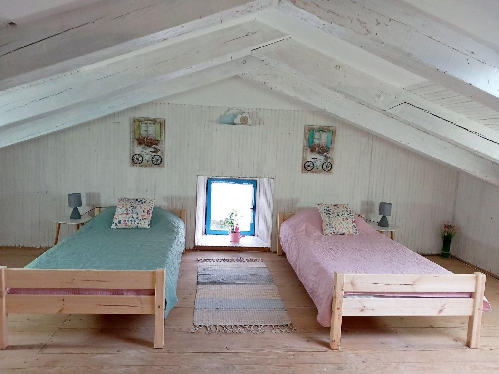 Inside stairs leading to the first floor (open attic): 1 bedrooms (3 single beds)