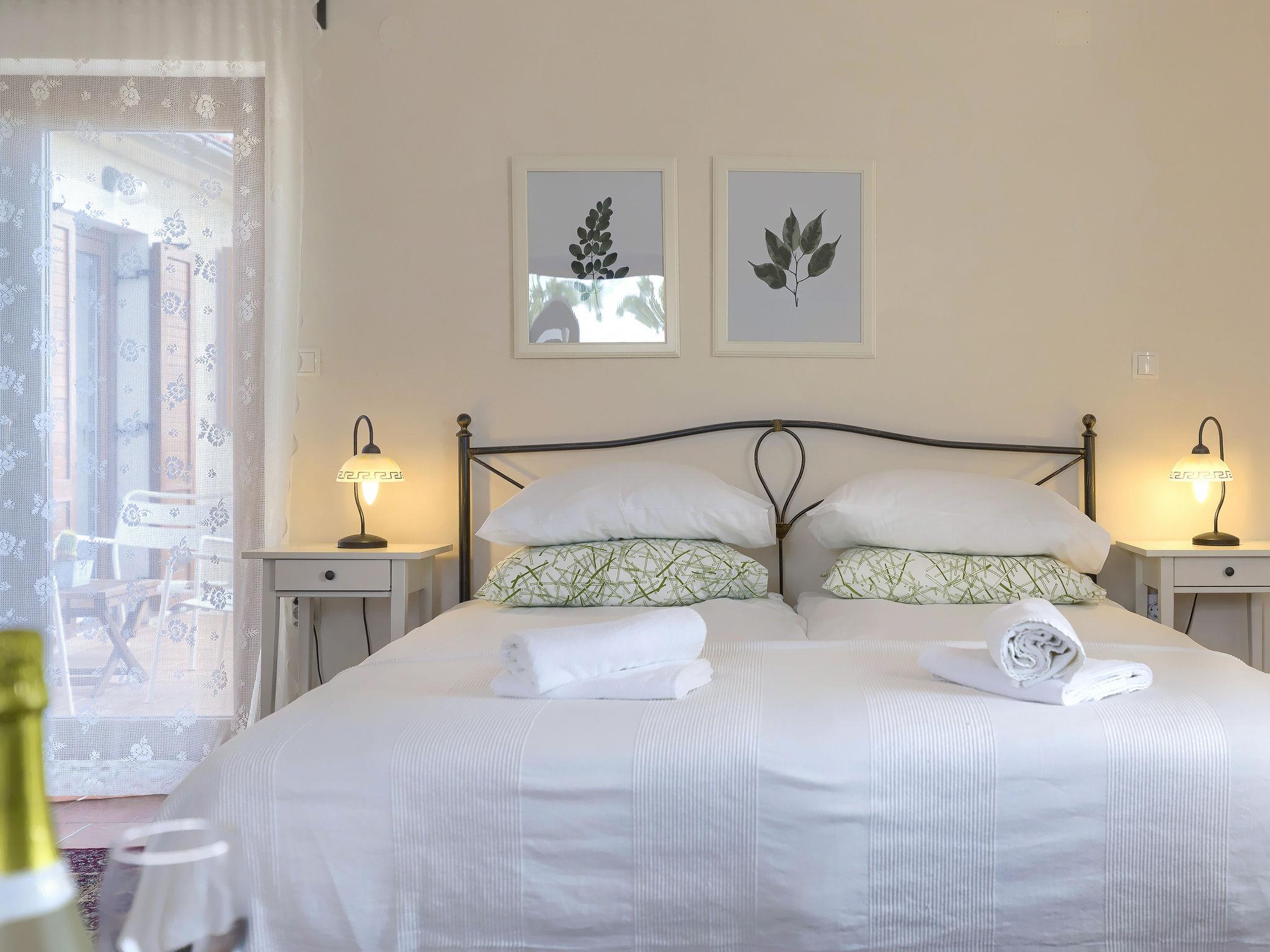 5-room villa 200 m2 on 2 levels. Living/dining room with open-hearth fireplace and satellite TV (flat screen), air conditioning. Exit to the terrace. 1 room with 1 double bed (2 x 90 cm, length 200 cm), bath/WC and air conditioning. Exit to the terrace. Open kitchen (oven, dishwasher, 4 ceramic glass hob hotplates, microwave, freezer). Sep. WC. Upper floor: 1 room 25 m2 with 1 double bed (2 x 90 cm, length 200 cm), shower/WC and air conditioning. Exit to the terrace. 1 room with 2 beds (90 cm, length 200 cm), shower/WC and air conditioning. Exit to the terrace. 1 room with 2 beds (90 cm, length 200 cm), shower/WC and air conditioning. Terrace 20 m2, roofed, 2 terraces 10 m2. Terrace furniture, deck chairs. View of the swimming pool. Facilities: baby cot. Internet (WiFi, free). Maximum 1 pet/ dog allowed.