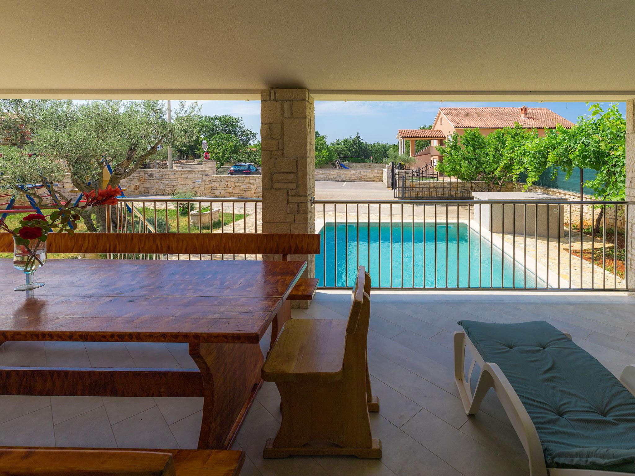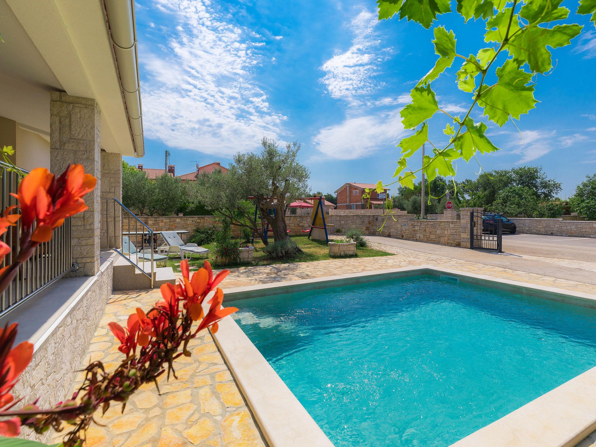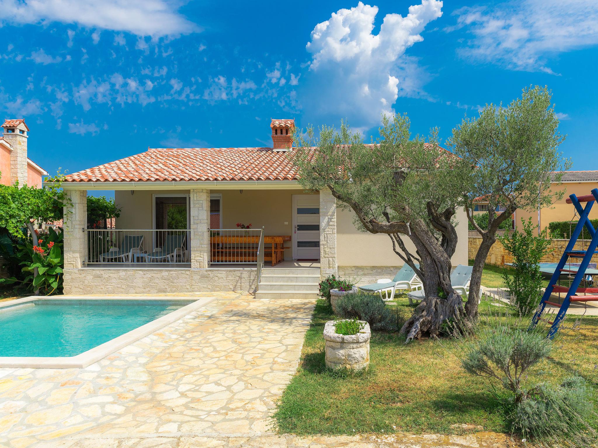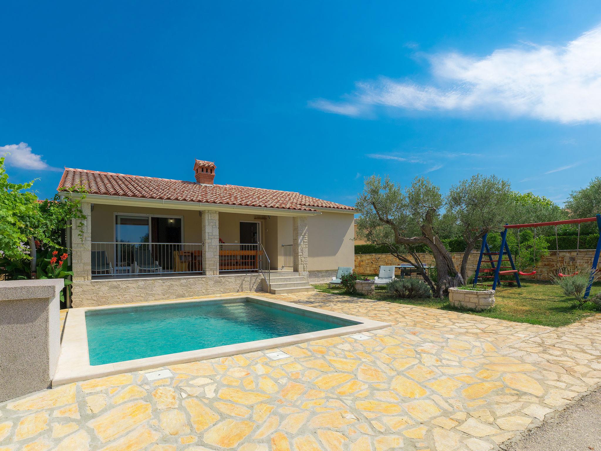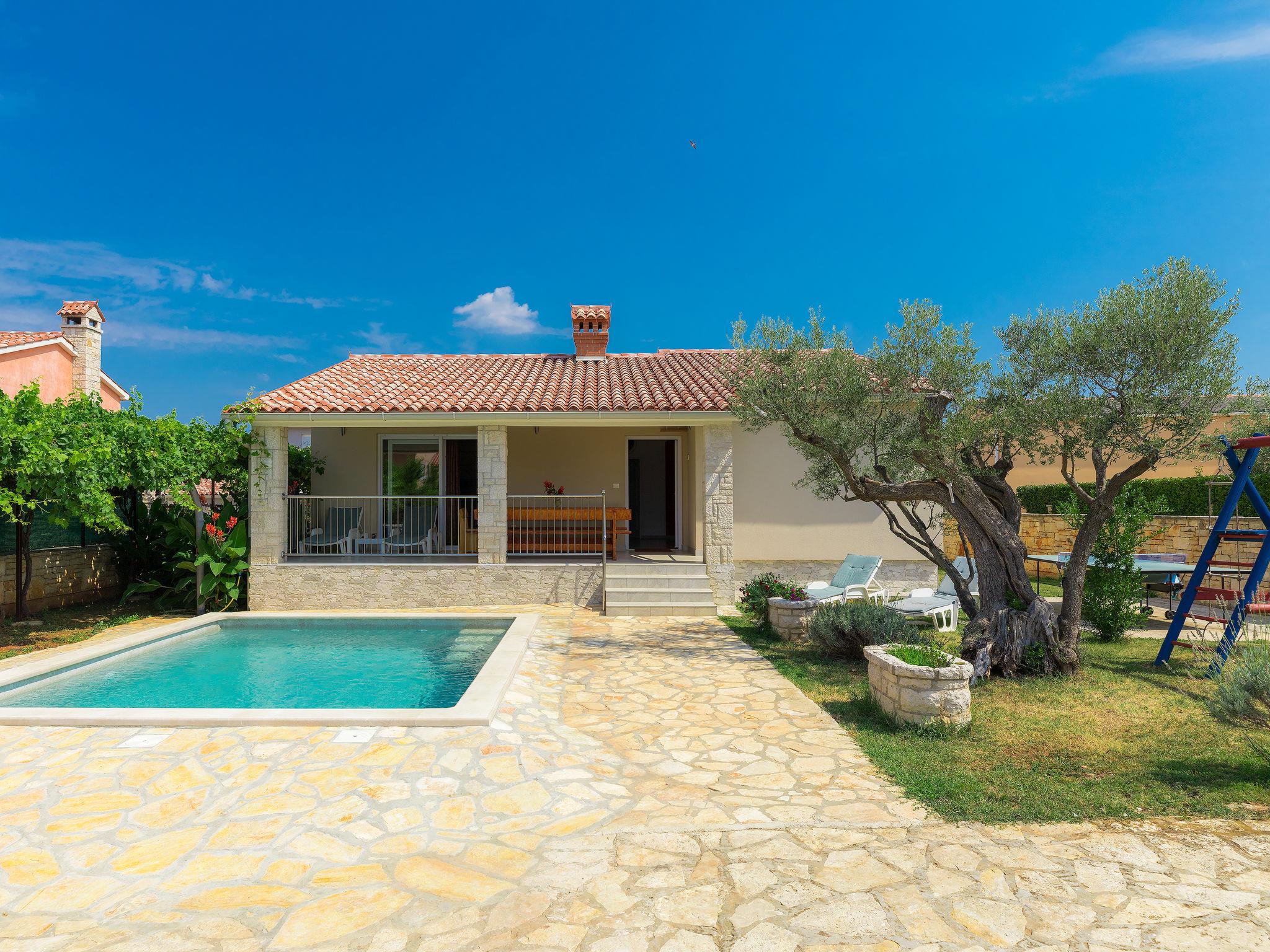 Single-family house "Goldi". In the hamlet Golubovo 7 km from the centre of Vodnjan, 4 km from the sea, 4 km from the beach. Private: property 500 m2 (fenced), lawn and wildlife garden, swimming pool (5 x 4 m, depth 140 cm, seasonal availability: 15.Apr. - 14.Oct.). Outdoor shower, table tennis, barbecue (slide). In the house: internet access, washing machine. Parking (for 2 cars) on the premises. Supermarket 7 km, bus stop 3.6 km, pebble beach 4 km, rocky beach 4 km.