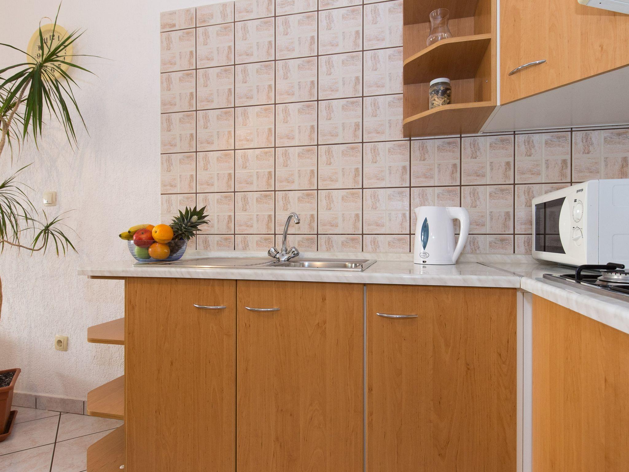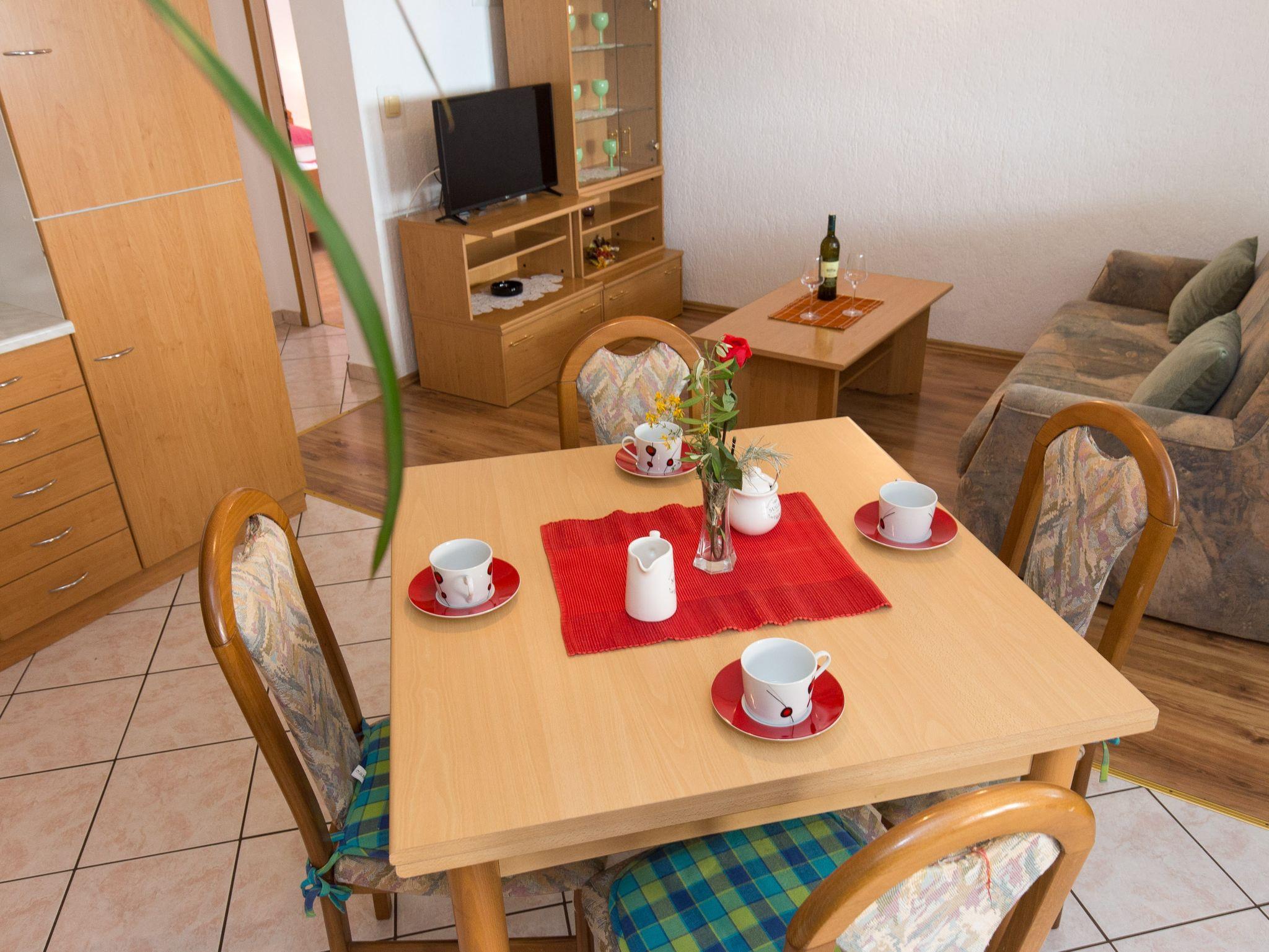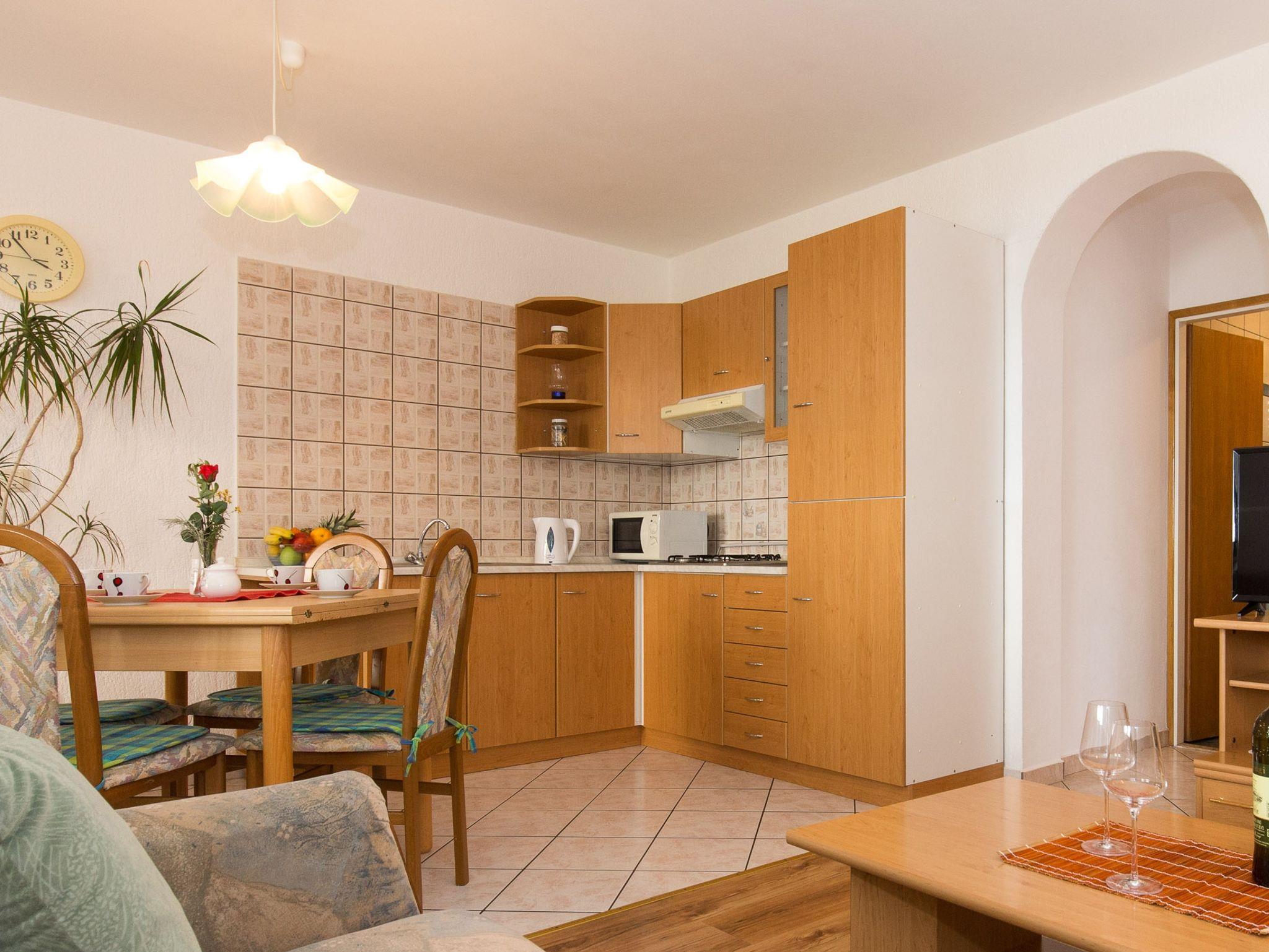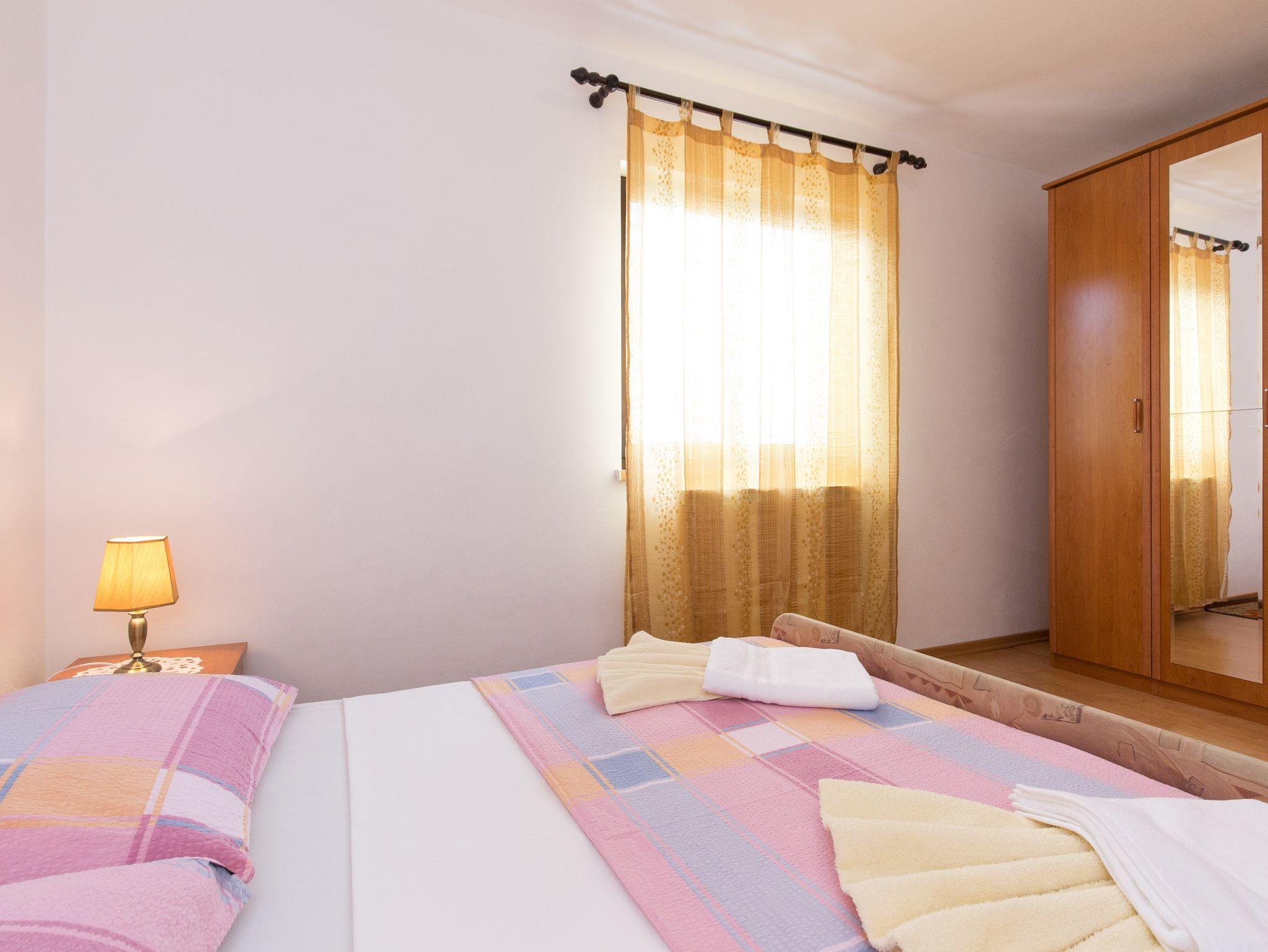 Ferienwohnung bietet Platz für 4 Gäste. Die Betten sind in Schlafzimmern, die es 2 gibt, innerhalb einer Gesamtfläche von 51m2, angeordnet. Die Gäste haben einen eigenen Balkon zur Verfügung, auf der sie in warmen Sommernächten genießen können. Das Apartment bietet Meerblick. Es ist erlaubt, Speisen auf dem Gemeinschafts-Grill vorzubereiten. Während ihres Aufenthalts können Gäste das gemeinsam zur Nutzung stehende Schwimmbad benutzen. Die reservierte Unterkunftseinheit verfügt über einen gemeinsame Terrasse. IM PREIS INBEGRIFFEN: Kurtaxe, Endreinigung, Klimatisierung, Pool, Parkplatz, Internet, Kinderbett, Bügeleisen, Bügelbrett, Föhn. VERBINDLICHE ZUSÄTZLICHE KOSTEN: Aufzahlung für Kurzaufenthalte (prozentualer Zuschlag pro Nächtigungsanzahl: 30% - 1, 20% - 2, 10% - 3). UNVERBINDLICHE ZUSÄTZLICHE KOSTEN: Zentralheizung (6,00 € pro Nacht), Wäschewaschen (5,00 € Waschen), Zusatzbett (15,00 € pro Nacht). Die Verfügbarkeit zusätzlicher Dienstleistungen in Ihrem reservierten Termin und die Preise derselben (falls nicht aufgeführt) müssen im Voraus überprüft werden. Zusätzliche Dienstleistungen die in der Zahlungsaufforderung nicht aufgeführt sind werden direkt beim Vermieter bezahlt, angenommen der Gast nutzt auch diese.